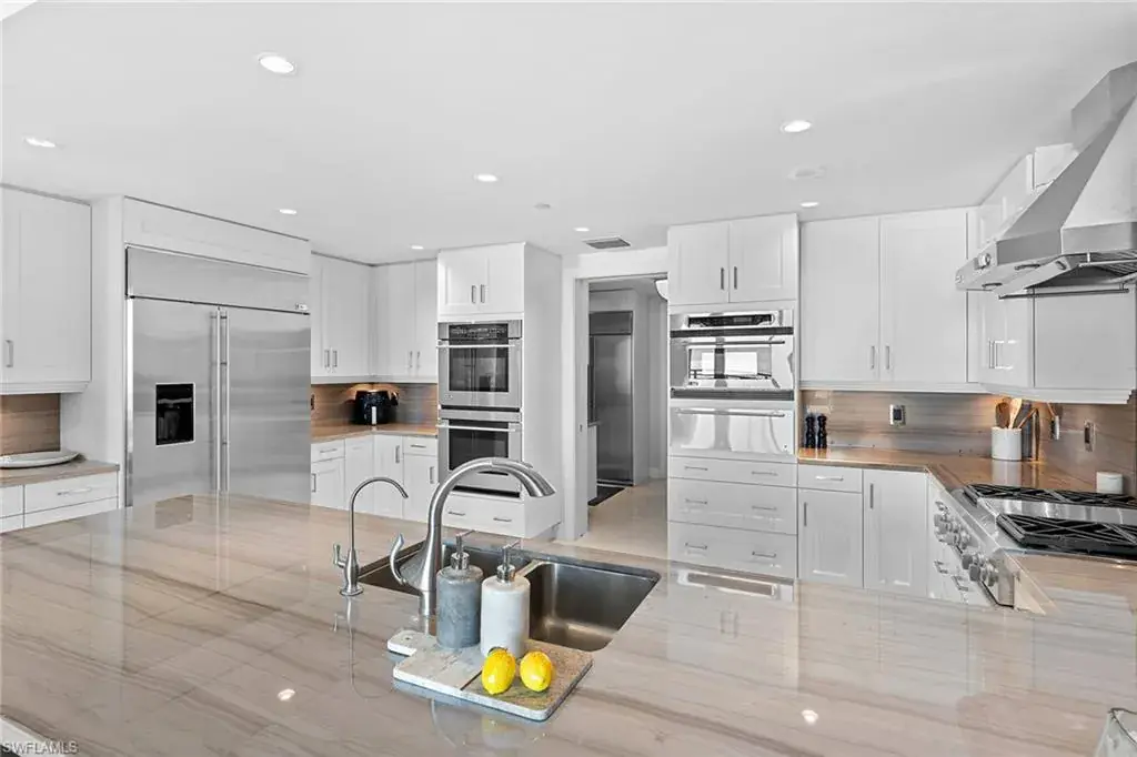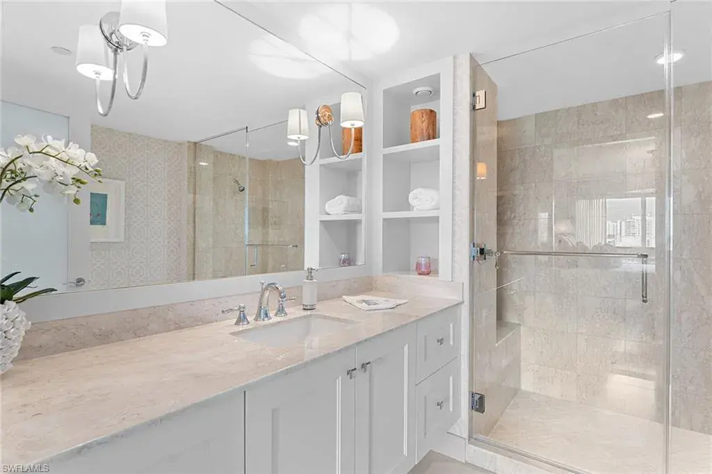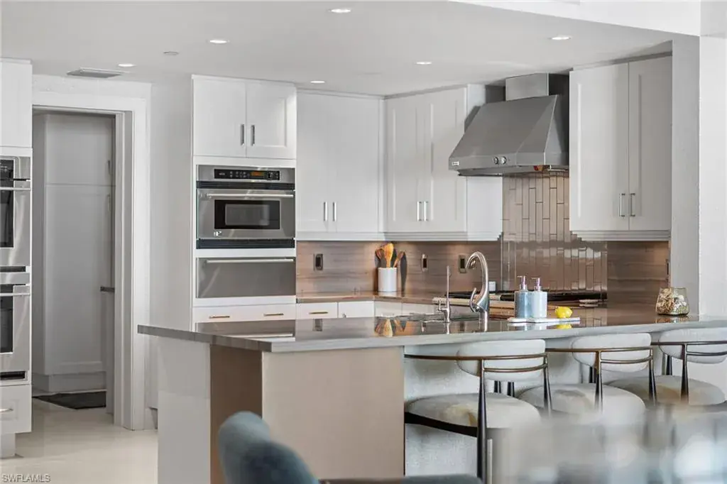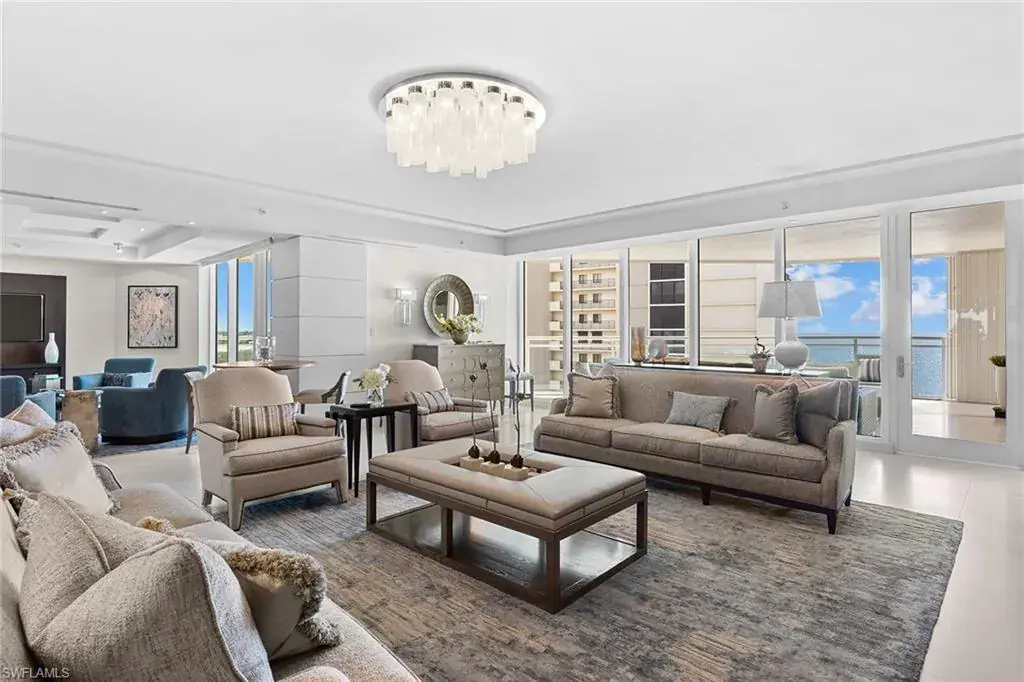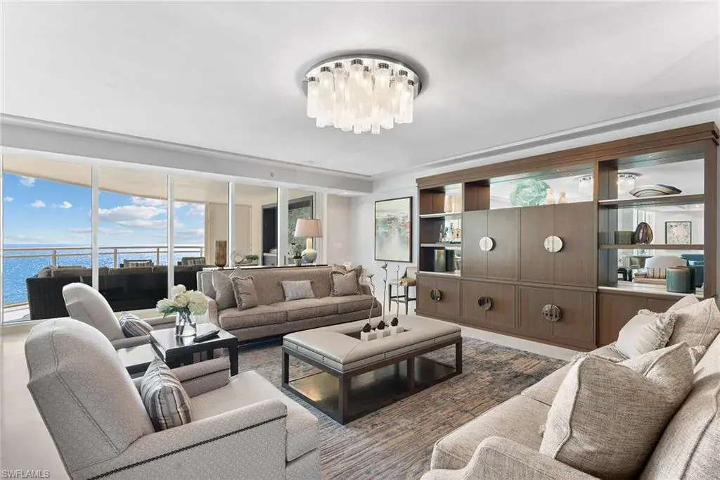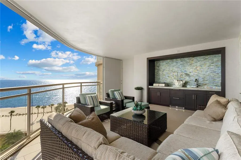 Unmatched luxury awaits in this exquisite turnkey beachfront condominium in Moraya Bay. Boasting three bedrooms, a den, study and 3.5 baths, this residence is designed for refined living. Step off your private elevator into a home that radiates sophistication. The chef’s kitchen features top-of-the-line appliances, including a natural gas range, double ovens, a separate ice maker, and multiple refrigerators, ideal for gourmet entertaining. The expansive primary suite offers a tranquil retreat with a spa-like bath and floor-to-ceiling glass sliders that frame breathtaking ocean views. Two additional guest suites provide comfort and privacy for family or visitors. Unwind on the wraparound terrace, fully equipped with an outdoor kitchen, and enjoy panoramic views of the gulf and mesmerizing sunsets. On Vanderbilt Beach, Moraya Bay is a pet-friendly community with five-star amenities including a gourmet restaurant and bar, two resort-style pools, concierge service, chair and towel service, a fitness center and 24-hour security. Membership includes access to The Floridian Club and The Club at Kalea Bay, ensuring an elevated coastal lifestyle. Experience beachfront living at its finest!