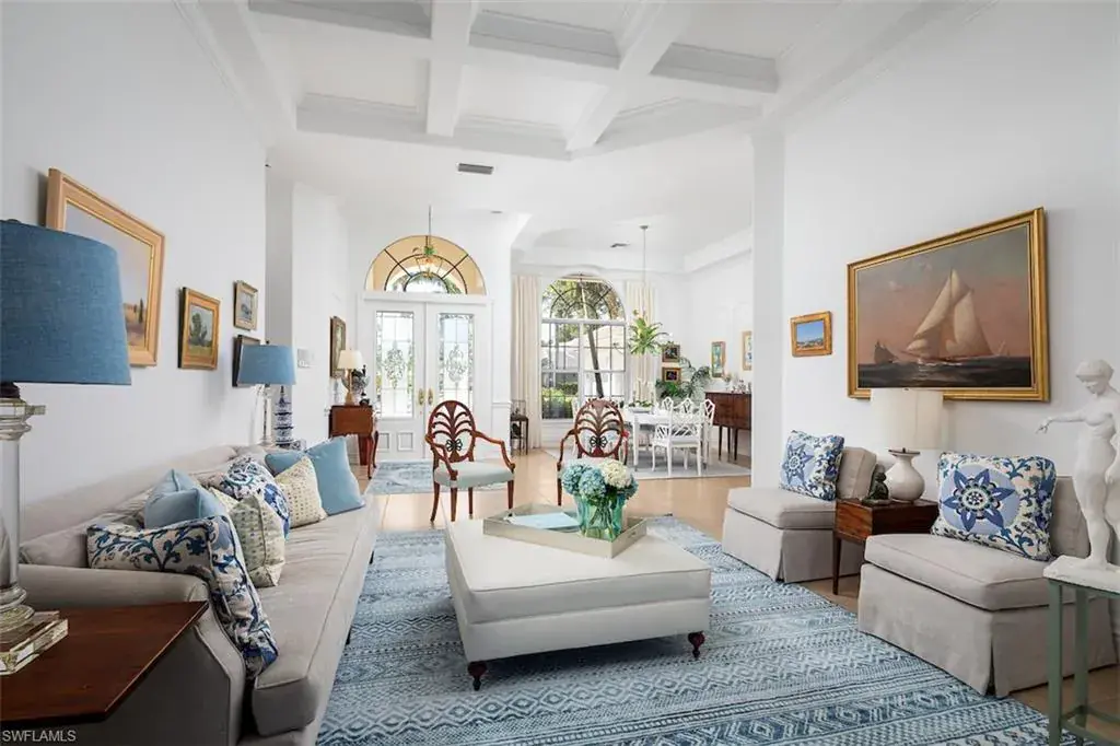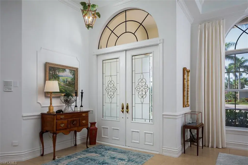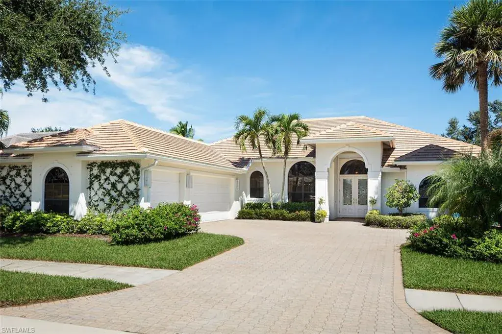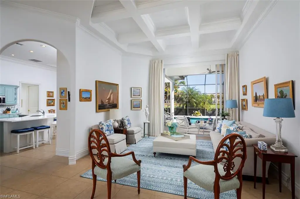 Beautiful 4-bedroom/3 bath pool home with 3-car garage within the gated neighborhood of Muirfield at Pelican Marsh. The spacious and traditional interior floor plan offers sweeping views of the golf course and pool. Finished office, coffered ceilings with layered crown moldings, heated pool/spa, and generous storage room are only a few of the additional upgrades. Brand new 2023 tile roof, whole-home generator, and complete hurricane protection complete the residence. The separate guest suites are perfect for family and friends. This is a spectacular home for entertaining and living within Pelican Marsh of Naples.