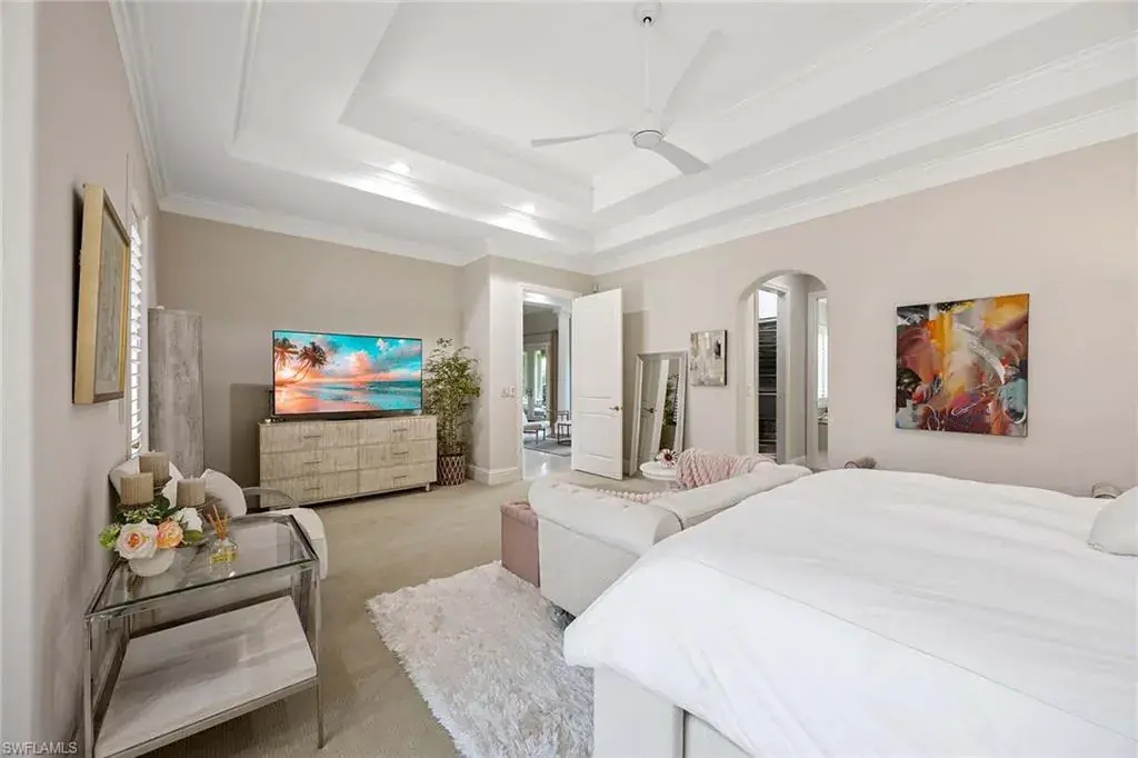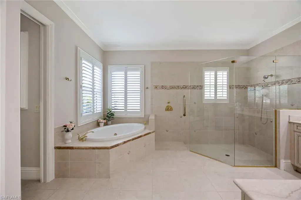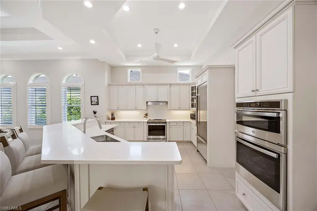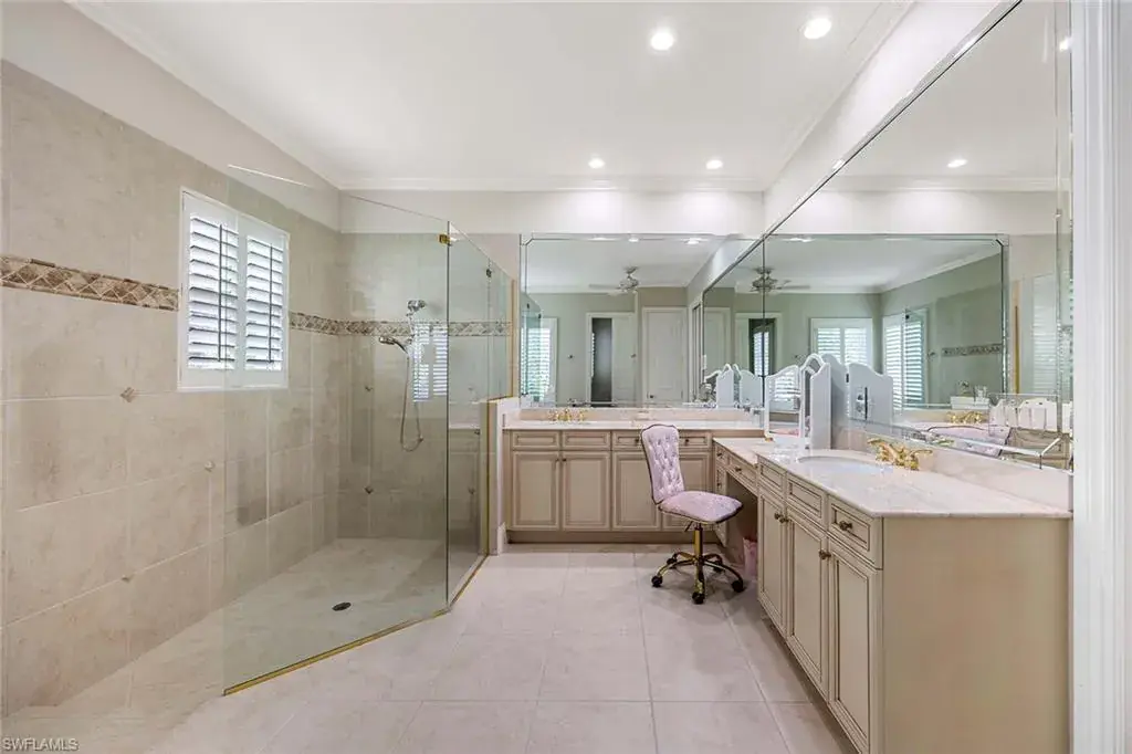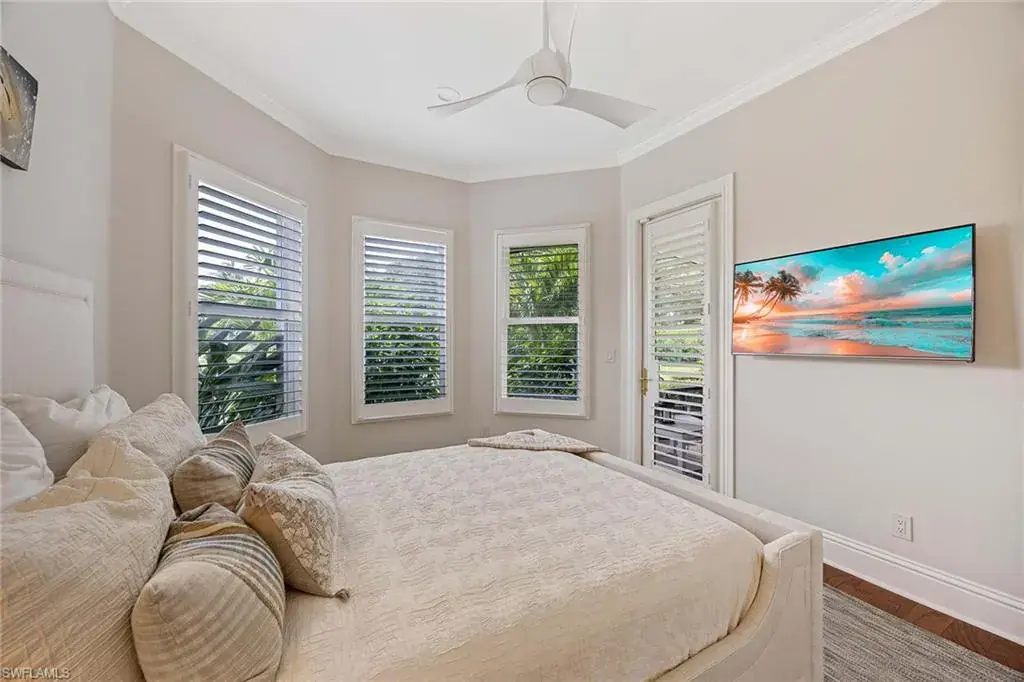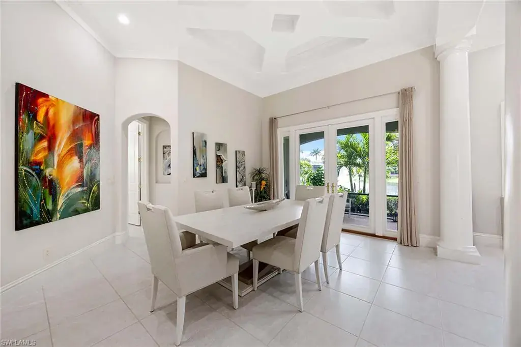 PRICED TO SELL! Turnkey furnished, updated and fabulous! Rarely available in Muirfield at Pelican Marsh, a private gated enclave of just 37 custom homes. This former model home offers 3,100 square feet of tastefully updated living space with three en-suite bedrooms, a saltwater lagoon-style pool and spa, outdoor kitchen, zero-corner sliders and a two-car garage with epoxy flooring. Newer roof (2018). Whole house generator (2020). Three air conditioners for total comfort. Enter through grand double doors into a stunning courtyard entry with pool and spa a Florida oasis. The open concept layout flows seamlessly with porcelain tile flooring throughout, combining leisure and formal dining areas with a beautifully renovated kitchen featuring a neutral white cabinetry, quartz countertops, a stainless-steel induction range with hood, built-in oven/microwave combo, large walk-in pantry and counter-height seating. The elegant living room with a gas fireplace (propane) opens to serene lake and fountain views with eastern exposure. The spacious primary suite offers a cozy sitting area overlooking the pool, dual custom closets, jetted tub, dual vanities and a separate shower. Residents of Pelican Marsh enjoy 24/7 staffed gatehouse, private golf club, clubhouse, tennis and pickleball center, The Court restaurant, fitness center, bocce, biking paths, playground and more. One of the best locations in Naples. All just minutes from white sand beaches, fine dining and everything Naples!