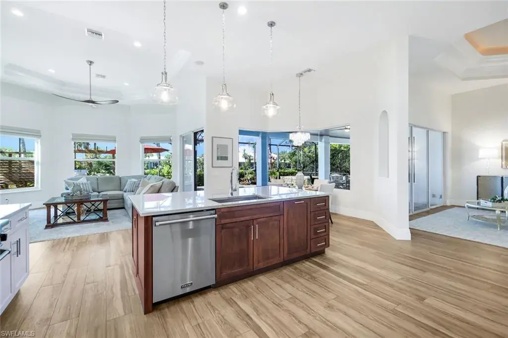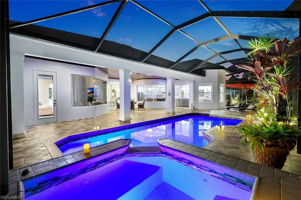 Mulberry Lane in Fiddler’s Creek, a lovely street with large shade trees, mature landscaping and loads of colorful flowers, just feels special, and this absolutely beautiful home wraps you in natural light, humming birds, and nature galore! Featuring a beautifully updated kitchen, family room, new flooring, and primary bath to swoon over, you don’t want to miss it! Oversized primary suite plus 2 additional guest rooms and den, 3 baths, formal dining room, living room, soaring ceilings, architectural detail everywhere, and gorgeous lanai with pool and spa starring spectacular sunsets every night. What’s not to love? Updates and features include: New roof, installed in 2018, whole home generator, 2 newer AC units, newer tankless water heater, new pool pump and heater, Viking appliances, impact windows at rear of home, plus easy to install kevlar panels for storm protection on lanai. Offered furnished and ready for you to move in and enjoy this spectacular home for the upcoming winter season! The Fiddler’s Creek Club and Spa, the heart of the community, is nearby featuring the updated 54,000 sq ft home to the state of the art gym with new equipment, yoga studio, pilates room, 2 resort pools with waterfalls and slides, 2 restaurants, spa services, fitness classes, full time activity staff providing special events and classes year round, tennis, pickle ball and bocce ball. Miles of sidewalks, all underground utilities, lush landscaping, location, modern coastal designed future building, plus the overall design of the community sets Fiddler’s Creek apart from all others and is a gem of south Naples. As if this wasn’t enough, there is also an optional beach and/or marina membership available, an extremely rare opportunity to enjoy the beach club at the Marco Beach Ocean Resort and the Marina on Isles of Capri. If you are a golfer, you are in the right place! The Golf Club at Fiddler’s Creek just re-opened with a total turf renovation, re-designed Arthur Hills greens, amazing practice facility anchored by the brand new spectacular private golf clubhouse. Equity memberships are currently available with no waiting list. Don’t miss seeing this special home, in this very special community!! Be sure to view the video attached to this listing, its gorgeous!
