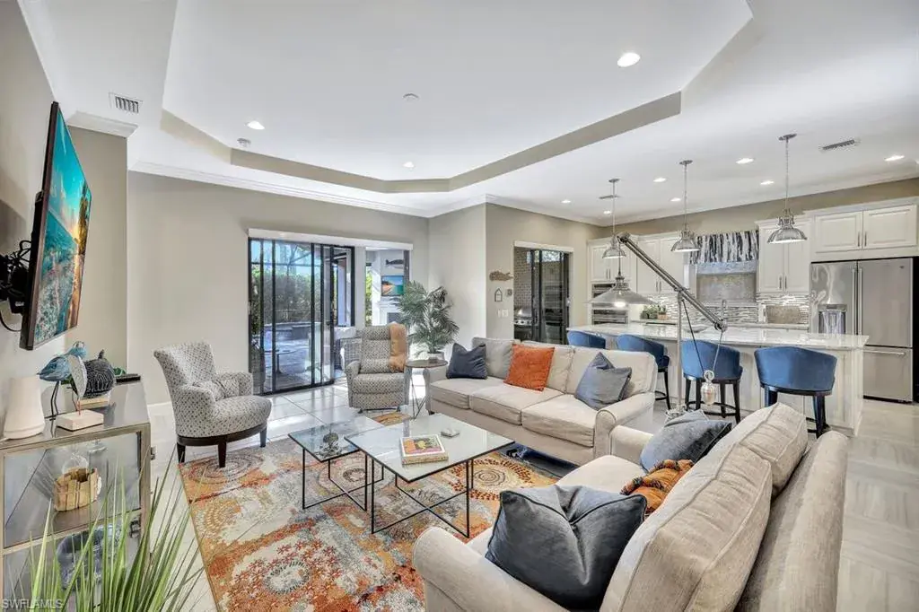 Welcome to your dream home in the prestigious, gated, golf course community of Fiddler’s Creek. A single-family home offering modern conveniences with an array of upscale features is offered Turnkey! The coveted Lazio floor plan 2313 Sq Ft and a total of 3061 Sq Ft. Three bedrooms, three baths, plus a flex room/den with pull out sofa bed, an extraordinary Lanai boasting a sparkling pool, hot tub, fireplace, a large patio area, outdoor kitchen, perfect for entertaining! The primary bedroom suite is a tranquil escape boasting a spacious layout with a walk-in closet (built in organizers), dual vanities and an oversized walk-in shower! The neutral decor throughout is beautiful! The lushly landscaped yard is an ideal setting for enjoying the Florida sunshine in complete privacy! Experience the best of Florida living in this remarkable home, where luxury, convenience, and an entertainer’s dream layout come together in perfect harmony! Fiddler’s Creek offers (3) pools with picturesque waterfalls, casual and fine dining options. a state-of-the-art fitness center and optional golf, tennis, beach and marina memberships. Minutes from the sandy beaches of Marco Island and the restaurants, art galleries, dining and beaches of downtown Naples!