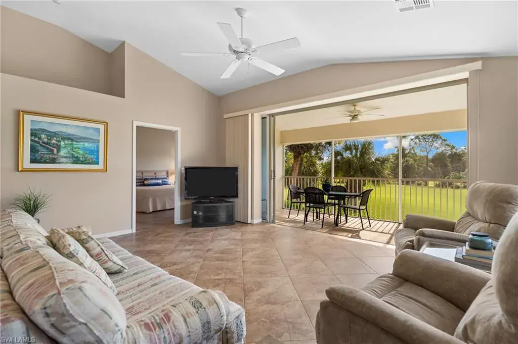 Welcome to a well maintained, furnished condo in the gated community of Mystic Greens. This 2nd floor condo with a private elevator, offers an expansive 2,337 square feet of living space. With 3 bedrooms and 3 baths, this condo is perfect to tailor to your personal needs and lifestyle. The southeast facing lanai is a standout feature for enjoying the warm morning sun and tranquil evenings, all while soaking in the picturesque golf course views. Enjoy access to the Mystic Greens clubhouse and pool, where you can unwind, socialize and enjoy a refreshing swim. As part of the Lely Resort community, the amenities are top notch. The Players Club & Spa, with all their wonderful amenities, is available with this condo but not required. For the avid golfer, enjoy 2 public golf courses and 1 private golf course. Experience the blend of luxury and leisure at Mystic Greens, and make this spacious haven your own!