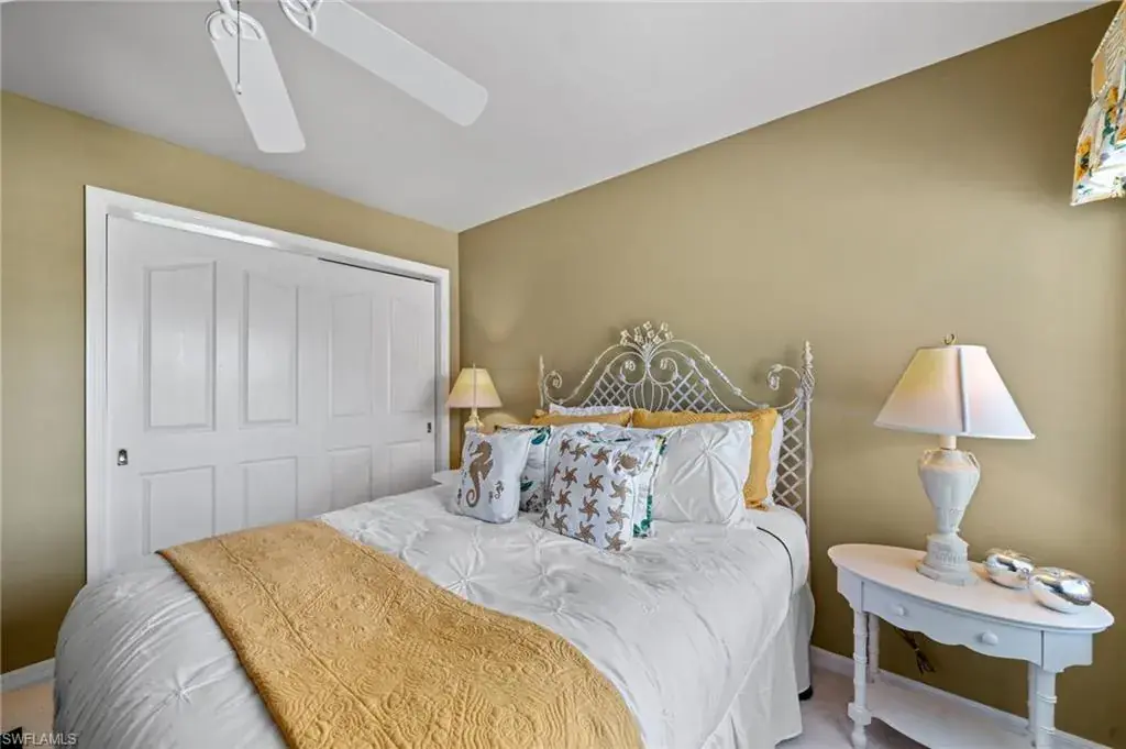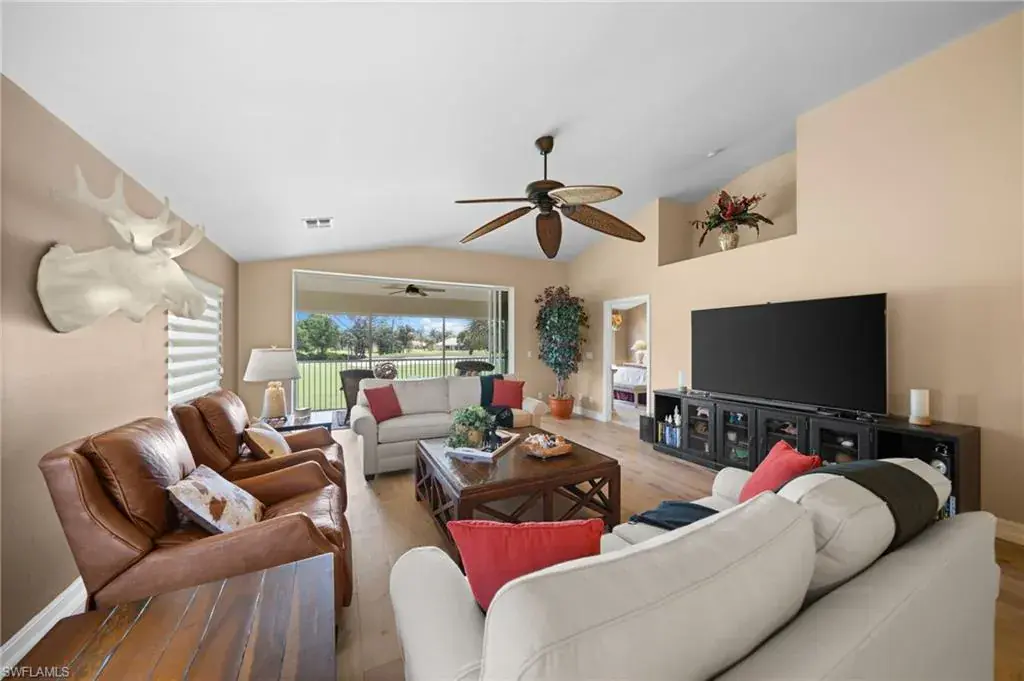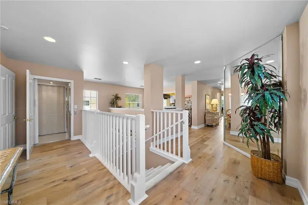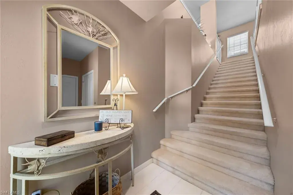 Exceptionally, well maintained 2nd floor Coach Home with private elevator. This spacious, 3+den, 3 bath condo is move-in ready and is being sold turnkey. Enjoy tranquil mornings with breath-taking sunrises from your Eastern facing lanai, perfectly positioned to offer stunning golf course views. The owners have recently replaced the lanai screening with no-see-um screening. Other updates include: engineered hardwood flooring, new washer and dryer, new water heater, updated lights & fans. Mystic Greens community has their own club house and pool. A great place to meet your neighbors! The amenity rich Players Club and Spa is optional and is immediately available with this condo…no need to go on the wait list. Wonderful restaurants, resort style pools, well-equipped fitness center with trainers and a full array of classes, full-service spa, Har Tru Tennis courts with pro shop, pickleball, bocce ball plus a dog park for your furry friends. Lely Resort is home to 1 private golf course and 2 public golf courses.