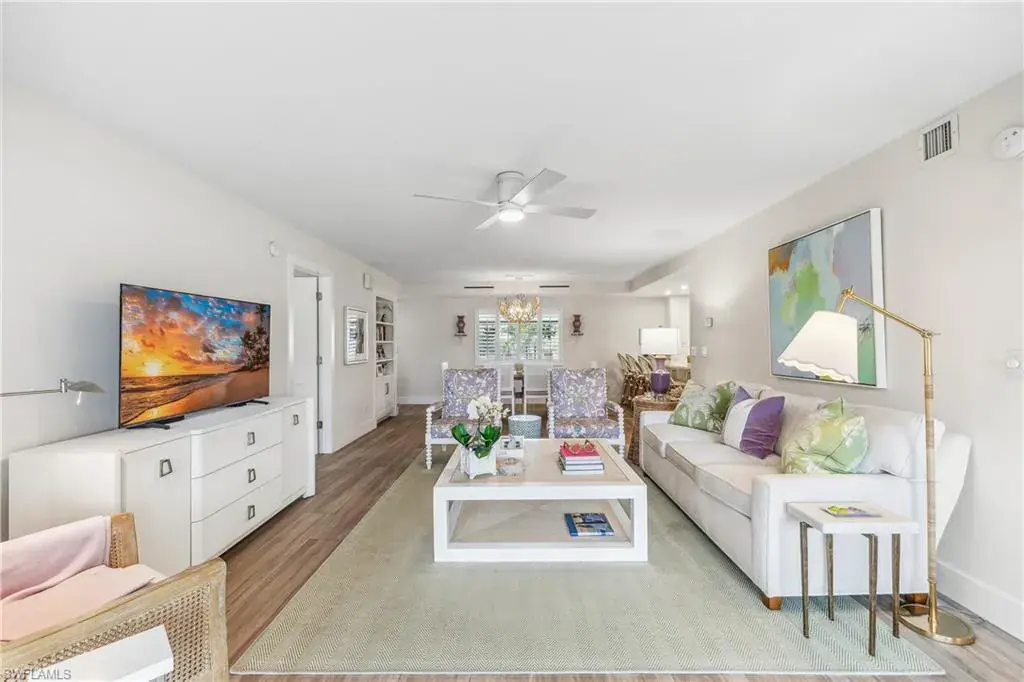 Beautifully Renovated Condo in Naples nestled within the gated community of Naples Bath & Tennis, this stunning first-floor, end-unit condo is the epitome of soft sophistication and style. Thoughtfully renovated throughout, the home welcomes you with wood-like tile flooring and a bright, open-concept design that exudes modern elegance.