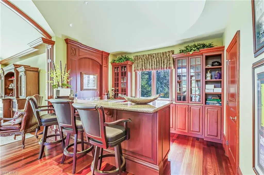 This one-of-a-kind custom built ‘estate home located in beautiful Naples Club Estates adjacent to Naples National Golf Club must be seen to be appreciated. Situated on a 3/4-acre lot with total privacy including a lake and preserve view! The quality and detail to this home is second to none! This unique interior includes custom woodworking, travertine tile, vaulted ceilings throughout! A beautiful custom bar area awaits you perfect for entertaining. Over size walk in closets and a beautiful custom wood panel office! The spacious second floor is complete with a full bath and can be used as an additional bedroom and game room complete with large wine cooler! Gas powered generator! The over 9,000 sq ft screened in Lani complete with large custom pool, spa and yes, a Koi fishpond with southern exposure is great for entertaining or just relaxing. As stated earlier this home must be seen to be fully appreciated!