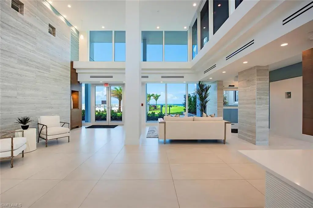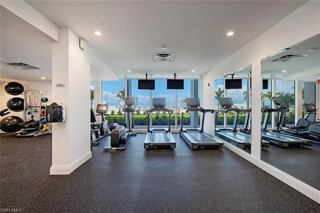 Marvel at turquoise waters and spectacular sunsets with direct gulf views from your private lanai from this beautifully appointed and remodeled apartment offered fully furnished, turnkey with all the extras! Tray and decorative ceilings with lighting and crown moldings are striking and create a unique ambiance the moment that you walk in! The open kitchen and quartz countertops, special lighting under and in the custom built in cabinets along with top appliances can accommodate the best chef! Porcelain ( wood looking)tile throughout makes for easy upkeep. It has all electric shutters and hurricane windows and an electric screen from balcony into the living room. The two bedrooms have plantation shutters on the windows. The guest room bedroom and bathroom are handicapped equipped. The master bathroom has double sinks and quartz countertops and walk in shower. There are so many beautiful details- must see to fully appreciate. In addition ,the whole building has been fully renovated. The two story glass windows in the lobby look straight out to the beach and the beautiful pool and resort style landscape area. All the amenities – lounge chairs,umbrellas , grilling area, shuffleboard are just steps from the beach. There are also two guest rooms, exercise room facing the beach along with, social room, kitchen and library – all for your enjoyment. Located within walking distance to Venetian Village with restaurants and shopping as well as a short drive to Waterside Shops, Mercato, and downtown 5th Ave. This apartment is perfect to move in and enjoy the Naples lifestyle on the beach!