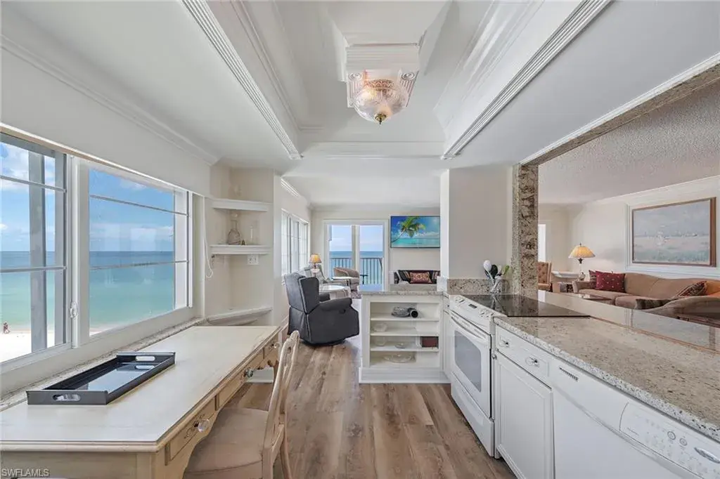 Exceptionally rare three-bedroom beachfront condominium in Naples Continental. This sought-after corner-end unit offers sweeping, unobstructed views of the Gulf. It’s one of eight units with in-unit laundry and comes with an assigned covered parking space. Just under 2,000 square feet, the spacious floor plan offers an enclosed balcony, plenty of storage, a walk-in closet and more. A prime canvas for a full renovation, this home is ready for your custom touch. Naples Continental is pet-friendly, allowing two pets without size restrictions. Owners can lease their units up to 12 times a year for a 30-day minimum. Residents can now enjoy the newly updated beachfront pool with a grilling area, shuffleboard, a social room with a full kitchen, library, guest suites and a fitness room. In the Moorings neighborhood, you are just a quick visit to the renowned dining and shopping offered at Venetian Village and a short drive from Mercato, Waterside Shops, 5th Avenue South and 3rd Street South.