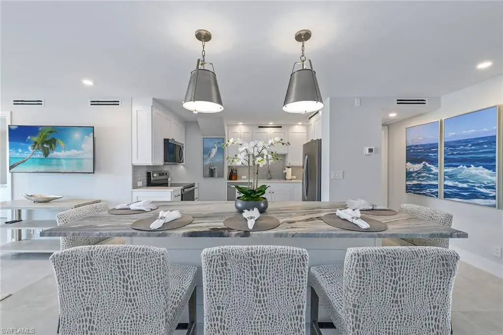 This freshly renovated eighth-floor residence offers gulf views from every room! Renovated from top to bottom, this unit features tile flooring throughout, recessed lighting, all new impact sliders, a new kitchen with stainless steel appliances, quartz countertops, a custom island with bar seating, extra storage and more. Wake up to views of the Gulf from both bedrooms that feature walk-in closets and en-suite baths. The spacious, northwestern-facing balcony extends off the living room and main bedroom, offering a spot to relax and enjoy the sunset. Residents can now enjoy the newly updated beachfront pool with a grilling area, shuffleboard, a social room with a kitchen, library, guest suites and a fitness room. Naples Continental is pet friendly, allowing owners to have two pets without any size restrictions. Leasing is allowed up to 12 times a year for a minimum of 30 days, making this an exceptional investment opportunity. In the Moorings neighborhood, you are just a quick visit to renowned dining and shopping offered at Venetian Village and a short drive from Mercato, Waterside Shoppes, 5th Avenue South and 3rd Street South.