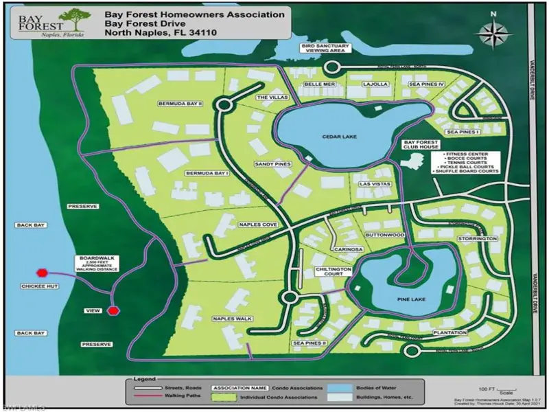 Bay Forest is one of Naples’ hidden gems, tucked west of US-41 and just minutes from Barefoot Beach and Delnor-Wiggins State Park. Residents enjoy 2+ miles of scenic walking and biking trails, a private boardwalk and fishing pier, and a kayak/paddleboard launch for endless outdoor enjoyment. The community also features a fitness center, library, tennis, pickleball, and bocce ball courts, as well as an active clubhouse. Naples Cove’s three buildings share their own private pool, located just a short stroll away.