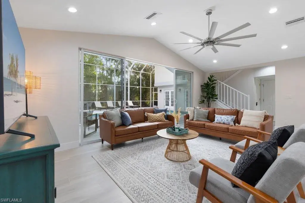 NO HOA OR FEES! X ZONE “Outside the flood zone”.. Oversized corner lot.. Centrally located in the heart of Naples, minutes to the beach, shops and restaurants Naples is famous for. Come see this updated and remodeled pool home including new roof, AC and tankless water heater. 5 bedrooms 4 baths in the main house (3 en-suite) additional cabana in screened pool area. Upon entry, you are greeted to an open floor plan and a spacious chef’s kitchen. This home offers great space as well as a balcony off the master bedroom overlooking pool area. Come make this your Home and start living the Naples lifestyle today!