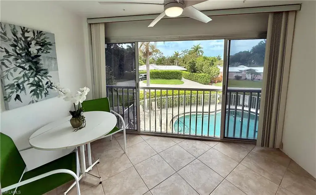 New Impact resistant windows. Sunshine, natural beauty, relaxation. This furnished beach condo has an optional private membership at the Moorings Beach Club with 465 feet of white sandy beachfront. The morning sunshine streams into the kitchen bringing a light airy start to the day. This convenient location is just 1 mile from the beach and walking distance to restaurants, shopping and grocery stores. This community enjoys an active day at the beach, pool, biking, walking trails, nature preserves, local parks and the zoo just to name a few. An active, healthy lifestyle is complemented with relaxing evenings as you take in the painted skies at sunset from the lanai which also overlooks the serene pool. No assessments, new hurricane rated windows, extra storage and covered parking.