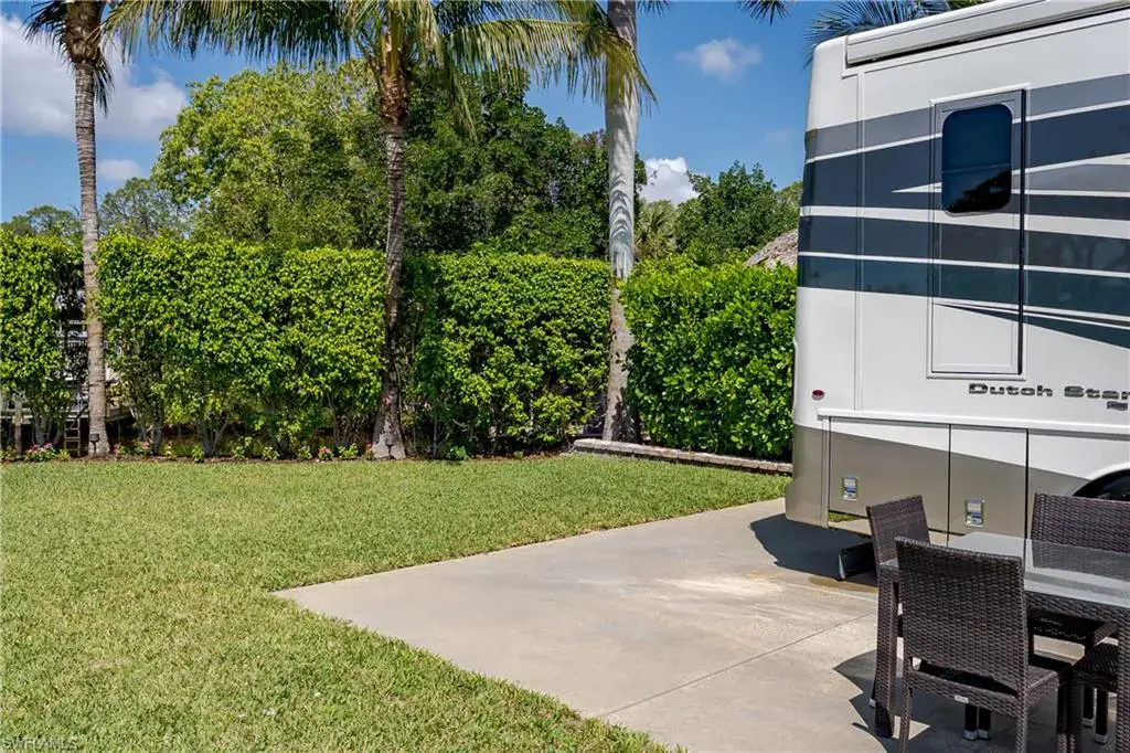 Your property at Naples Motorcoach Resort is a blank canvas awaiting your personal touch. Enjoy the spacious grassy lot as it is or design your own tropical retreat — the possibilities are endless!