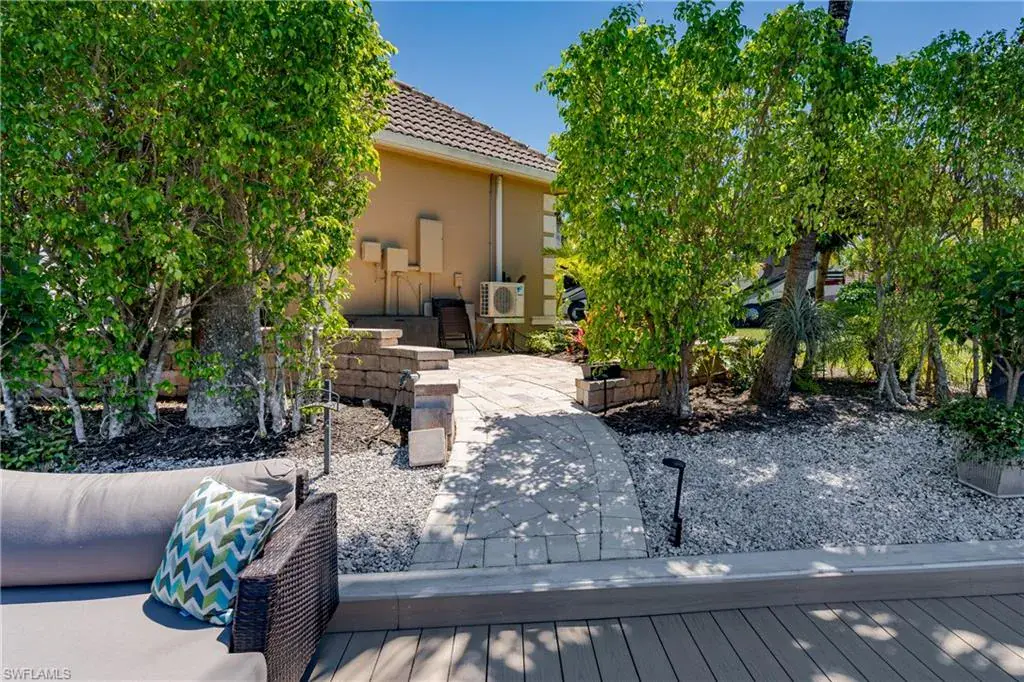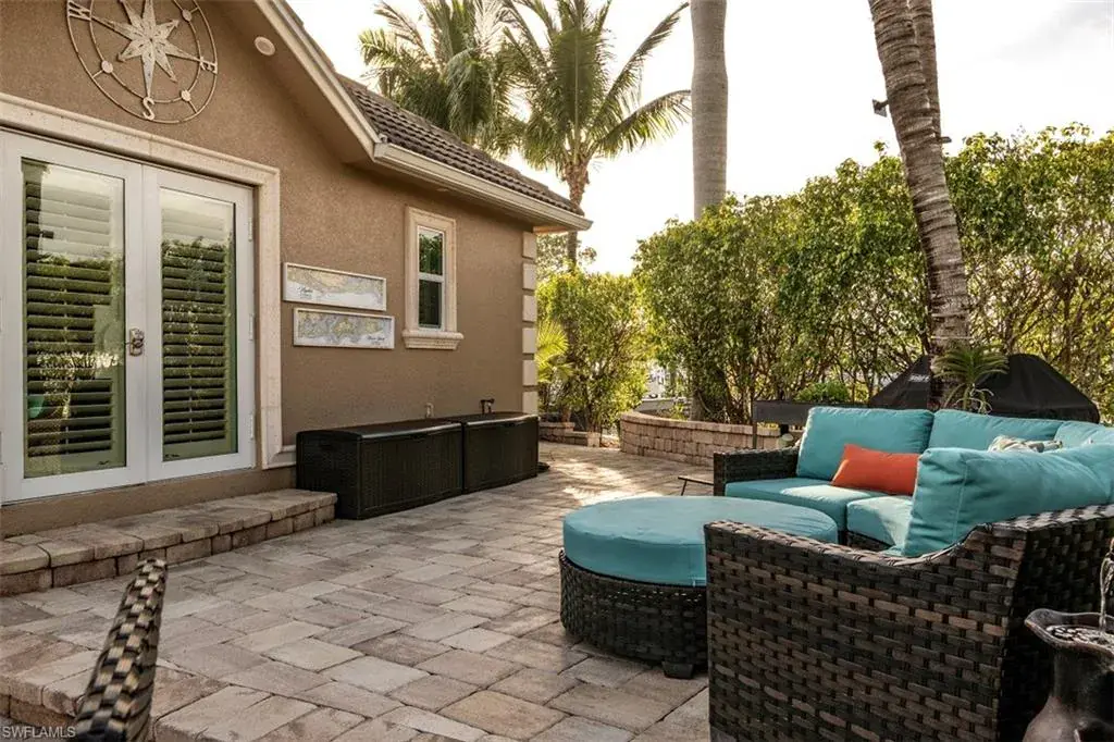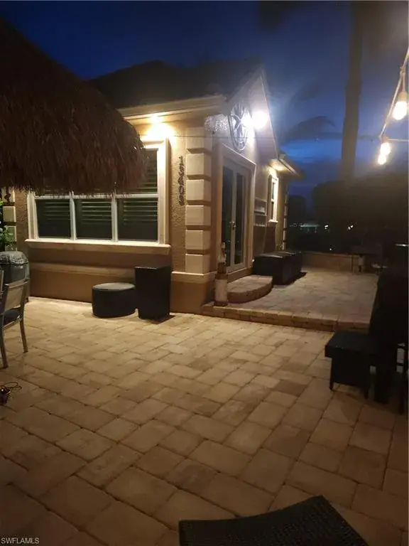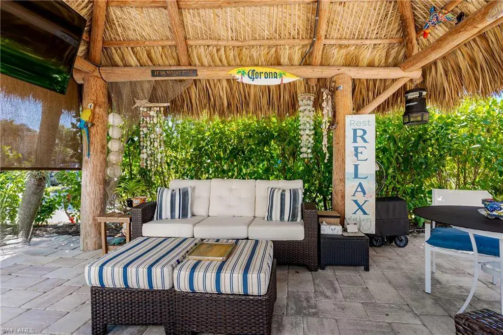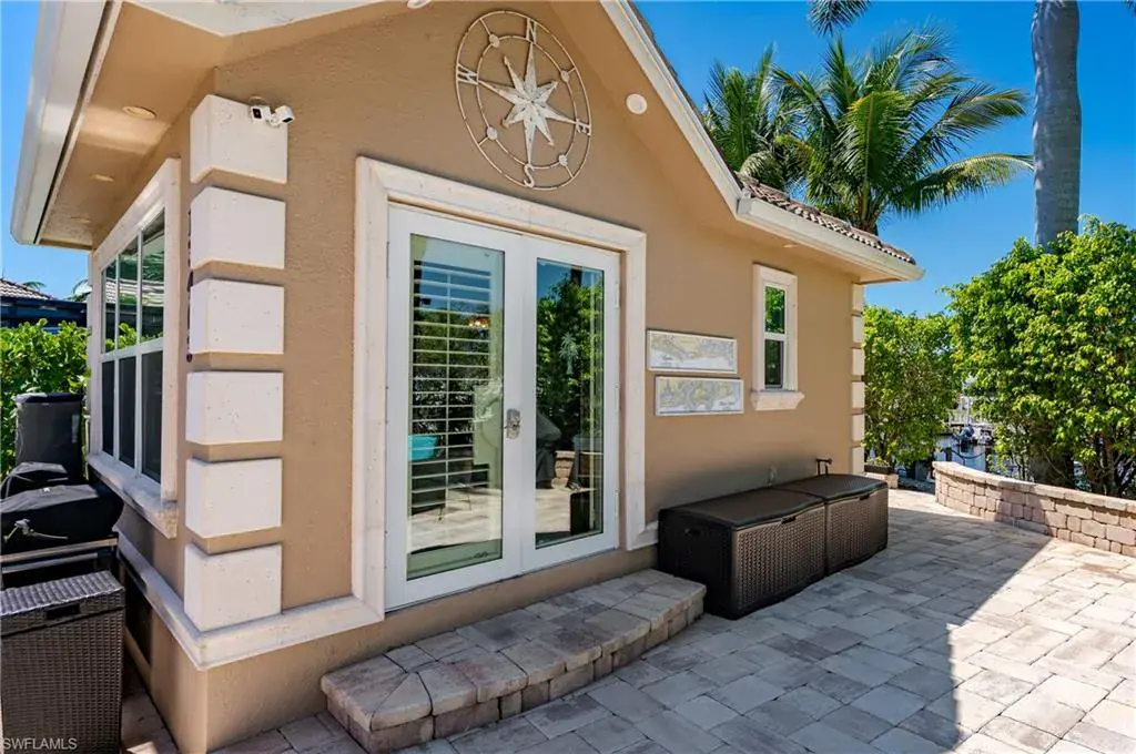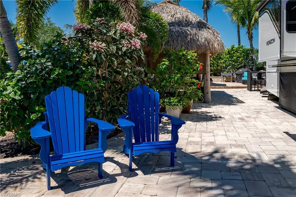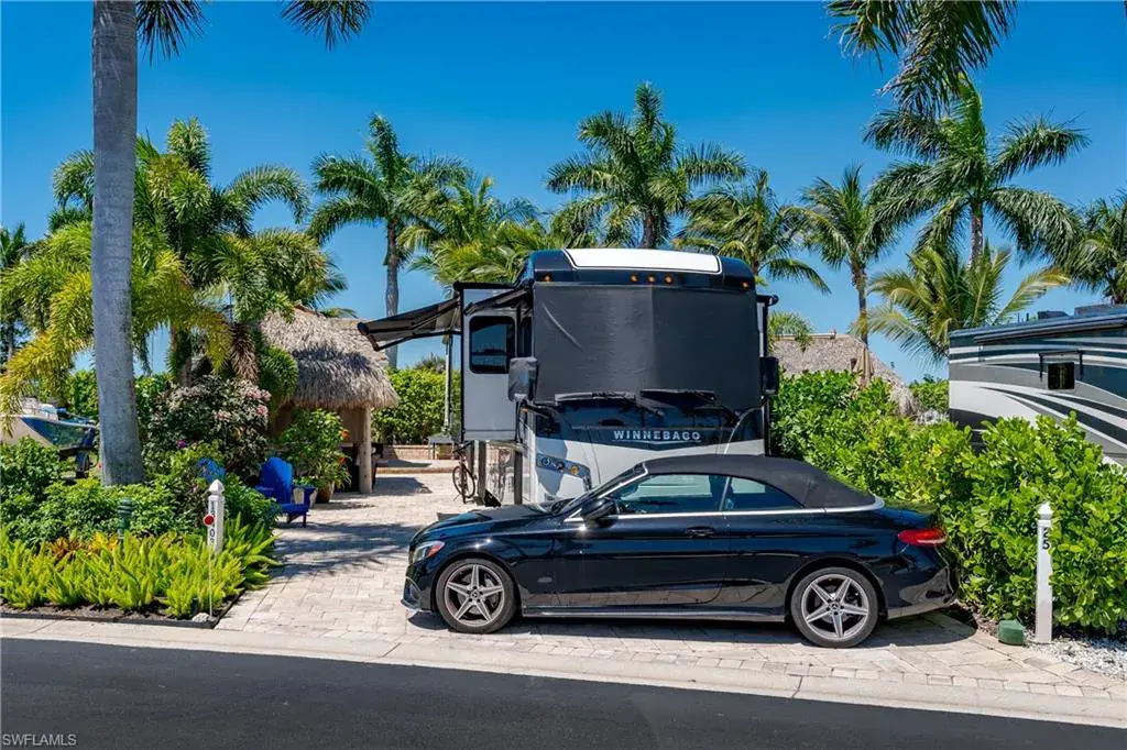 Lot 25 – Imagine…. you are driving your Class A Motorcoach through the gates of Naples Motorcoach Resort, you follow the Royal Palm lined roads to Lot 25, your personal oasis….. After your coach is parked you marvel at all of the beautiful landscaping, you first encounter your tiki, what a wonderful place to have your morning coffee or sit and relax with friends, then there is another area which you can use for dining with a coastal water feature that makes just the right amount of soothing background water sounds. You continue on and wait! A casita, including living room with a murphy bed to make the most of the space, a kitchen, an amazing bathroom, soaring ceilings, and can we talk storage????? Plenty of storage everywhere! Glass doors that both open, large windows, windows and doors with amazing white plantation shutters for privacy when you choose. However, perhaps the best… has been saved for last…. you step outside the casita and follow your paved path, and now what??? You are on your own private dock on a canal with indirect Gulf Access!!! The oversized dock comes with the furniture and fire table as well as the oversized umbrella. Here you can relax with friends, enjoy a beverage and watch for manatee, snook, and even a shark has been seen! Now you had already put your boat into the canal from the community boat ramp, so your boat is all ready for you tied to your dock. You pack wine and cheese, you have invited a few close friends and you head down the canal to watch the sunset over the gulf…. As you are looking at one of the most beautiful sunsets you have ever seen, you cant help but be grateful that you get to not only have this wonderful experience, but you get to share it with friends. Come to Naples Motorcoach Resort and lot 25, start making your memories today. Naples Motorcoach Resort is a Class A only resort and boasts a beautiful infinity pool, hot spa, exercise room, men and ladies’ saunas and a kitchen that owners can use. A clubhouse for events whether sponsored by the resort or you can reserve for your own gathering. Two satellite pools each with a hot spa their own rest rooms and a laundry room. We can’t forget your furry best friend; the resort also has a dog park!