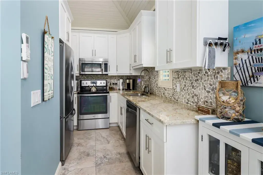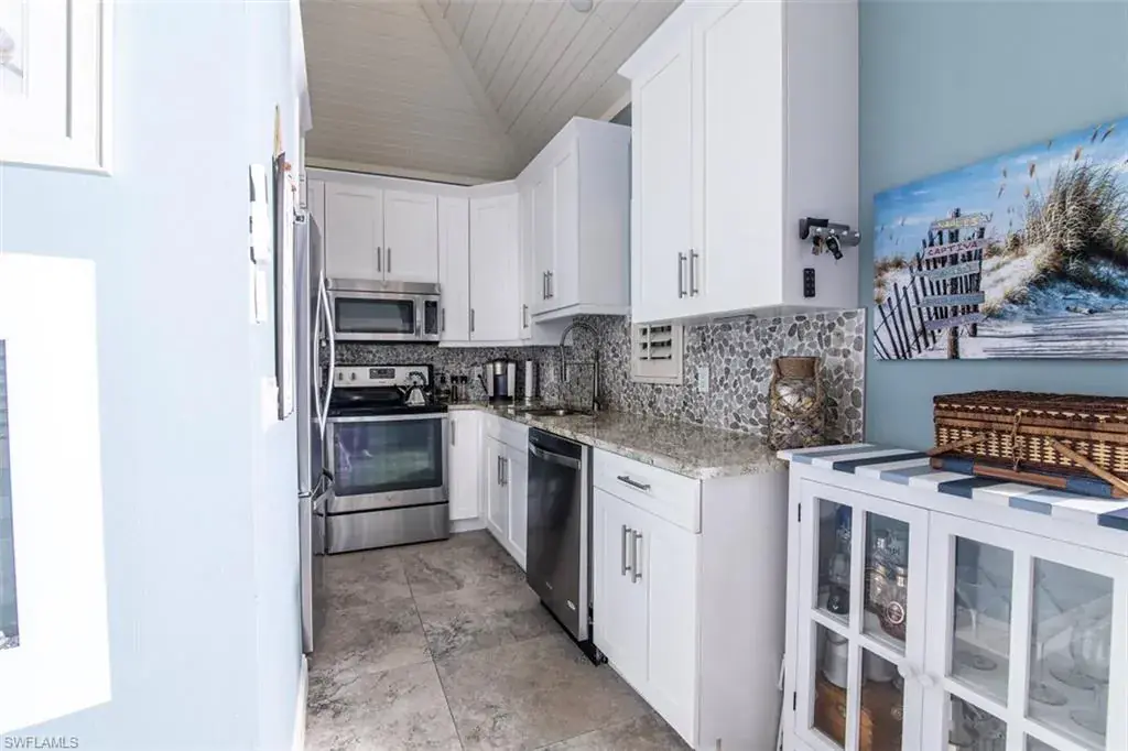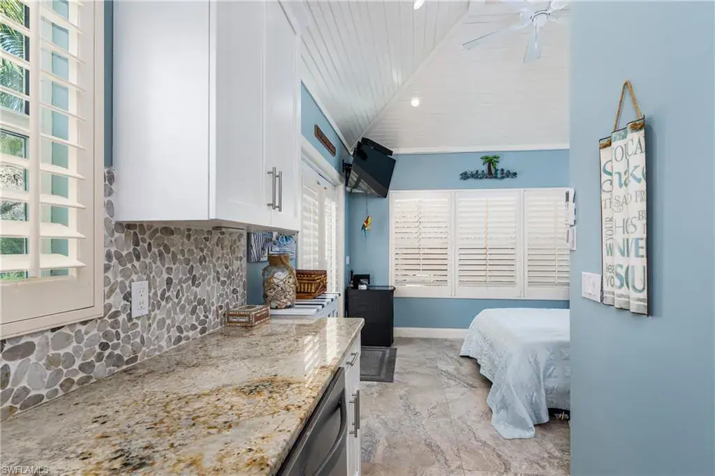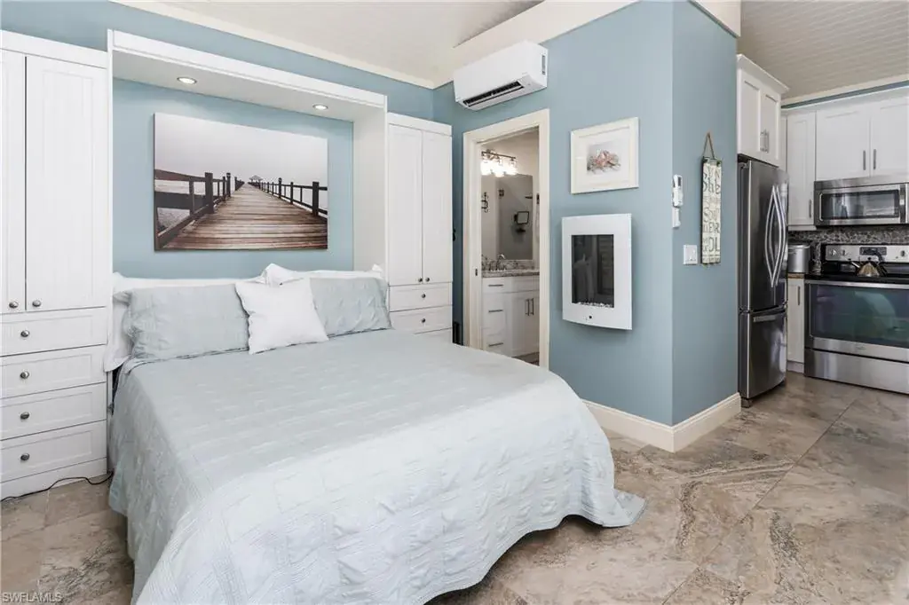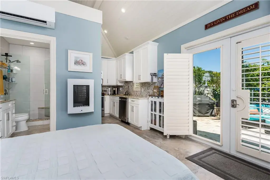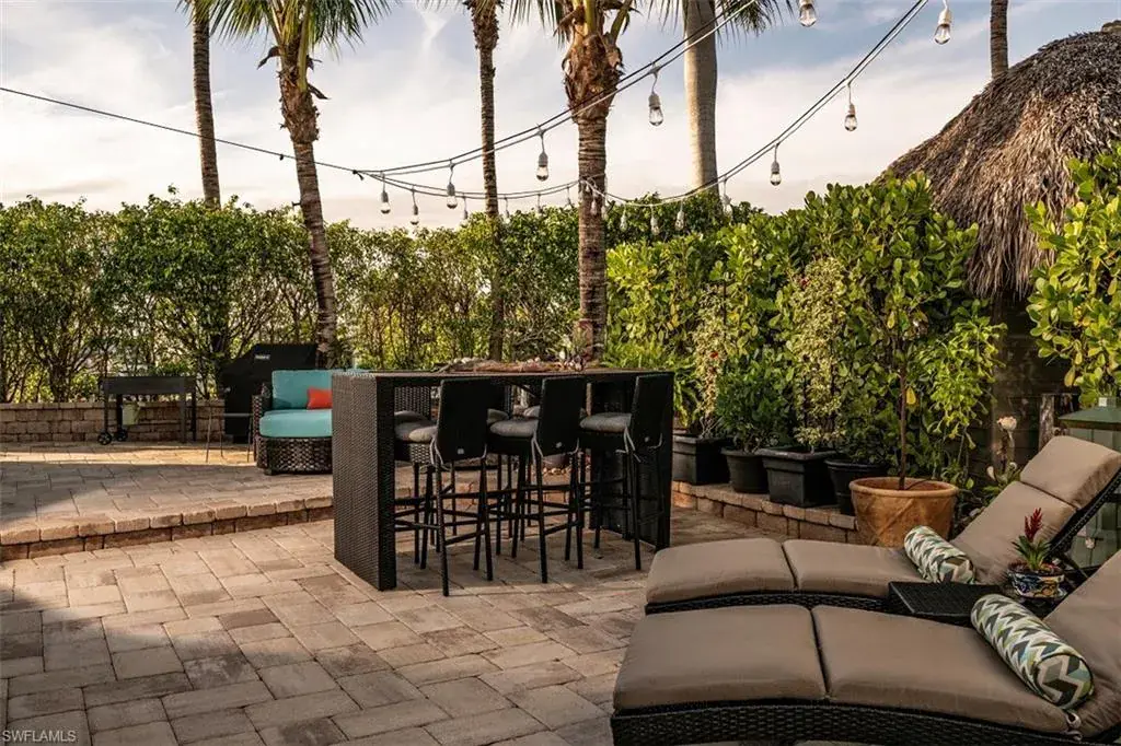 Lot 25 – Imagine…. you are driving your Class A Motorcoach through the gates of Naples Motorcoach Resort, you follow the Royal Palm lined roads to Lot 25, your personal oasis….. After your coach is parked you marvel at all of the beautiful landscaping, you first encounter your tiki, what a wonderful place to have your morning coffee or sit and relax with friends, then there is another area which you can use for dining with a coastal water feature that makes just the right amount of soothing background water sounds. You continue on and wait! A casita, including living room with a murphy bed to make the most of the space, a kitchen, an amazing bathroom, soaring ceilings, and can we talk storage????? Plenty of storage everywhere! Glass doors that both open, large windows, windows and doors with amazing white plantation shutters for privacy when you choose. However, perhaps the best… has been saved for last…. you step outside the casita and follow your paved path, and now what??? You are on your own private dock on a canal with indirect Gulf Access!!! The oversized dock comes with the furniture and fire table as well as the oversized umbrella. Here you can relax with friends, enjoy a beverage and watch for manatee, snook, and even a shark has been seen! Now you had already put your boat into the canal from the community boat ramp, so your boat is all ready for you tied to your dock. You pack wine and cheese, you have invited a few close friends and you head down the canal to watch the sunset over the gulf…. As you are looking at one of the most beautiful sunsets you have ever seen, you cant help but be grateful that you get to not only have this wonderful experience, but you get to share it with friends. Come to Naples Motorcoach Resort and lot 25, start making your memories today. Naples Motorcoach Resort is a Class A only resort and boasts a beautiful infinity pool, hot spa, exercise room, men and ladies’ saunas and a kitchen that owners can use. A clubhouse for events whether sponsored by the resort or you can reserve for your own gathering. Two satellite pools each with a hot spa their own rest rooms and a laundry room. We can’t forget your furry best friend; the resort also has a dog park!