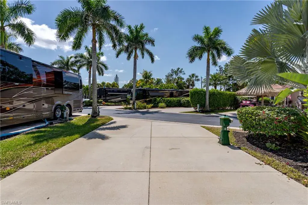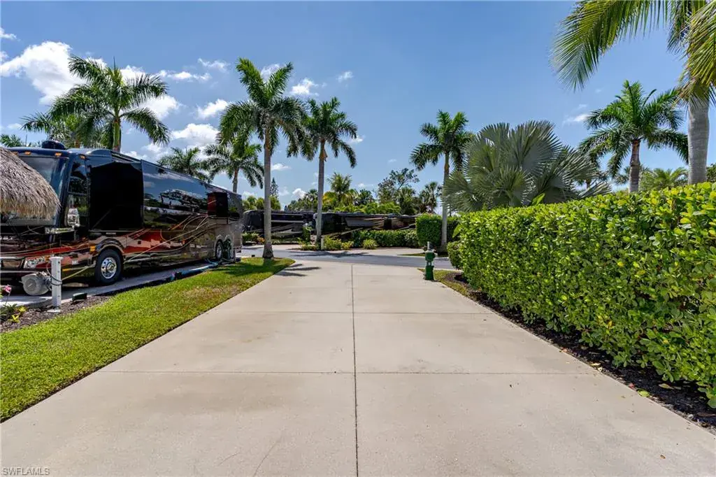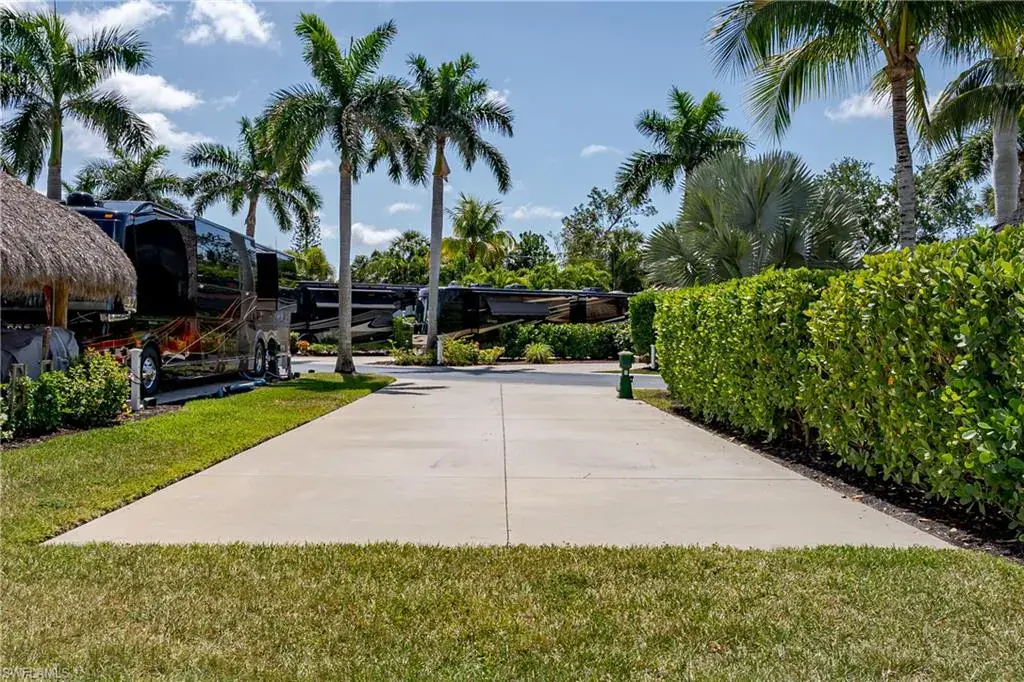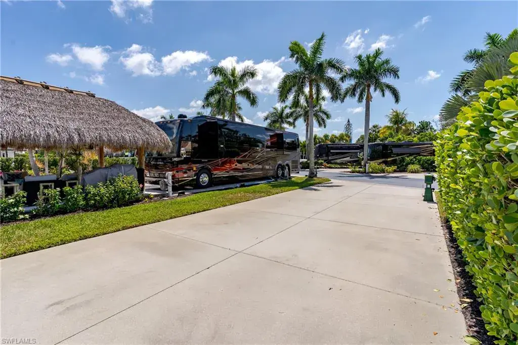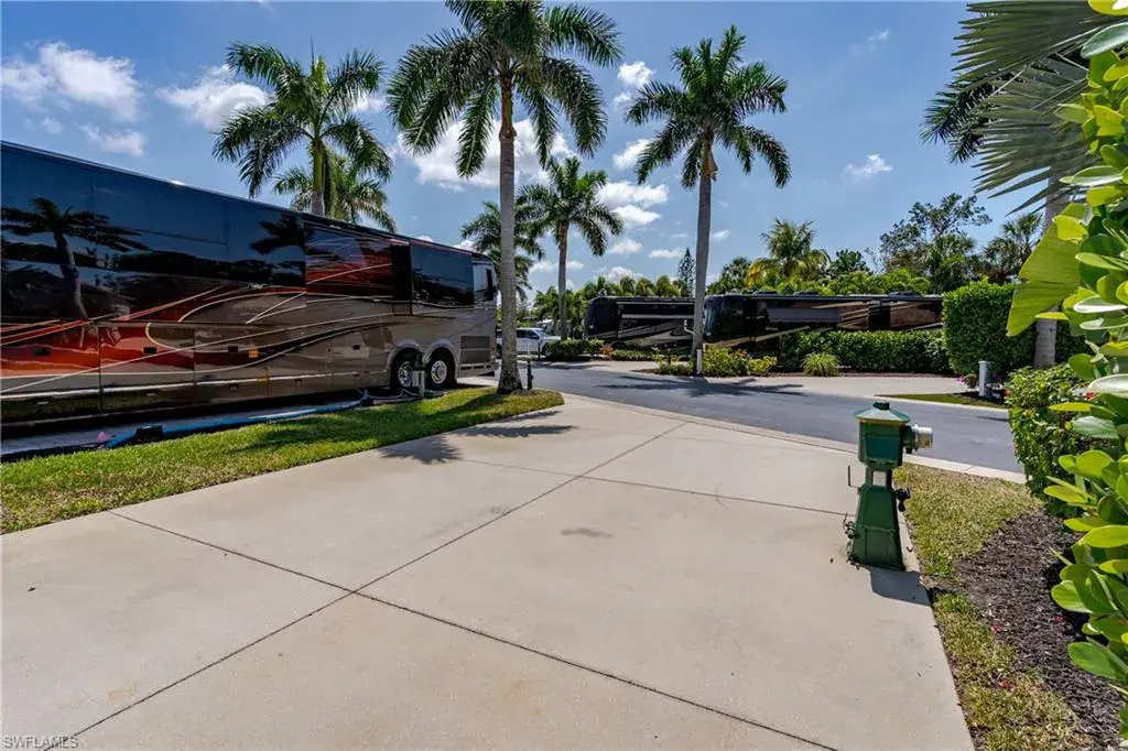 Lot 170 – You drive past the beautiful entry fountains to the gates of Naples Motorcoach Resort. As the gates open you marvel at the beautiful landscaping and fountain in front of the club house. As you turn down your Royal Palm lined street, you see your personal oasis. You pull in and you once again are in awe of the beautiful lakefront view almost perfectly centered on the majestic fountain. Past the fountain you see the beach that then leads to the pool and beautiful clubhouse. Your view is just spectacular. This year you decide to look at all of the beautiful properties that are paved and landscaped to draw from those ideas to design your own piece of paradise. You have a blank slate, do you want a tiki? a casita? a hardscape? all of the above? You are your own creator of your own version of paradise. But what did you do today? Well you took the community kayaks and launched them from the community boat ramp and went as far as the gulf and back. After all of that you decided a nice dip in the infinity pool and sauna is in order. Naples Motorcoach Resort is a Class A only resort and boasts a beautiful infinity pool, hot spa, exercise room, men’s and ladies saunas as well as a kitchen that owners can use. There are also two satellite pools with a hot spa, their own rest rooms and a laundry room. We can’t forget your furry best friend, the resort even has a dog park! Special note to investors, looking for a place to invest or reinvest as a 1031 exchange? Look no further, own this piece of paradise and put it into the management run rental program. The rental program administration advertises, schedules renters, collects payment including applicable taxes/fees and sends you your portion. These deeded lots are also mortgage eligible and available for a quick close.