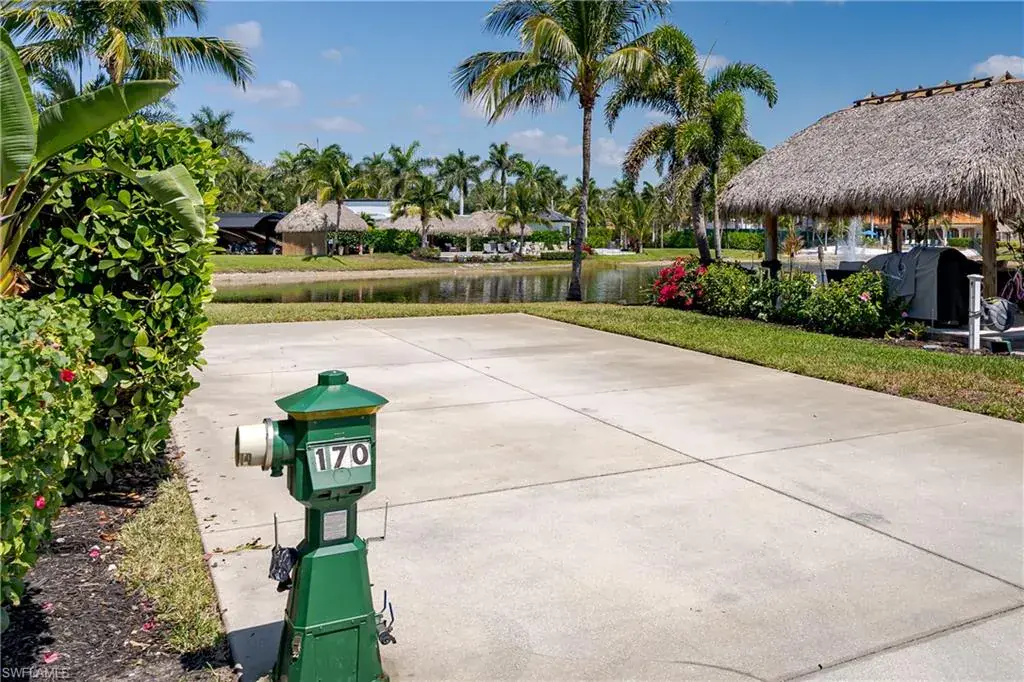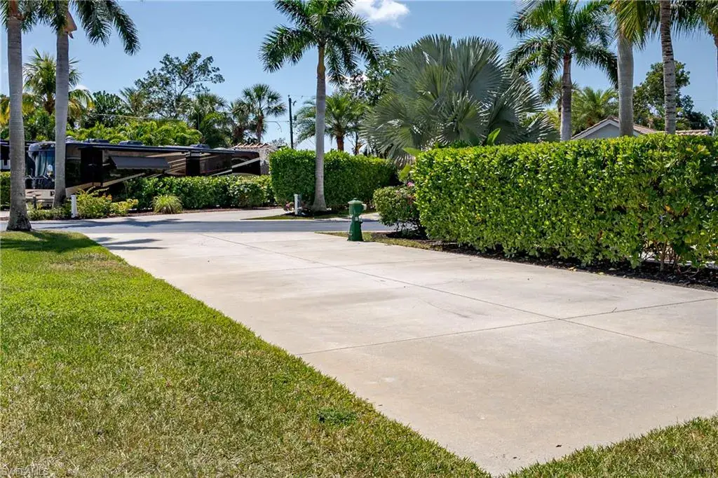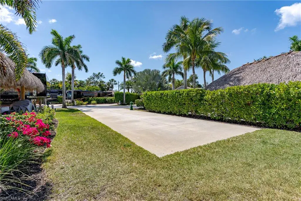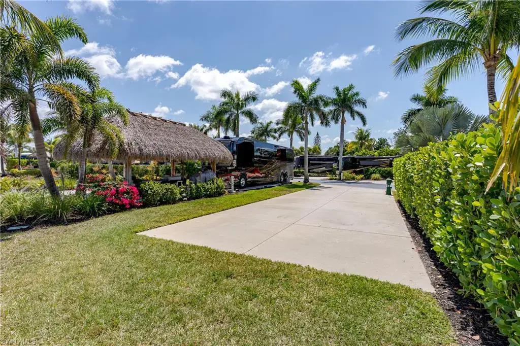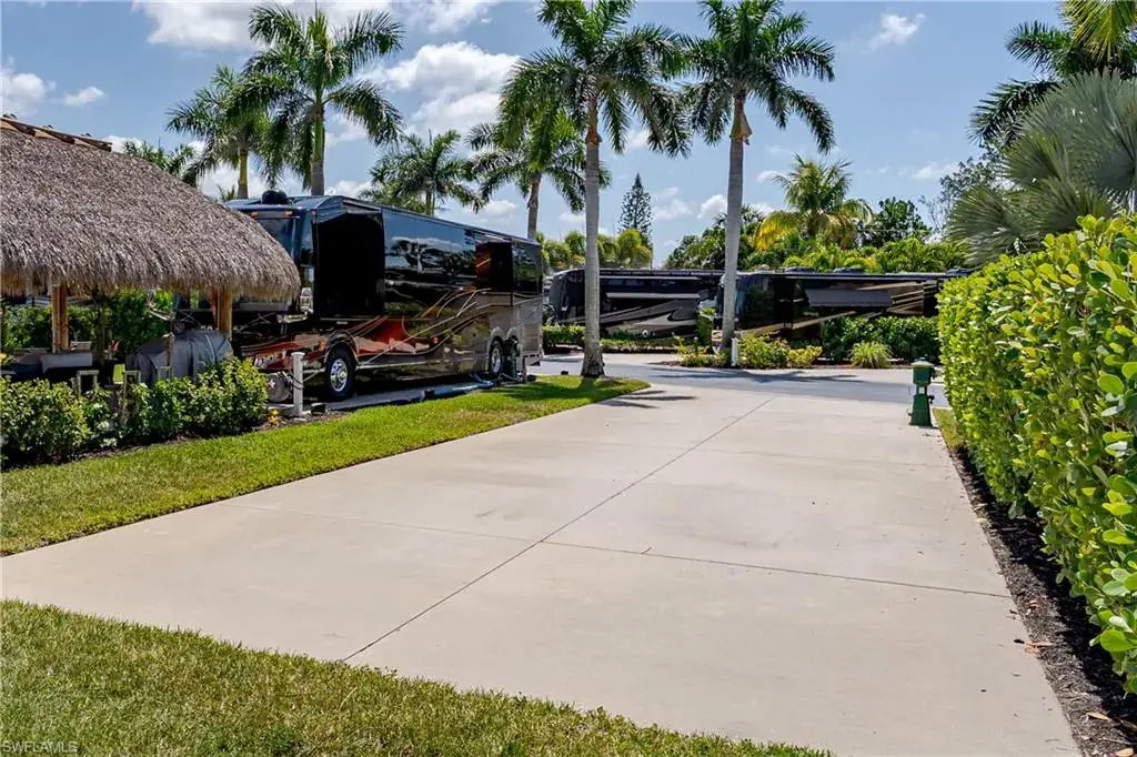 Lot 170 – You drive past the beautiful entry fountains to the gates of Naples Motorcoach Resort. As the gates open you marvel at the beautiful landscaping and fountain in front of the club house. As you turn down your Royal Palm lined street, you see your personal oasis. You pull in and you once again are in awe of the beautiful lakefront view almost perfectly centered on the majestic fountain. Past the fountain you see the beach that then leads to the pool and beautiful clubhouse. Your view is just spectacular. This year you decide to look at all of the beautiful properties that are paved and landscaped to draw from those ideas to design your own piece of paradise. You have a blank slate, do you want a tiki? a casita? a hardscape? all of the above? You are your own creator of your own version of paradise. But what did you do today? Well you took the community kayaks and launched them from the community boat ramp and went as far as the gulf and back. After all of that you decided a nice dip in the infinity pool and sauna is in order. Naples Motorcoach Resort is a Class A only resort and boasts a beautiful infinity pool, hot spa, exercise room, men’s and ladies saunas as well as a kitchen that owners can use. There are also two satellite pools with a hot spa, their own rest rooms and a laundry room. We can’t forget your furry best friend, the resort even has a dog park! Special note to investors, looking for a place to invest or reinvest as a 1031 exchange? Look no further, own this piece of paradise and put it into the management run rental program. The rental program administration advertises, schedules renters, collects payment including applicable taxes/fees and sends you your portion. These deeded lots are also mortgage eligible and available for a quick close.