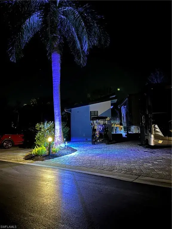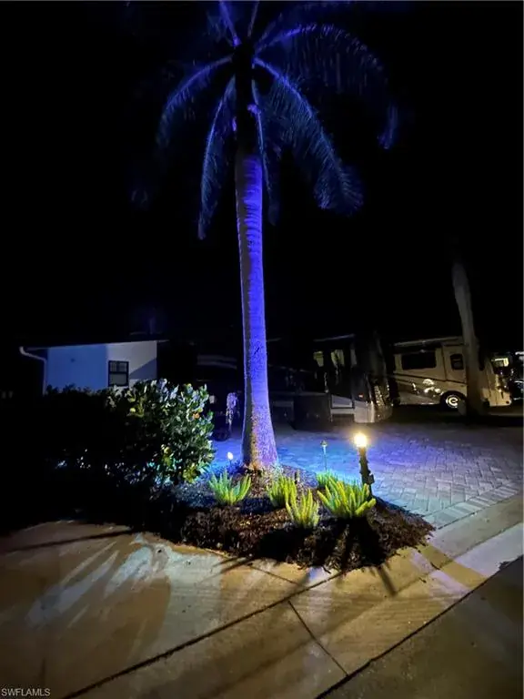 Lot 48 – Welcome to Naples Motorcoach Resort and this exquisite RV lot with Casita and Tiki! Beautifully paved lot with tropical landscaping. Relax under your tiki hut in the day or evening, the day views of this tropical paradise are only surpassed by the evening view of the lush landscaping illuminated with custom designed lighting.