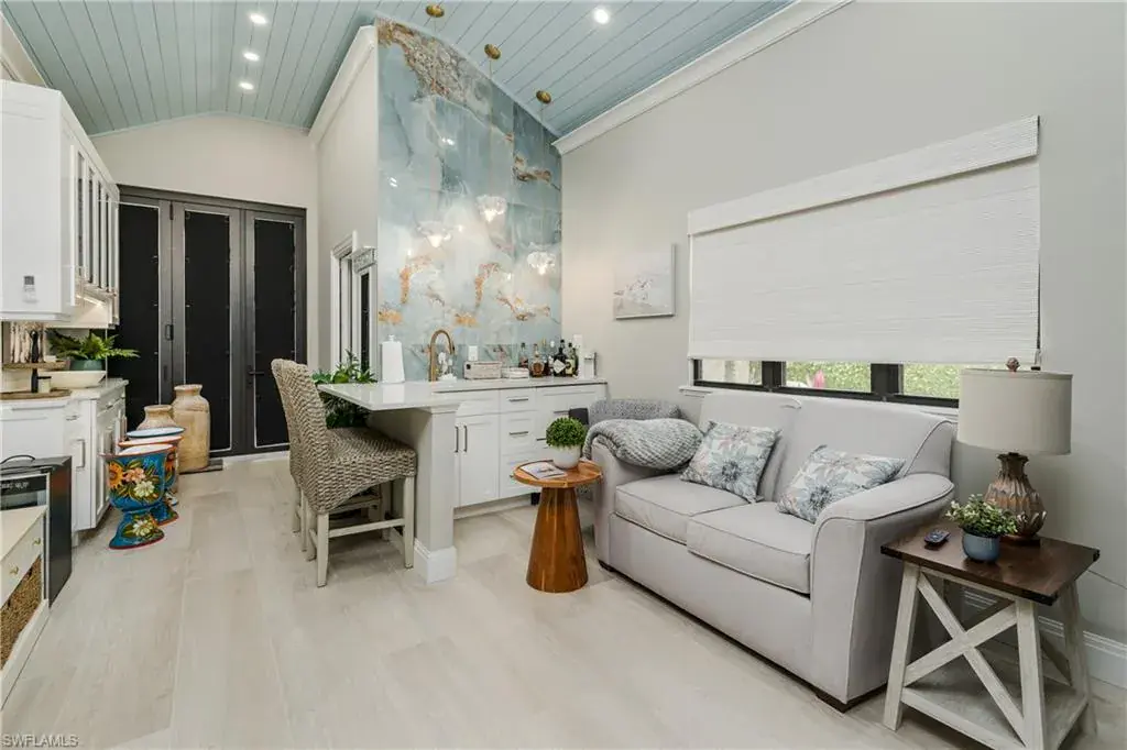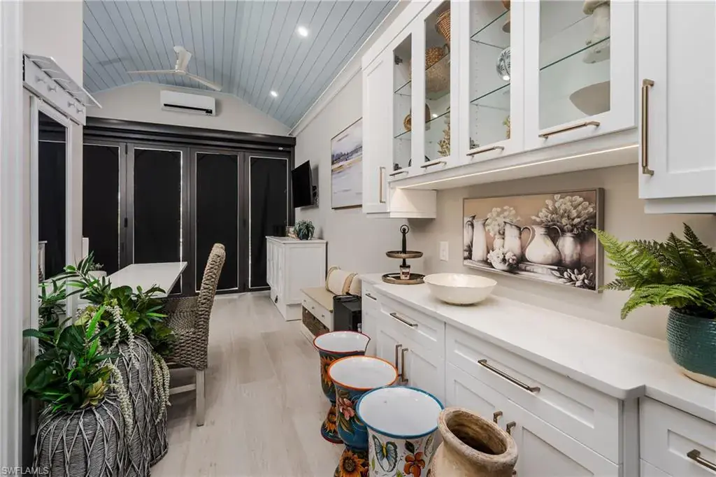 This property is designed to be an entertainers dream! From the amazing casita with covered back patio / porch with built in fireplace overlooking tropical landscaping, to the front with folding glass doors that overlooks the incredible water feature. Want to leave the doors open to capture the beautiful breeze? No issue with the remote controlled automated screen wall. With the two tikis for relaxing or entertaining, this property has to be seen to be fully appreciated. Inside the casita no detail has been overlooked from the amazing living room, bath to the decorative features, all designed to the highest of standards. The two tikis have been expertly placed for privacy and the best views of tropical plantings. On one of the properties when you pull up your coach, no need to put out your steps, the raised patio enables you to just walk out of your coach encouraging seamless living and entertaining. This property was expertly designed, the current owners have hosted parties where a full band has set up front with folding glass doors opened, and have entertained 100 plus people. With the room for three motorcoaches, more options – have a buddy or relative you would like staying with you or perhaps you wish to put one or two of them in the rental program, the options are endless.