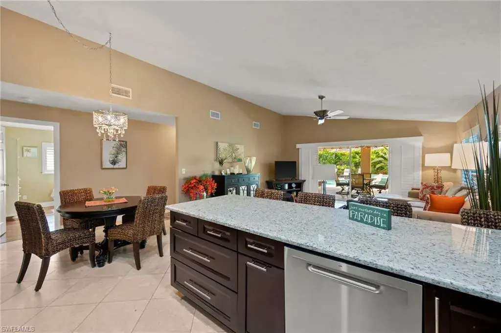 Located in the highly desirable 500 block of Naples Park, this beautifully updated home offers a rare combination of style, comfort, and proven investment potential. With a strong track record as a successful short-term rental and future bookings already in place, this property is ideal for investors or buyers seeking a second home with the option for supplemental income. Bookings can be honored or canceled at the buyer’s discretion, offering complete flexibility from day one. Just minutes from Vanderbilt Beach, Mercato, and a variety of local restaurants, cafes, and shops, the home delivers the quintessential Naples lifestyle with no HOA and no rental restrictions. The street itself has recently undergone beautification, enhancing curb appeal and neighborhood value while contributing to a relaxed, coastal charm that renters and homeowners alike will appreciate. Inside, the home features a light and modern interior with two separate living areas — a rare and highly desirable layout in Naples Park that offers flexibility for families, guests, or entertaining. The kitchen is beautifully finished with granite countertops and stainless steel appliances, while custom Plantation shutters and tasteful, neutral décor tie the spaces together. Every inch has been thoughtfully maintained and updated, making this a true turnkey opportunity with no deferred maintenance to worry about. The outdoor living space is equally impressive, featuring a private, fully enclosed backyard with a custom heated saltwater pool and spa, sun shelf, AquaLink remote system, and a travertine pool deck. Professionally landscaped with upgraded sod, shell mulch, and tropical palms, the yard creates a peaceful, resort-like setting for relaxing or hosting. Additional upgrades include impact-resistant windows and garage doors, electric storm shutters, and fresh exterior paint with waterproofing — all contributing to long-term peace of mind and lasting value. Whether you’re looking for a smart investment, a seasonal retreat, or a second home that effortlessly generates income when you’re not in town, this property offers the perfect balance of function, flexibility, and Florida lifestyle in one of Naples’ most sought-after neighborhoods.