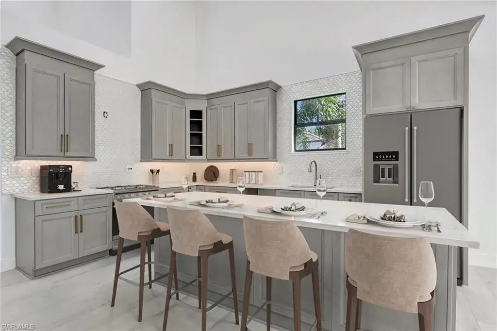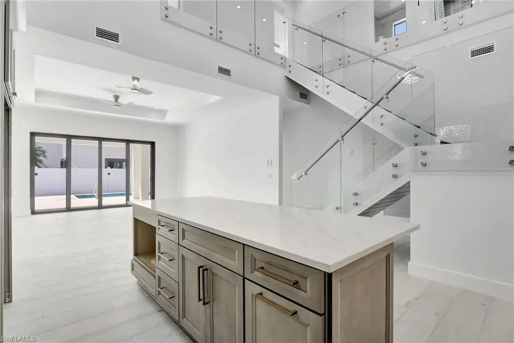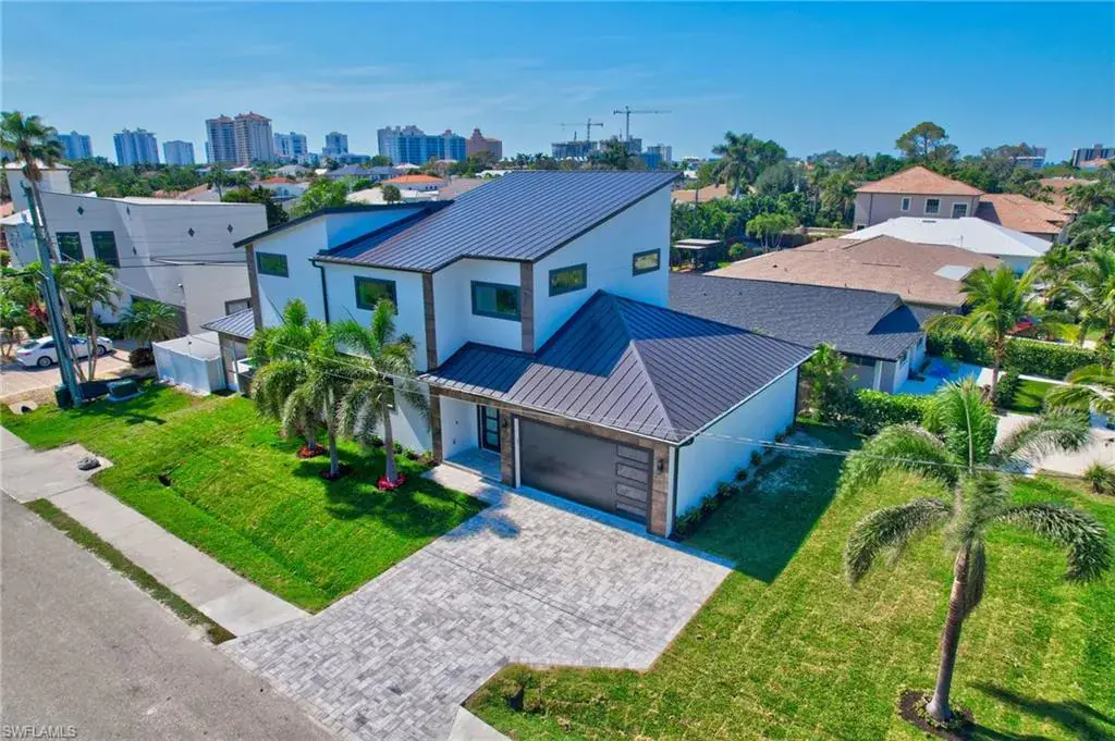 Discover Luxury living in this newly constructed two-story residence nestled on a prestigious corner lot on the 500 block in Naples Park. Just one block from the Gulf, this exquisite home offers unparalleled convenience and coastal living at its finest. The property boasts remarkable outdoor spaces, including a stunning pool