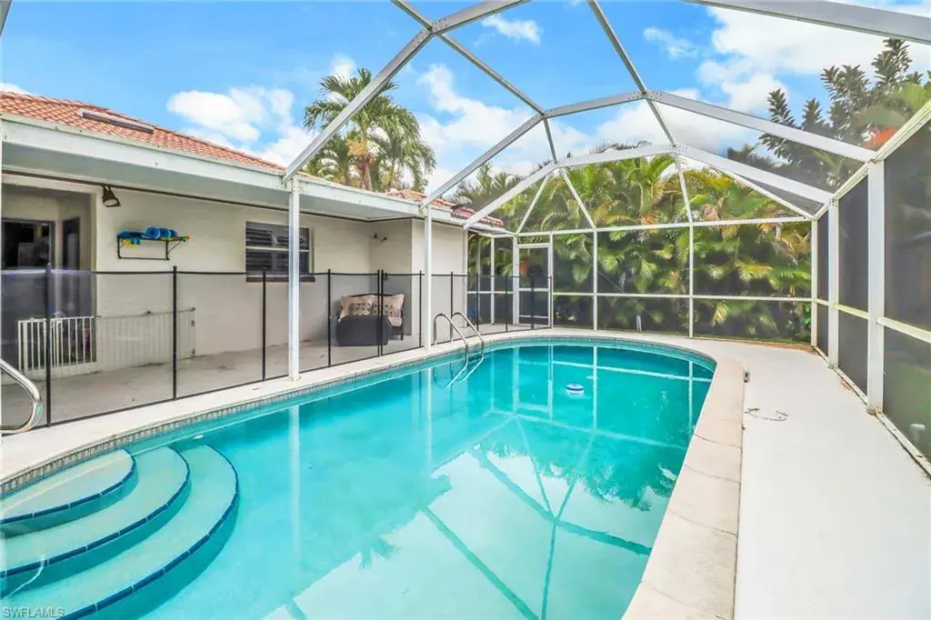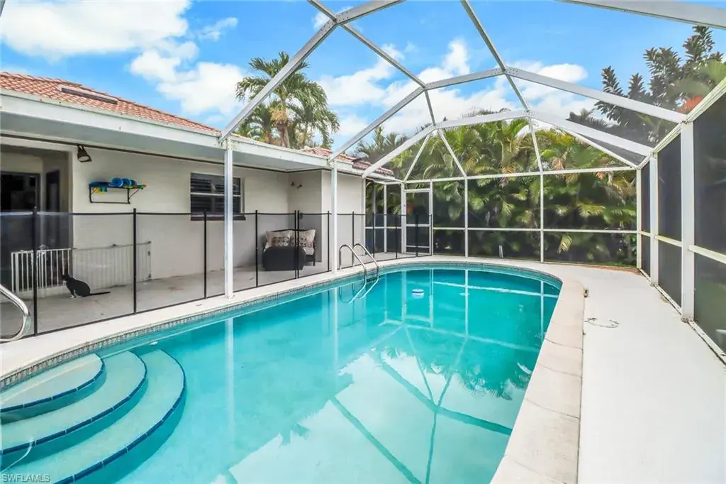 Own a piece of paradise with this beautiful three-bedroom pool home within a mile walking distance to one of Naples’s fabulous beaches and parks. The vaulted ceilings in the spacious great room adds to the charm of this wonderful home. Enjoy a large kitchen with spacious granite countertops and stainless appliances. Entertain outdoors on your private screened lanai overlooking the heated pool. The property runs on well water for the irrigation system saving you high water bills. It’s also great for the investor allowing airbnb’s in Naples Park. Having shopping, restaurants, and a Whole Foods grocery store just minutes away at Mercato, along with the newest movie theatre, provides convenience and entertainment options right at your doorstep. This home truly offers the perfect blend of relaxation in a desirable location.
