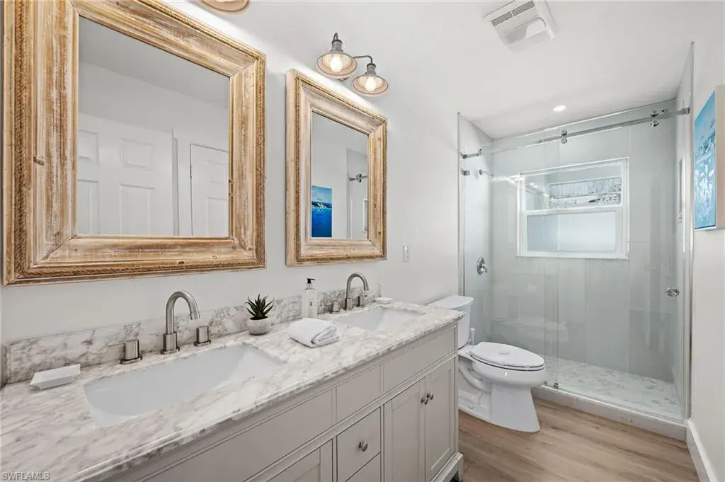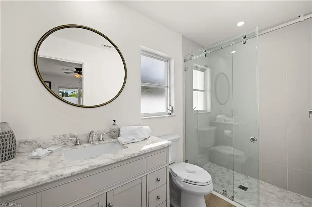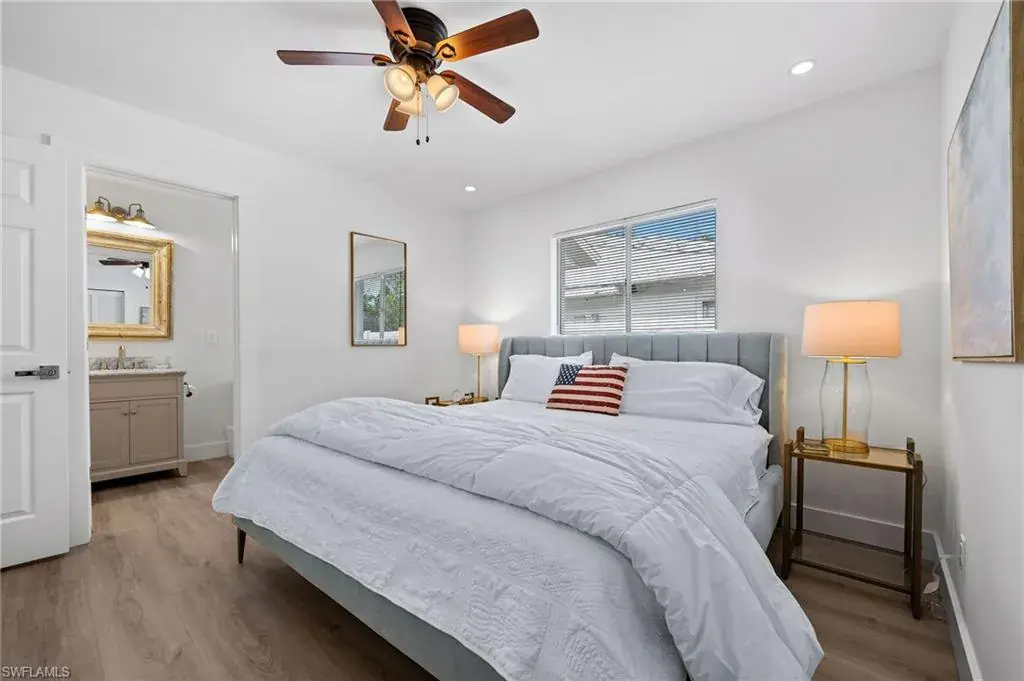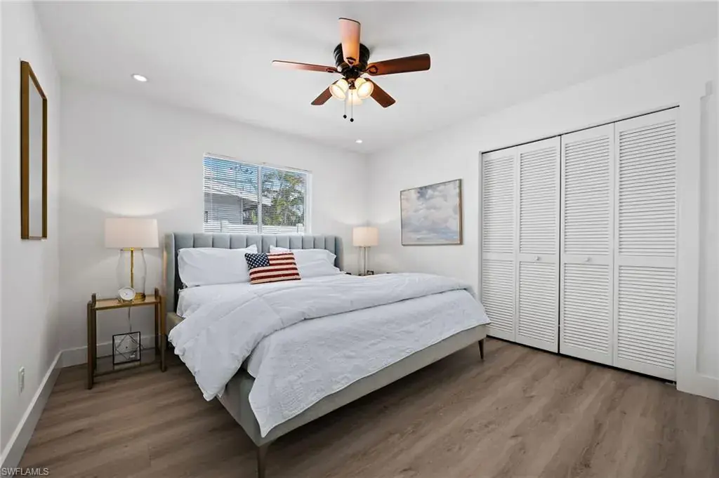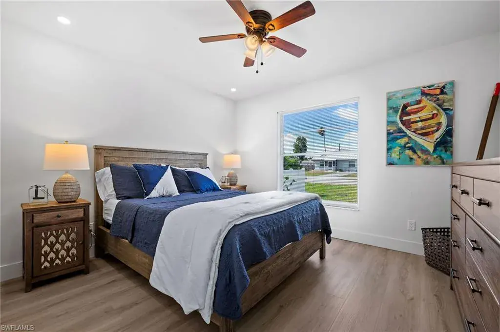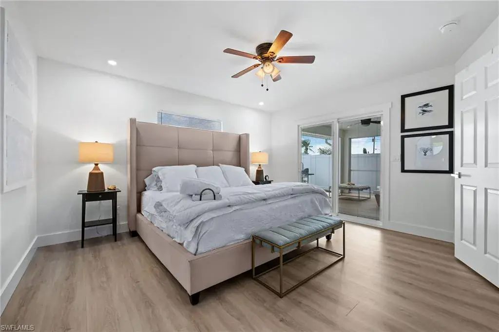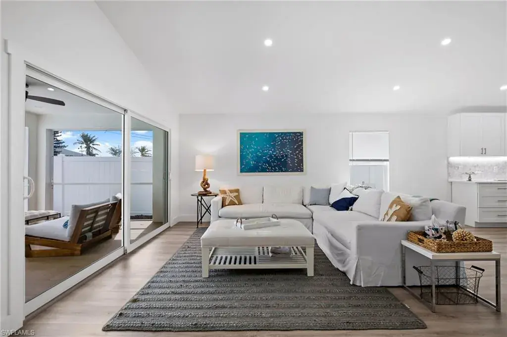 The quintessential 3-bed, 2-bath home in Naples Park. Recently updated throughout and offered completely turnkey the home features an open concept floor plan with vaulted ceilings, split-bedrooms, and luxury vinyl floors. The chef inspired kitchen has quartz countertops, stainless steel appliances and a large island with breakfast bar seating. The backyard area is perfect for entertaining featuring an oversized pool with Southern exposure and plenty of green space and mature palms. The two-car garage has also been upgraded with epoxy floors, brand new washer/dryer and plenty of room for extra storage. Naples Park is centrally located with walkability or just a short bike ride to the best of Naples including, Vanderbilt Beach, Delnor Wiggins State Park, and the many boutique shopping and dining options of Mercato and the Pavilion. 10 minute drive to Waterside, 15 minute drive to 5th Avenue and the Naples Pier.