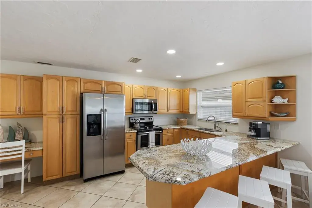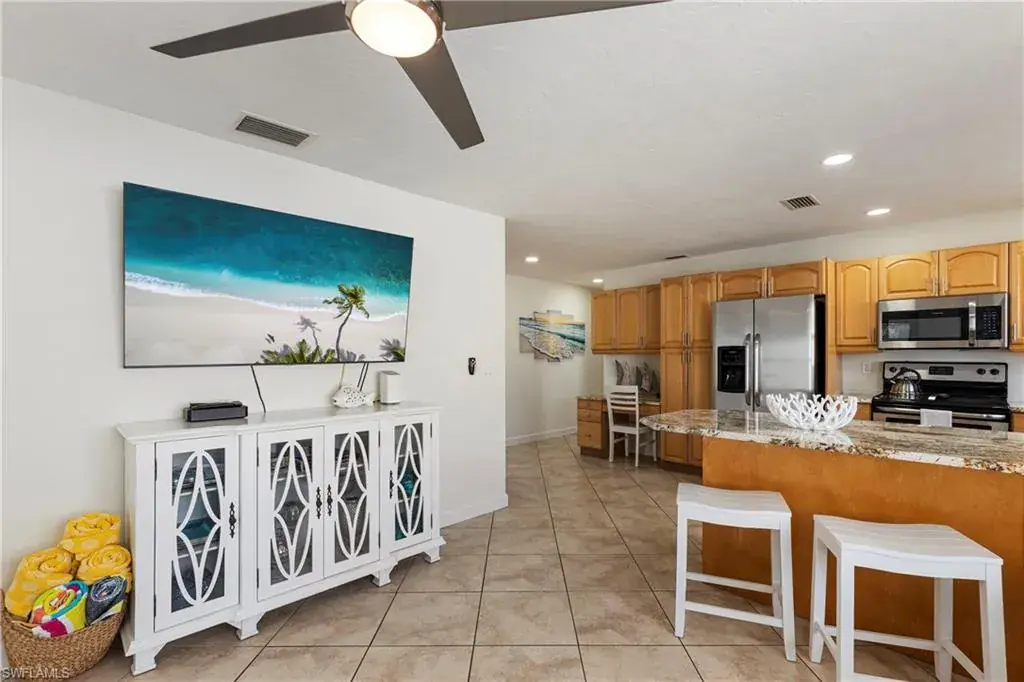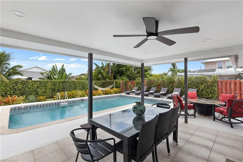 This freshly painted and remodeled home offers modern comfort and style. It is being offered turn-key furnished. Just show up with your toothbrush and a change of clothes and get ready for paradise or start renting immediately to catch all the income of the Naples vacation season. The open kitchen features stainless steel appliances and granite countertops, connecting smoothly to the inviting living area. This property is spacious enough to sleep 8 people comfortably. Step outside to your private outdoor space with a large back pool deck to bask in the Naples Sunshine. The covered lanai is perfect for entertaining in the shade or take a refreshing dip in the heated pool. This home is attractively priced and is ready for immediate occupancy.