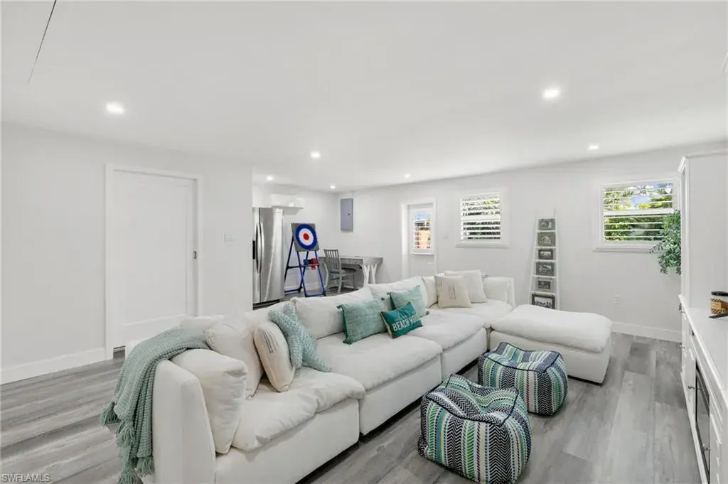 Step into modern coastal living with this beautifully renovated single-family home in highly desirable Naples Park, a vibrant neighborhood just moments from world-class beaches, upscale shopping, and dining. No HOA. No rental restrictions. Situated on a premium corner lot in the coveted X flood zone, this home blends peace of mind with prime location. A full interior remodel in 2022 brings a fresh, contemporary feel throughout, from sleek flooring and updated finishes to a thoughtfully redesigned layout perfect for relaxed Florida living. Newer impact windows offer energy efficiency, storm protection, and an abundance of natural light. Originally a 2-car garage, the space has been transformed into a functional bonus room ideal as a guest suite, home office, or media room, adding valuable living square footage. 2-detached sheds in the backyard provides extra storage for beach gear, bikes, or tools. Whether you’re seeking a seasonal escape, a full-time residence, or a savvy investment in one of Naples’ most sought-after neighborhoods, this home checks every box. Just sunny skies, swaying palms, and the laid-back lifestyle you’ve been dreaming of.