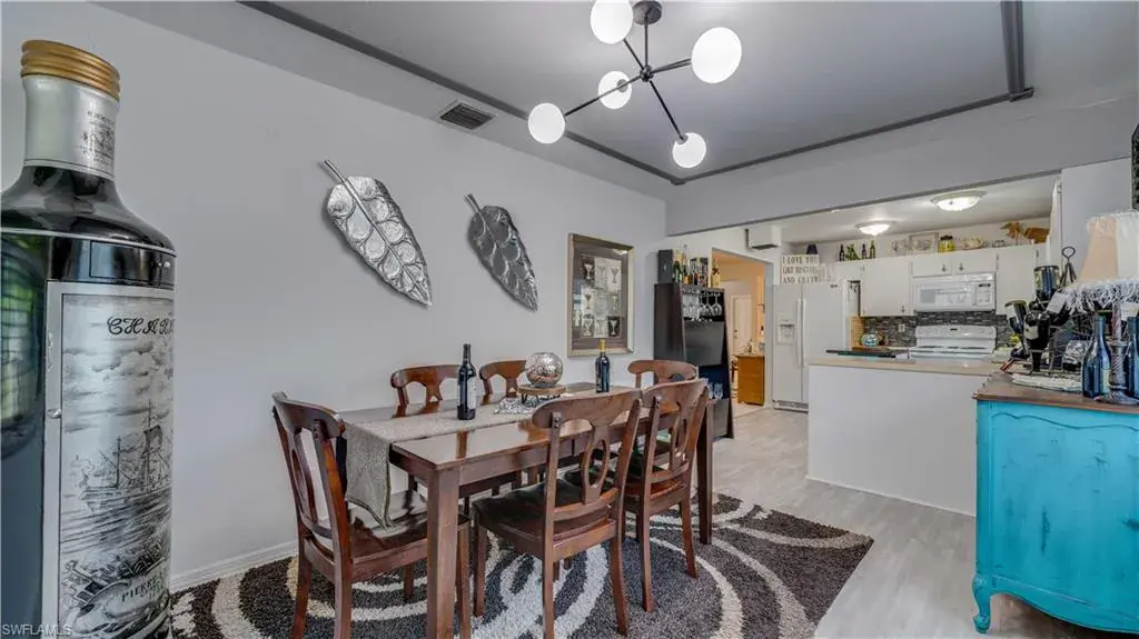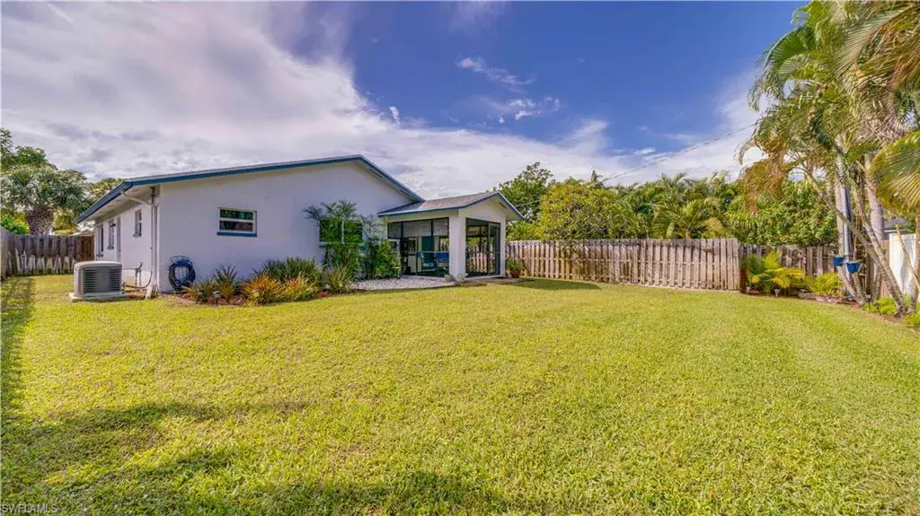 Welcome to this beautifully maintained 2-bedroom, 2-bath home in the highly desirable Naples Park community, located just minutes from Vanderbilt Beach, Mercato, and Wiggins Pass State Park. Offering just under 1,400 square feet of living space, this property combines coastal charm with modern upgrades and an unbeatable location. From the moment you arrive, you’ll notice the oversized double driveway, screened front entry, and fully fenced yard, providing privacy and curb appeal. Inside, the home is filled with natural light, volume ceilings, and a welcoming open layout that’s perfect for everyday living. The living area flows seamlessly into the kitchen and dining spaces, offering tile and laminate flooring throughout for easy maintenance. The primary suite features a large walk-in closet and a private bath with a shower/tub combination, while the guest bedroom and bathroom are smartly separated by a pocket door for extra privacy. The screened-in lanai overlooks the spacious backyard—complete with room for a pool—making it ideal for relaxing or entertaining.
