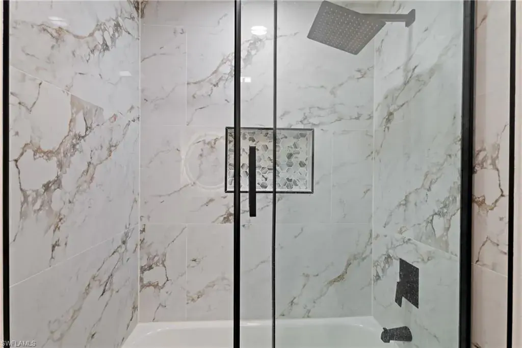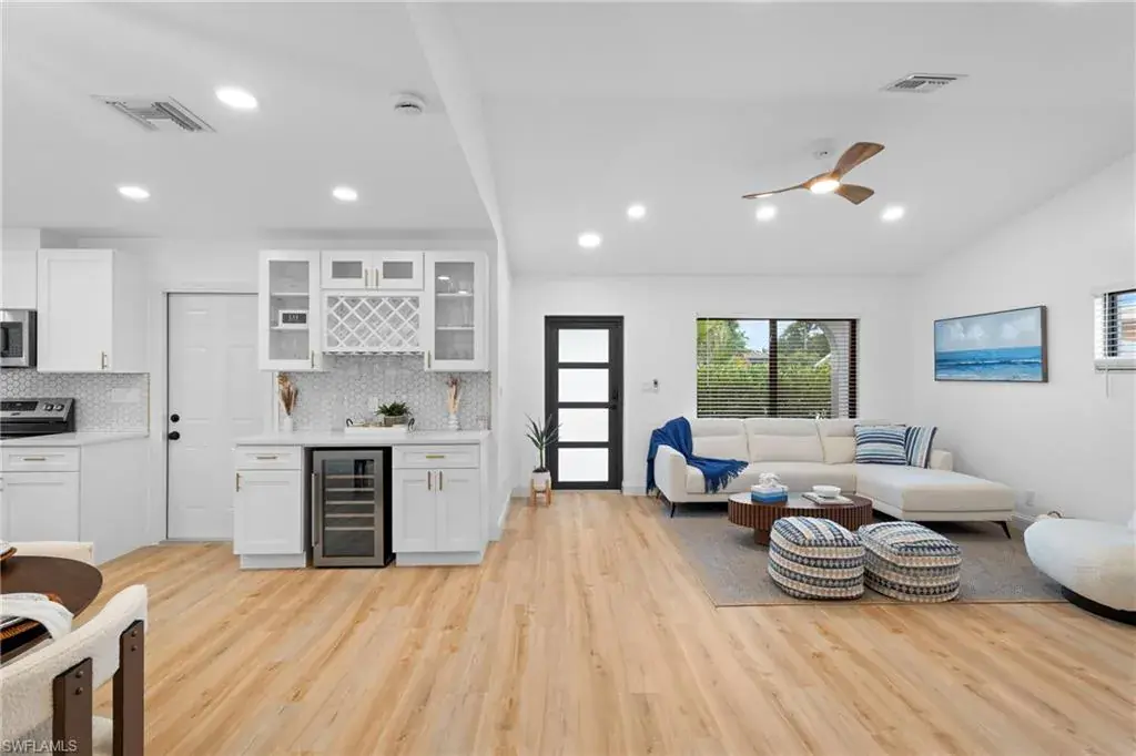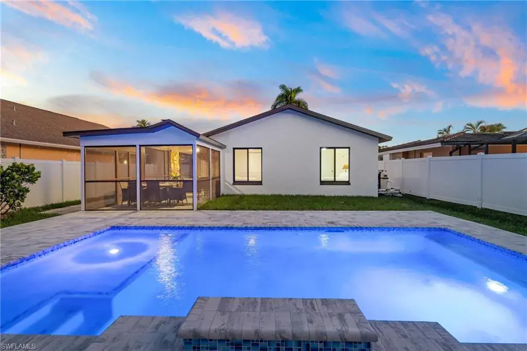 FULLY RENOVATED and FULLY FURNISHED with a BRAND-NEW SALTWATER POOL in the heart of Naples Park. This stunning 3-bedroom 2-bath home with ES IMPACT WINDOWS AND DOORS offers a perfect blend of luxury, comfort, and sophistication. You’ll find upgrades galore within this great room floor plan with vaulted ceilings including a brand-new kitchen with quartz countertops, luxury vinyl plank flooring, elegant light fixtures, quartz waterfall island, custom cabinetry, stainless steel appliances, a bar with extra storage and wine cooler, and surrounded by designer furnishings and accessories. Fully remodeled bathrooms are equipped with custom vanities with quartz tops, LED light fixtures, custom shower glass with wall niches; each offering their own unique contemporary aesthetics. Be the first to enjoy the brand-new heated saltwater pool with a large sun shelf, light features, and spillover waterfall feature encompassed within a large backyard with new sod and a new vinyl fence. Additional upgrades include, newer roof, new hot water heater, new flat top grill, a screened lanai with refinished wood burning fireplace, updated electrical panel, washer/dryer, new oversized impact 2 car garage door, and contemporary exterior lights. This home is ready for immediate occupancy for either full-time residents, seasonal residents, or a savvy investor looking for immediate cash flow. 731 102nd Ave is HIGH AND DRY and flood insurance is not required. The home is also centrally located to all that Naples has to offer and is also within walking distance of the white sugar sand beaches at Vanderbilt beach and Wiggins Pass, Mercato for shopping and dining, the Ritz Carlton, & La Playa beach resorts, and dozens of restaurants and entertainment venues.