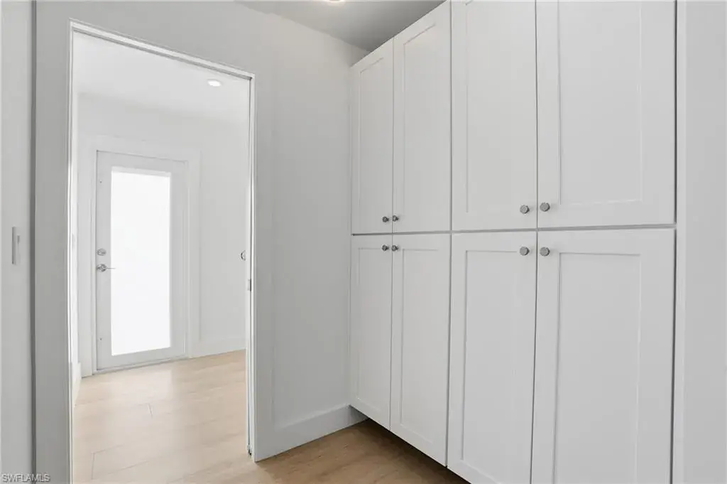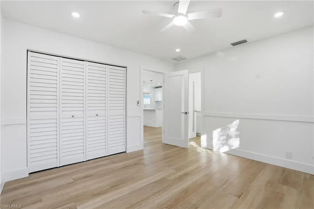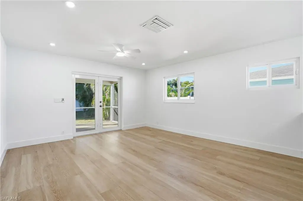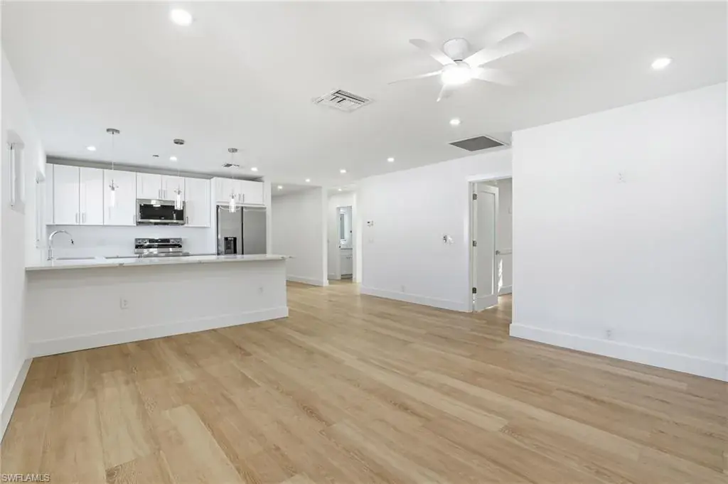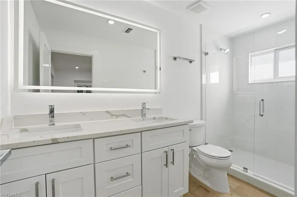 Nestled in the highly sought after neighborhood of Naples Park, this home pairs a prime location with effortless everyday living. With no HOA, enjoy lower monthly costs and greater flexibility for landscaping, parking, and excellent rental income potential. This home offers strong curb appeal, blending new and mature landscaping, while offering complete privacy from your neighbors. Step inside the beautifully remodeled 1,500 sq ft open concept home where thoughtful upgrades meet effortless style. All new electrical wiring and panel complement new plumbing in the bathrooms and kitchen, and light modern 10″ x 70″ tile visually expands the living spaces. The kitchen is a chef’s daydream with quartz countertops, stainless steel appliances, dovetailed drawers, and a special nook of built in cabinets that keep pantry clutter out of sight. Solid core interior doors, impact windows and doors, and a privacy glass front door as well as side door all deliver lasting quality and peace of mind. Relax in the serene primary bedroom that boasts an elegant ensuite with dual sinks, quartz countertop, and tempered 3/8″ glass shower doors, then step through French doors of this bedroom onto a generous screened lanai — or slip outside from the great room French doors for easy indoor outdoor living. Practical touches elevate daily life: a laundry room with its own private exterior entrance as well as interior, wafer adjustable lighting and modern ceiling fans in every bedroom and the great room. The backyard is fully fenced with dual side gates and sits on a generous lot with ample space to add a pool, making this home a perfect blend of modern convenience, thoughtful design, and relaxed Florida living. With a brand-new roof installed in 2025 as well as a new water heater, this home offers true peace of mind and is just a two-mile bike ride or walk to the beach, with shopping, dining, and the Mercato all within five minutes from this exceptional property.