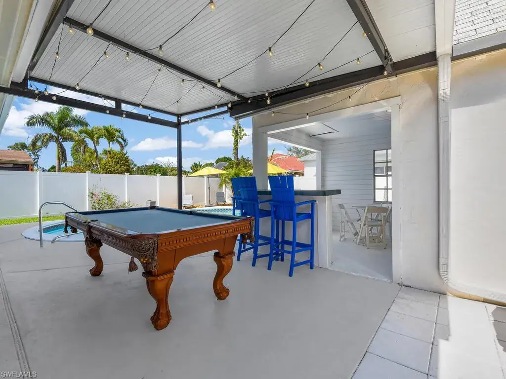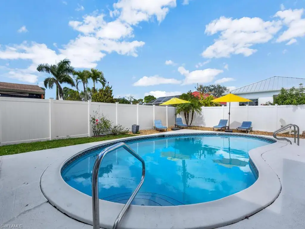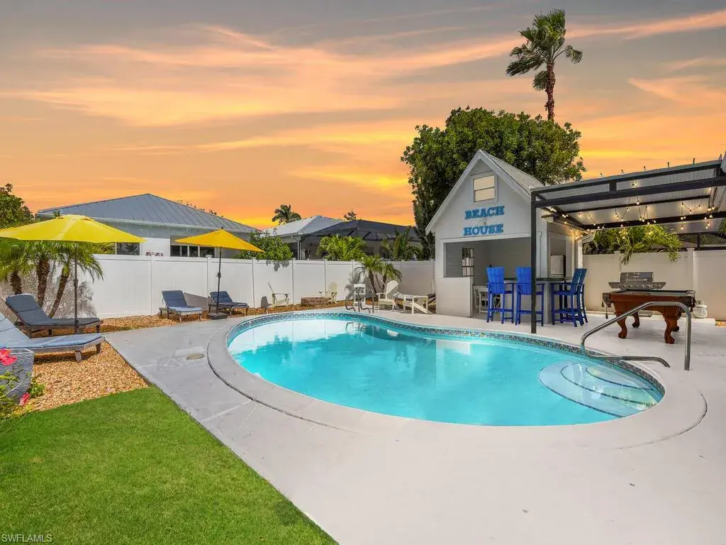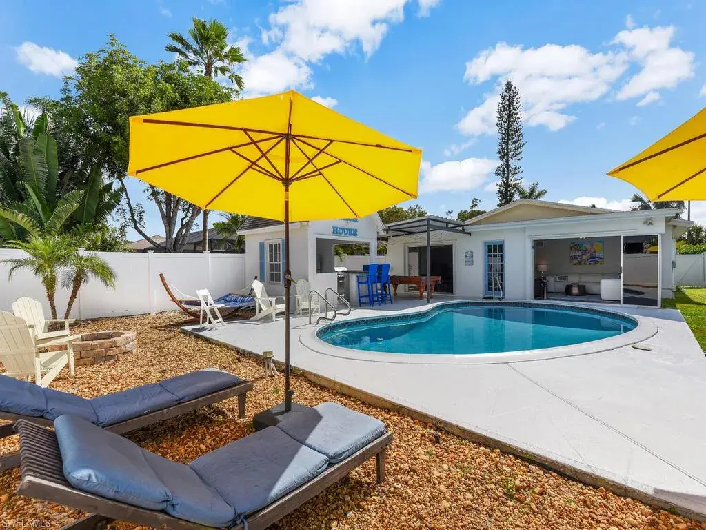 Beautiful single family home (NO FLOOD DAMAGE) and has 3 bedroom + a den/flex room & a pool in Naples Park that features a BRAND NEW ROOF 2024 (160 mph rated shingles), NEW pool pump/heater in 2024, NEW plumbing throughout in 2023, A/C replaced in 2017, new white privacy fence enclosing the entire rear area of the home along with the custom built poolside cabana w/ new a granite counter top & the heated pool creates a private resort style vacation setting. Naples Park is one of the most desired areas Naples due to it being minutes from the beach, short drive to the world famous 5th Ave district, and for the seaside artistic atmosphere in the non-gated neighborhood. INCOME POTENTIAL! This home currently brings in over $50k seasonally income each year.