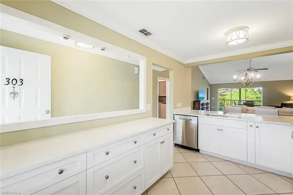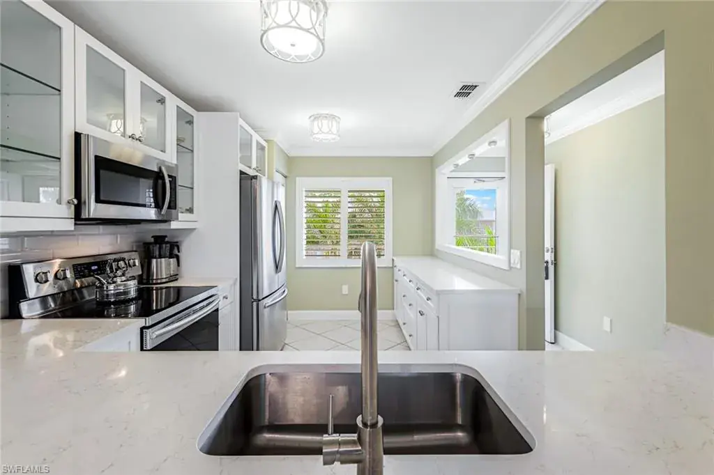 This 3rd floor condo is one of just a few with an expanded living area of an extra 100 sq. ft. along with vaulted ceiling. The coastal contemporary finishes include remastered kitchen with raised panel cabinetry, quartz, subway tile backsplash, Samsung appliances, plantation shutters, and ceramic tile flooring throughout. This condo is priced to sell!! Naples Sandpiper Bay Club offers 2 pools, outdoor grilling, active social schedule, and relatively pet friendly. You cannot get this close to Old Naples shops, dining and the beach for the money …and The Sunsets are Free!