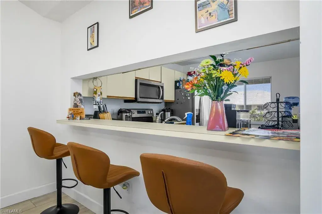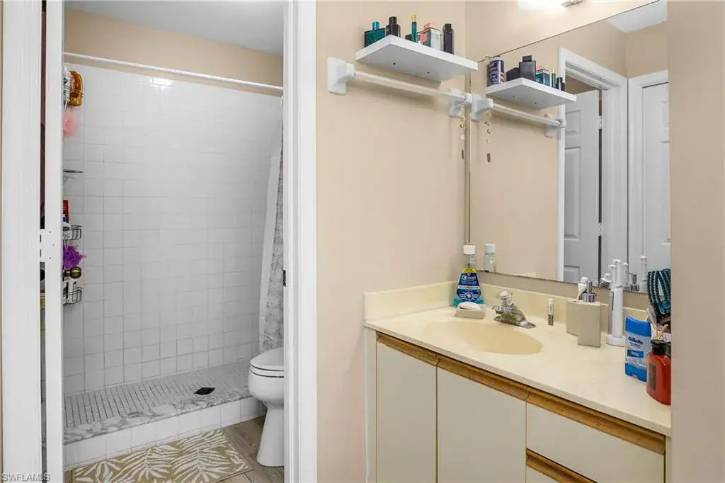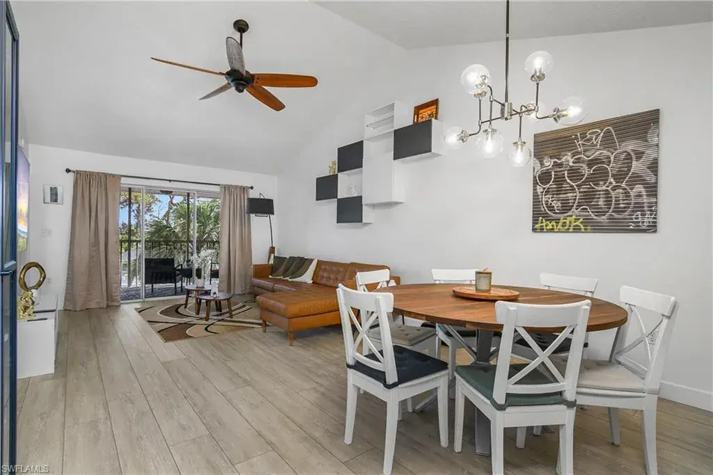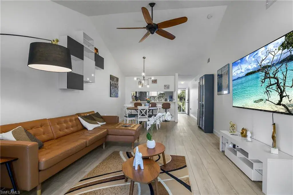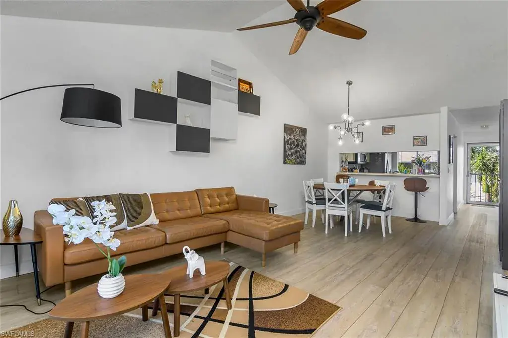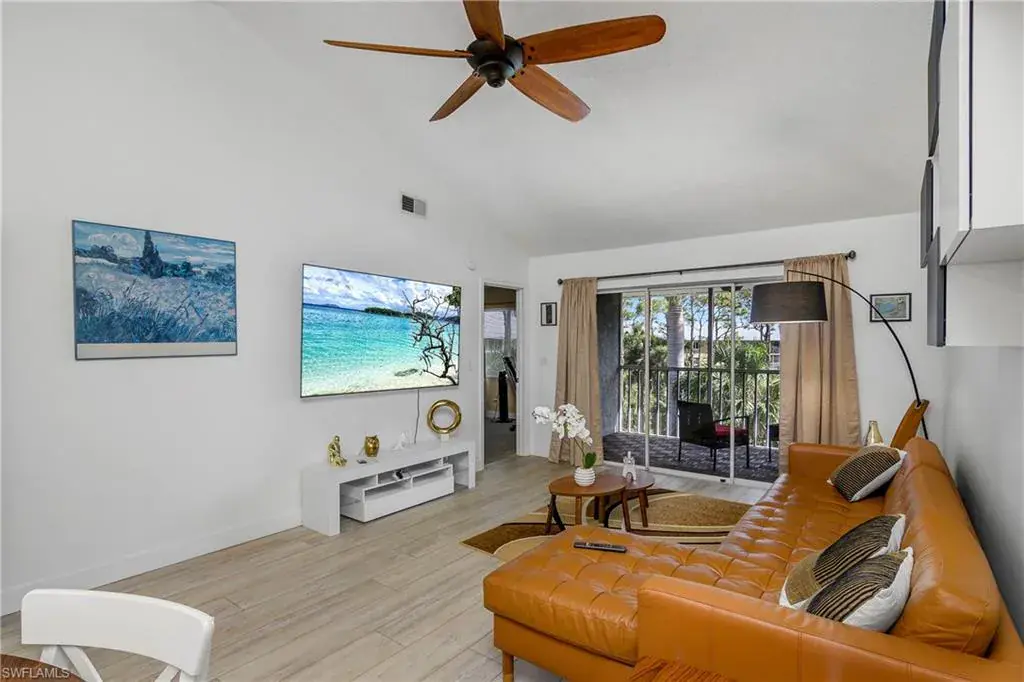 This top floor, end unit condo is located in one of Naples premier waterfront communities. This 2 bedroom, 2 full bath condo is well maintained and because its a top floor unit it has high vaulted ceilings for a large open feeling along with a amazing amount of natural light through out. Additional features of this property include all stainless steel appliances, updated fixtures, full size in-unit laundry room with room for additional storage. The master bedroom includes an ensuite bathroom and an over sized WALK-IN closet, while the second bedroom is equally well-appointed with easy access to the second full bathroom. The tiled, screened lanai overlooks the community pool with just enough landscape to provide shade and privacy. Naples Sandpiper Bay Club is a secluded community along Haldeman Creek that offers 13 acres of beautifully landscaped grounds, plenty of parking, 2 swimming pools, a clubhouse, social activities, outdoor deck with BBQ area with tables for outdoor dining with convenient onsite management. This condo offers the best of South West Florida living, situated in a prime location, with easy access just minutes from all that Naples has to offer. Whether you’re looking to explore the 5th Ave. downtown area, indulge in the local cuisine, or soak up the sun on the beautiful beaches this really is the perfect condo in every way.