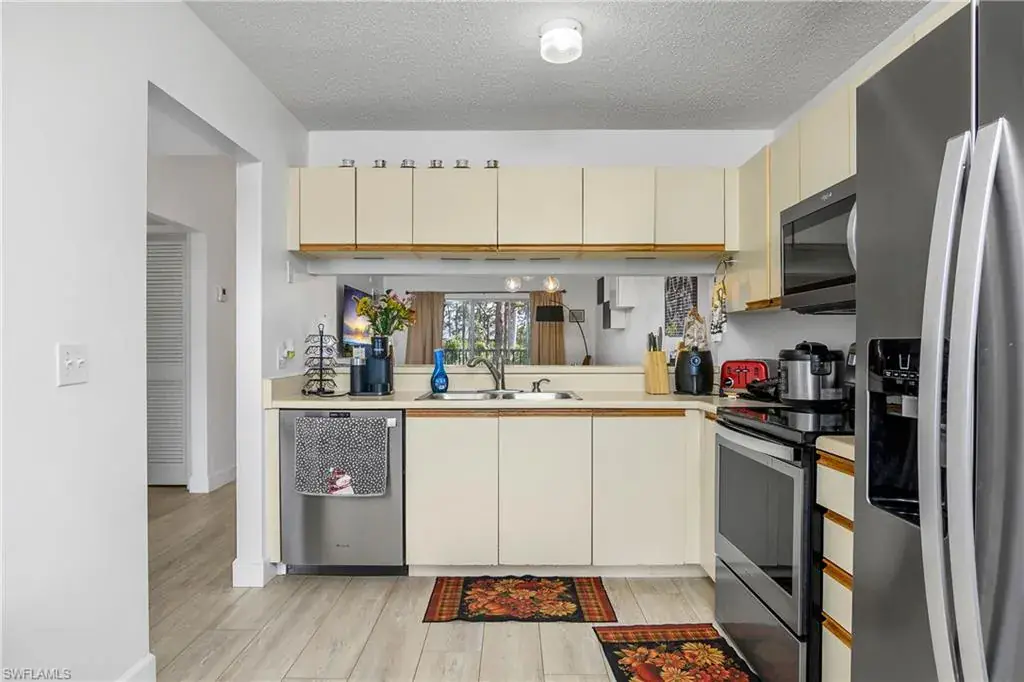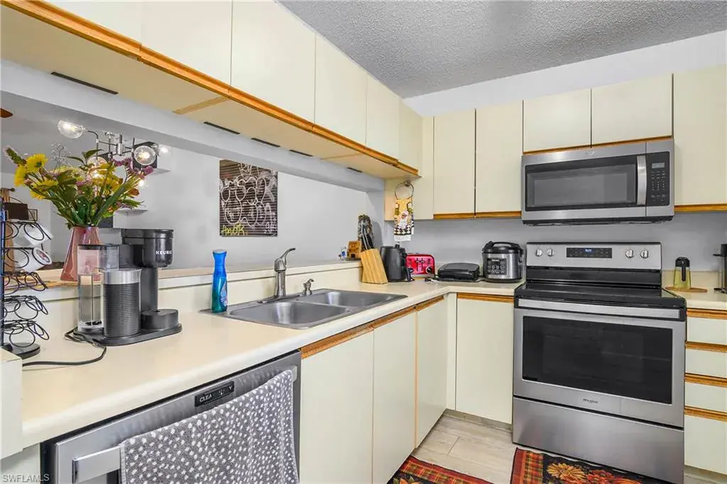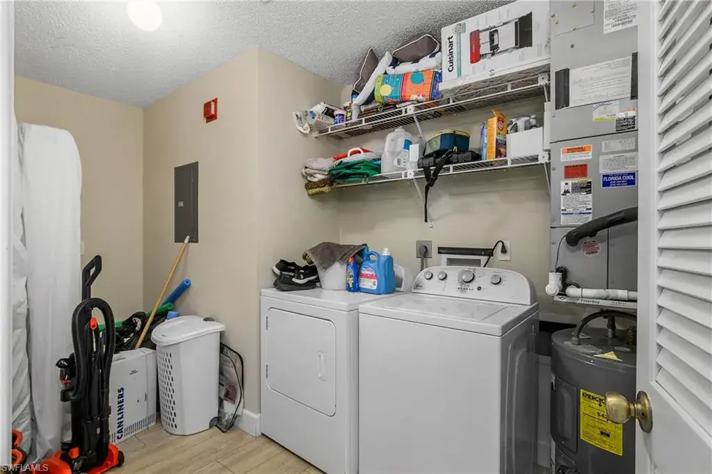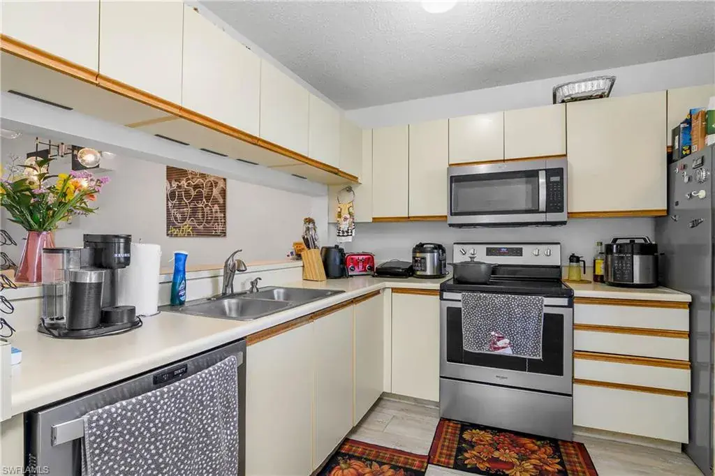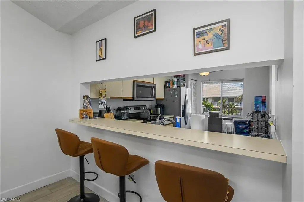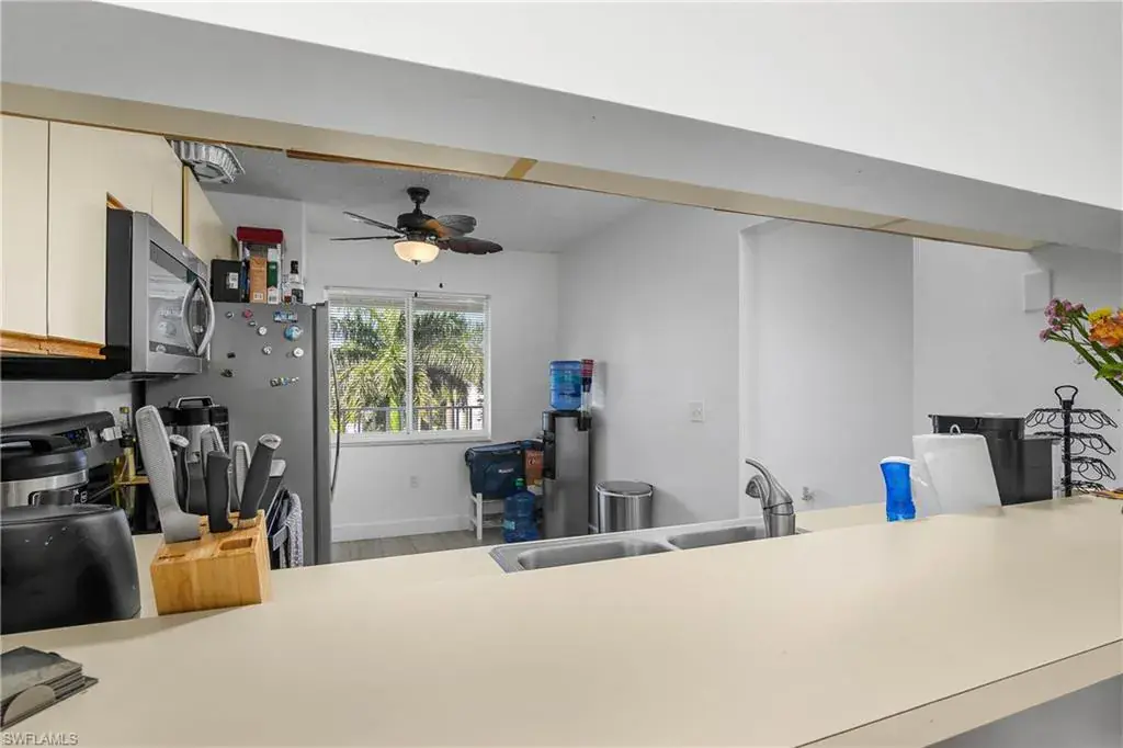 This top floor, end unit condo is located in one of Naples premier waterfront communities. This 2 bedroom, 2 full bath condo is well maintained and because its a top floor unit it has high vaulted ceilings for a large open feeling along with a amazing amount of natural light through out. Additional features of this property include all stainless steel appliances, updated fixtures, full size in-unit laundry room with room for additional storage. The master bedroom includes an ensuite bathroom and an over sized WALK-IN closet, while the second bedroom is equally well-appointed with easy access to the second full bathroom. The tiled, screened lanai overlooks the community pool with just enough landscape to provide shade and privacy. Naples Sandpiper Bay Club is a secluded community along Haldeman Creek that offers 13 acres of beautifully landscaped grounds, plenty of parking, 2 swimming pools, a clubhouse, social activities, outdoor deck with BBQ area with tables for outdoor dining with convenient onsite management. This condo offers the best of South West Florida living, situated in a prime location, with easy access just minutes from all that Naples has to offer. Whether you’re looking to explore the 5th Ave. downtown area, indulge in the local cuisine, or soak up the sun on the beautiful beaches this really is the perfect condo in every way.