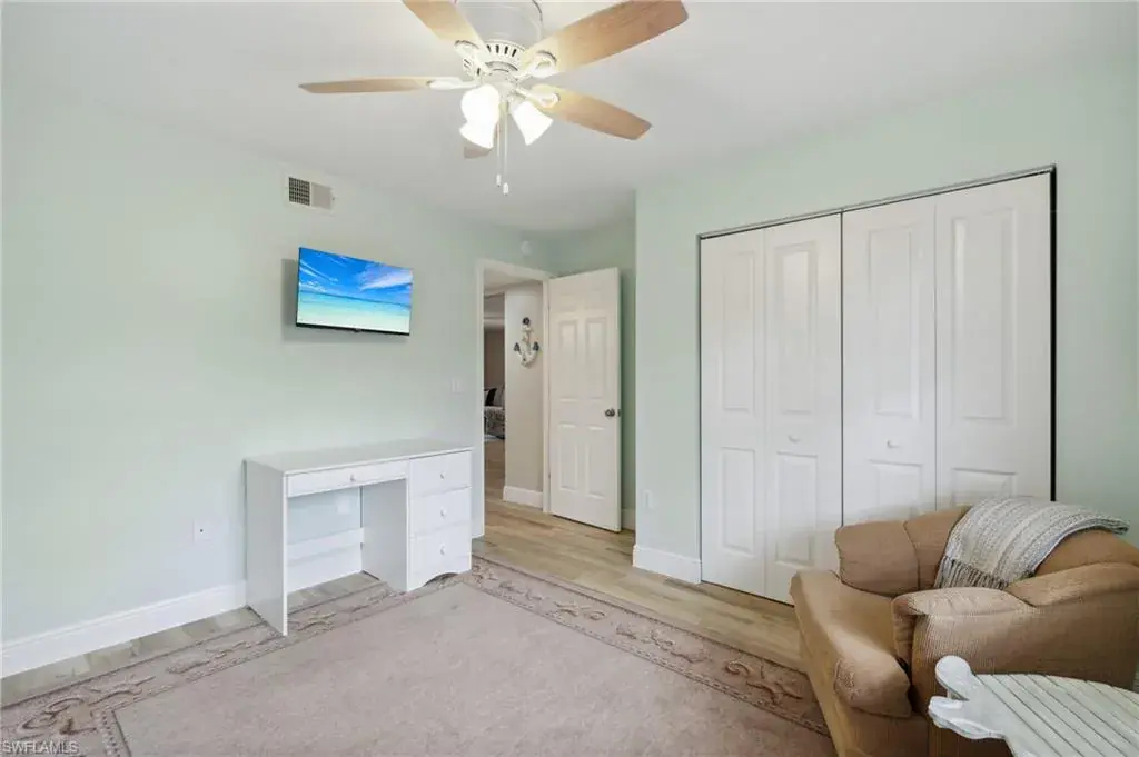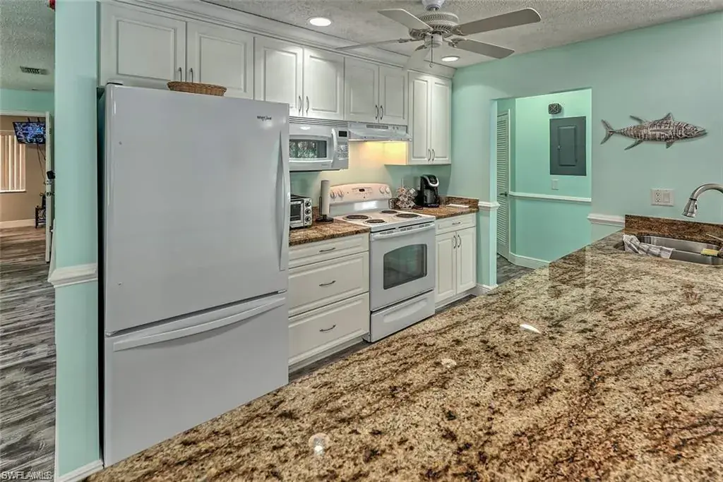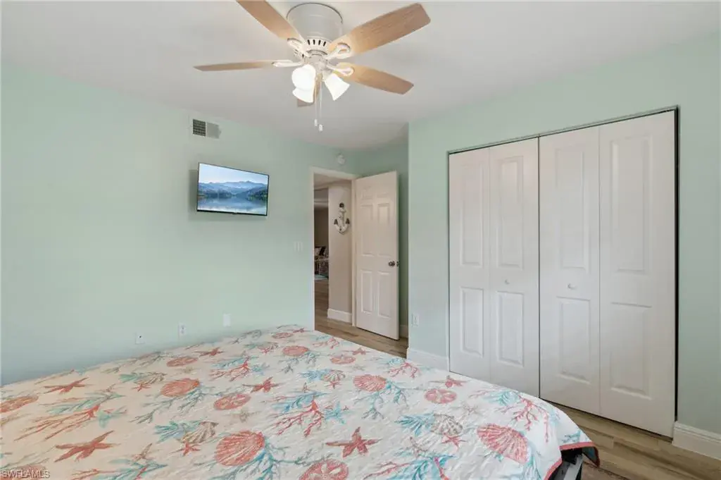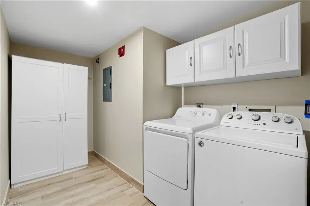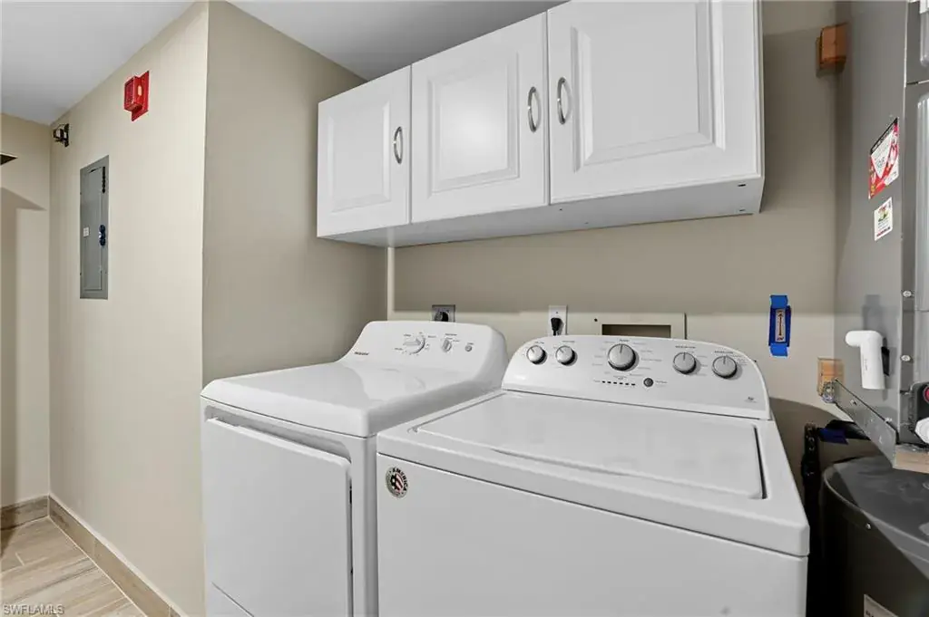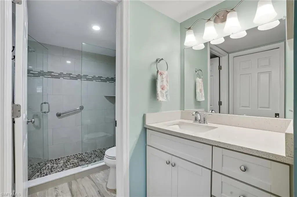 FULLY RENOVATED, move-in ready condo with open concept. Furnished (negotiable). Kitchen features quartz counter-top, breakfast bar (seating for 4) plus an island. NEW driftwood tile floors throughout (including the lanai) installed with 5 inch baseboards. All the popcorn ceilings are gone, and the entire unit has been painted, including ALL trim, baseboards and 6 panel doors. ALL NEW recessed lighting, complete electric update, 2021 A/C and Water Heater. The Guest bedroom boasts a new King size Murphy bed allowing this space to double as Guest Bedroom or Home Office/Den. NEW closet doors, screen door, ceiling fans, appliances, and priceless lanai sunsets. This charming condo is conveniently located next to the quiet elevator, which adds 4 feet and makes the living room and the lanai 4 feet wider than other units. 2 pools with restrooms and recently expanded deck areas, a clubhouse available for private functions with full-time on-site manager, multiple outdoor grill and BBQ areas and dock purchase and lease opportunities. The community was freshly painted and re-paved in spring 2025, with no assessments. This location, just 1.4 miles from 5th Ave, Naples Pier, and sandy beaches, makes Sandpiper Bay Club a “hidden gem”.