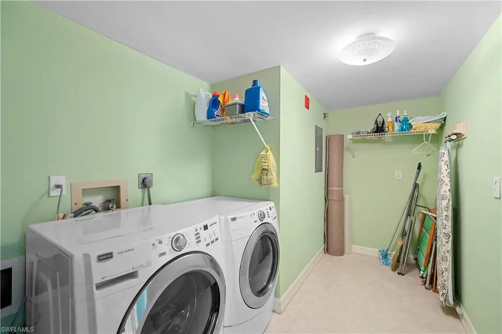 Florida Oasis on 13 acres of beautifully landscaped grounds in the heart of Naples! Immaculate 2 bedroom/2 bath turn key, end unit condo just 1.5 miles away from world class beaches, dining, restaurants and shopping on 5th Ave. S. This well maintained, spacious condo is situated on one of the highest points in Naples and DID NOT FLOOD! It offers Gulf Access via boat docks that can be leased or purchased, when available. Look out over the beautiful preserve and clubhouse from your 2nd floor, southern exposure screened in lanai. The open kitchen offers stainless steel appliances, granite countertops and new white cabinets with plenty of storage. More storage space is available in the EXTRA LARGE walk-in master closet PLUS the EXTRA LARGE laundry room featuring a new washer & dryer. The condo building is also meticulously maintained and is located close to the clubhouse and resort style pools (there are 2 onsite) just steps away from the newer common elevator and stairs above the covered bike storage area. The Sandpiper Bay Club has easy GULF ACCESS (no bridges) with boat docks that can become available through association transfer. This prestigious community is one of the best deals in town and THIS CONDO IS PRICED TO SELL. True luxury in the heart of everything Naples has to offer. Where lifestyle meets value and convenience–paradise on a dime.