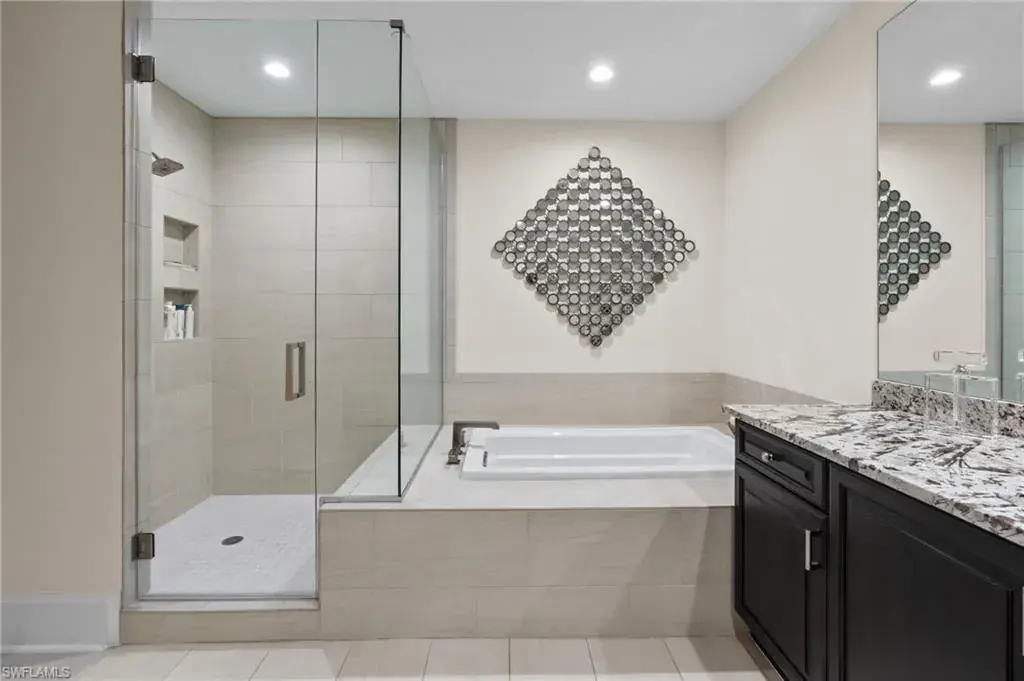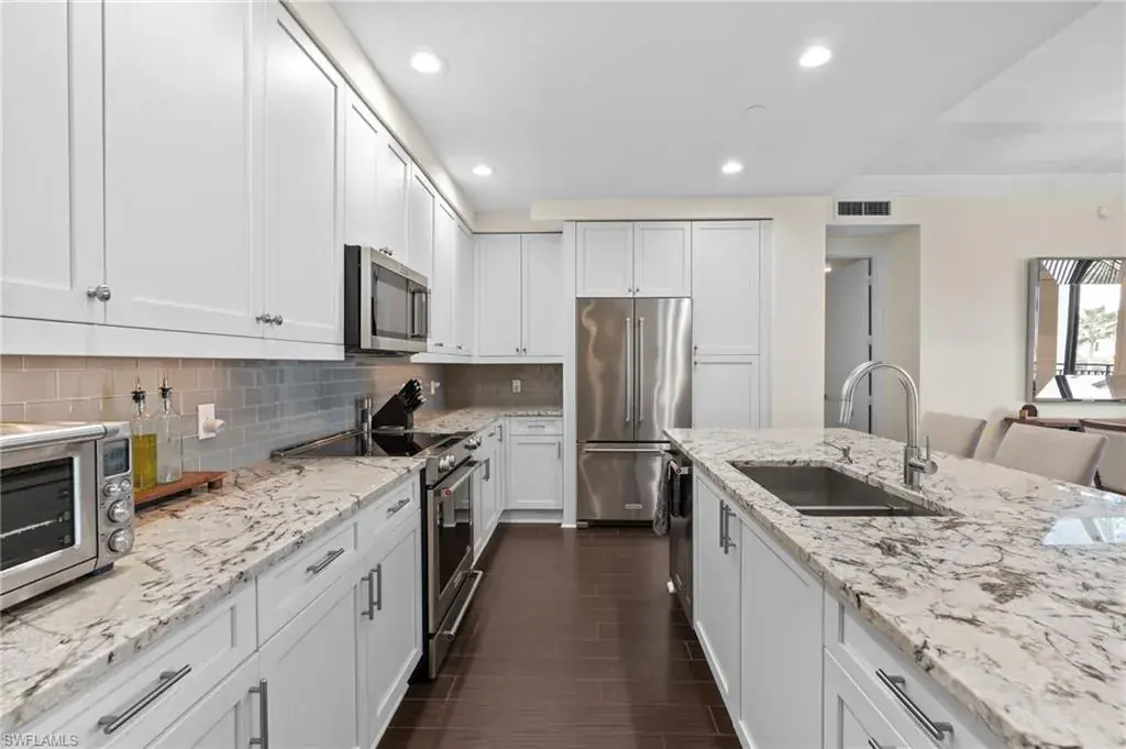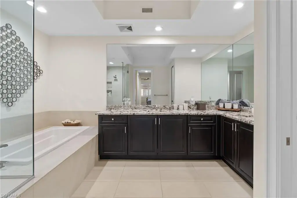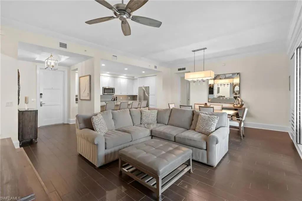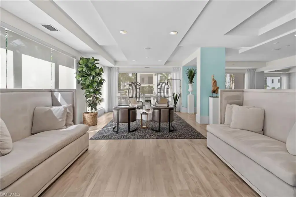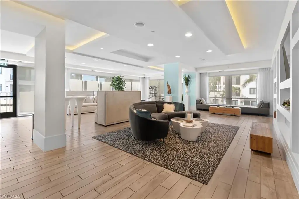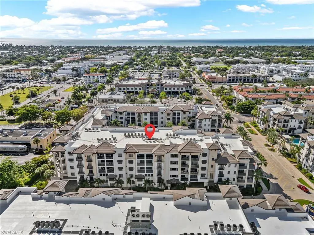 Steps from Naples finest dining, galleries, and Gulf beaches, this elegant Naples Square condo places you in in the center of it all, the heart of the Downtown Design District, this exceptional turnkey-furnished condominium offers a modern take on coastal living. Spanning approximately 1,832 square feet, this two-bedroom plus den, two-and-a-half-bath home showcases refined finishes and a bright, open design. The spacious great room flows effortlessly into a chef-inspired kitchen, with a large island, and entertaining space. Elegant plantation shutters accent every window, adding character and charm. The primary suite provides a private retreat with two custom-designed walk-in closets and a luxurious bathroom featuring dual vanities, a soaking tub, and a separate glass shower. A guest suite with its own private bath ensures comfort and privacy for visitors, while the den can serve as a quiet home office, reading nook, or additional sleeping area. Step outside and experience the best of downtown Naples living—just moments from famous restaurants, boutique shops, art galleries, and the white sandy Gulf beaches. Residents of Naples Square enjoy resort-style amenities, including a sparkling pool and spa within a lush courtyard, a state-of-the-art fitness center, social room, and secure under-building parking with private storage. Perfect for those seeking a full-time Naples home, seasonal, or a high-performing investment property, this residence captures the ultimate blend of luxury, location, and lifestyle. Indulge in the Downtown Naples lifestyle living in this lively walkable/golf cart community!