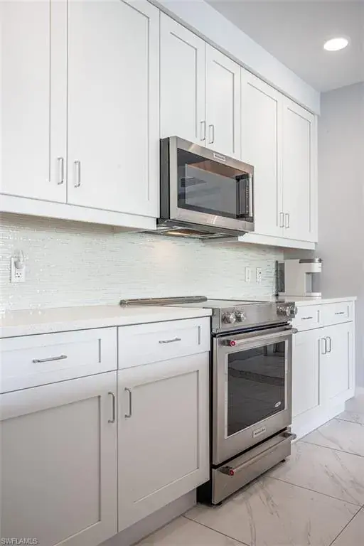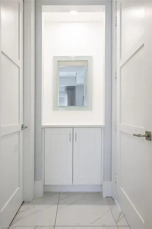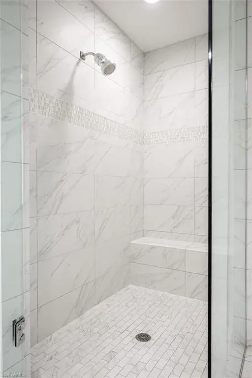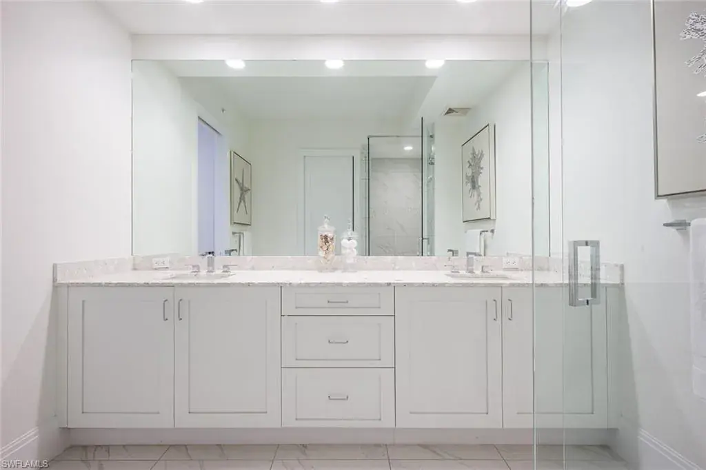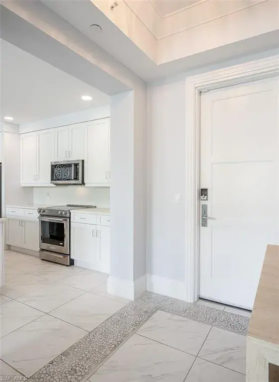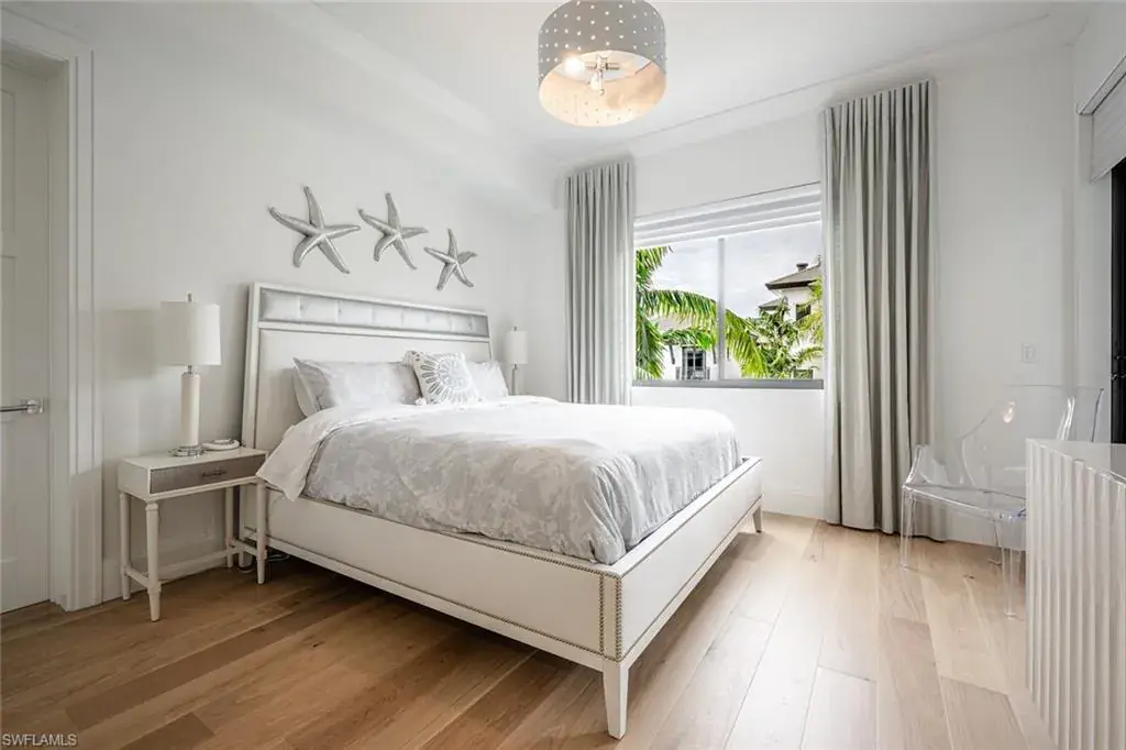 Once a model home, this residence shines with exceptional designer finishes and abundant natural light. Wood flooring in the bedrooms adds warmth and continuity to the open layout, complemented by shiplap-accented walls and custom barn doors that bring a touch of coastal elegance. Every detail reflects refined craftsmanship—from the hand-painted fireplace surround to the custom bath finishes with hand-rolled crystal paint and the den enhanced by sophisticated built-ins. The contemporary kitchen features sleek cabinetry, premium appliances, and modern fixtures—perfect for both entertaining and everyday living. Step out to the spacious lanai and enjoy tranquil courtyard views with lush landscaping, a sparkling pool, spa, and inviting greenspace. Thanks to its desirable western exposure, you can unwind each evening while taking in Naples’ famous sunsets right from your balcony. An attached storage area of approximately 90 square feet adds convenience and functionality to this exceptional offering. With effortless access to Naples’ best attractions—including Bayfront, Tin City, and Baker Park—this residence offers the ideal blend of style, sophistication, and an unbeatable downtown location.