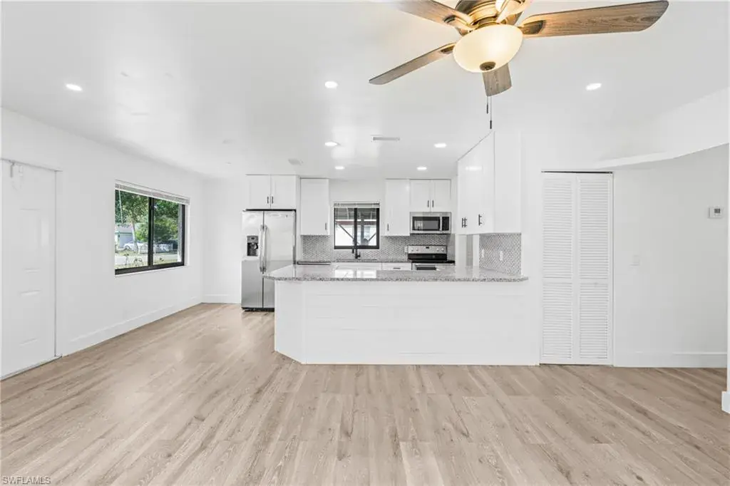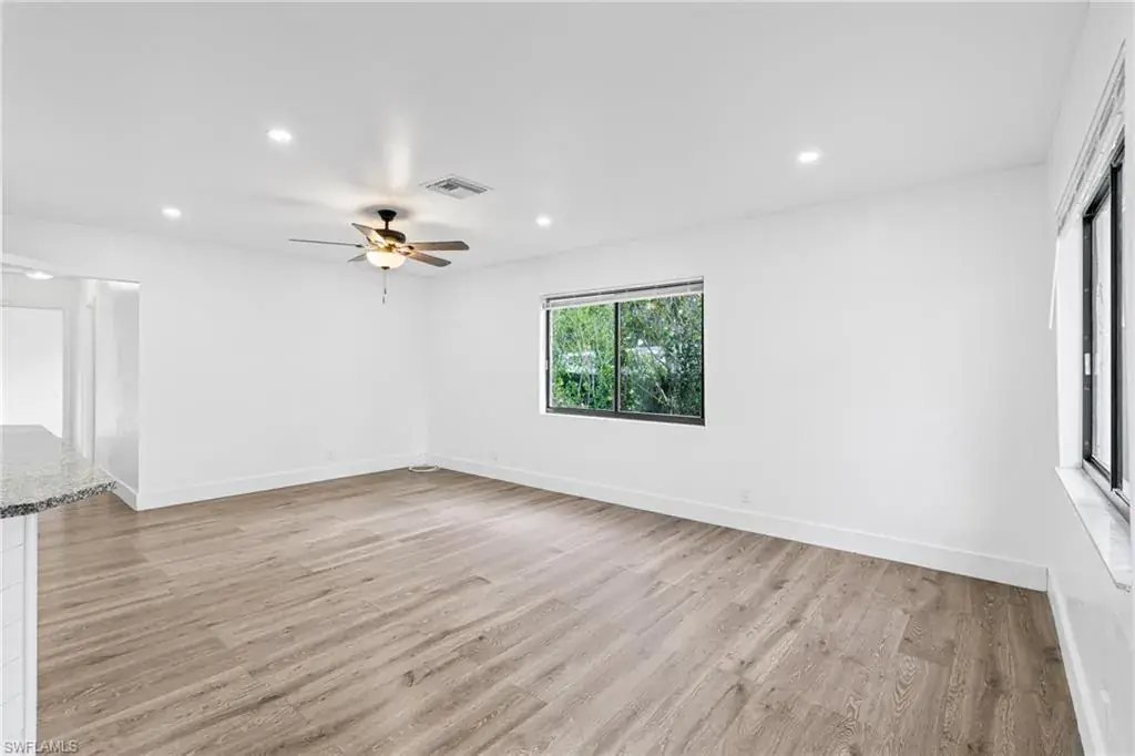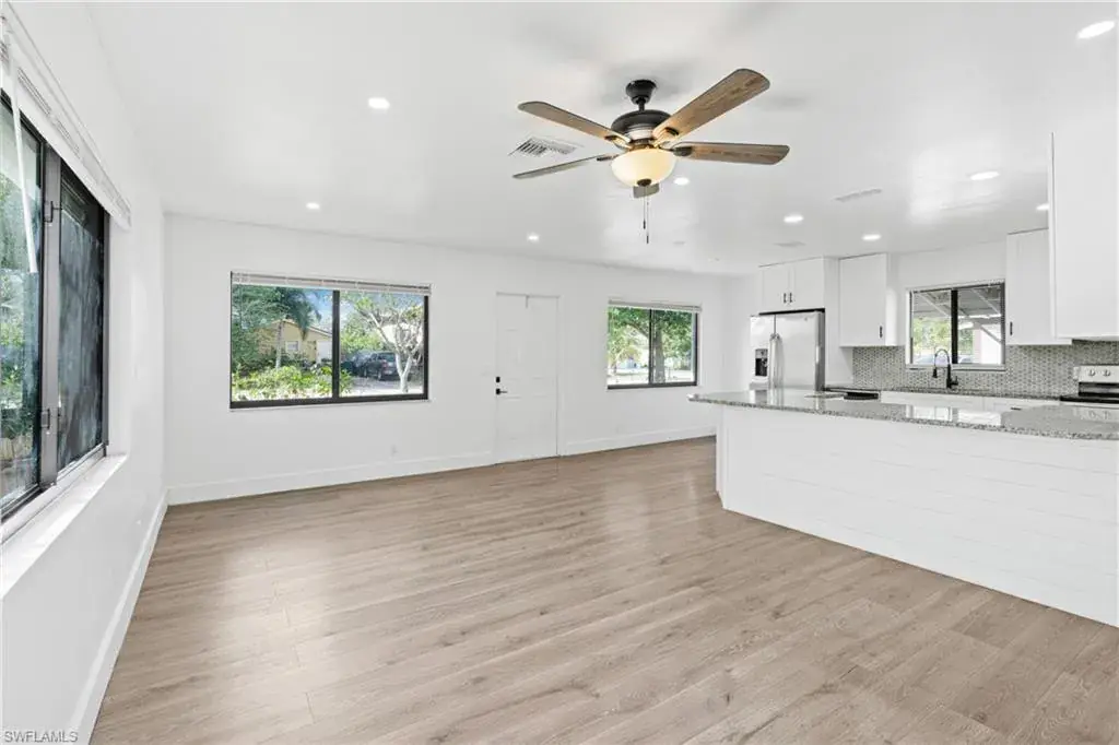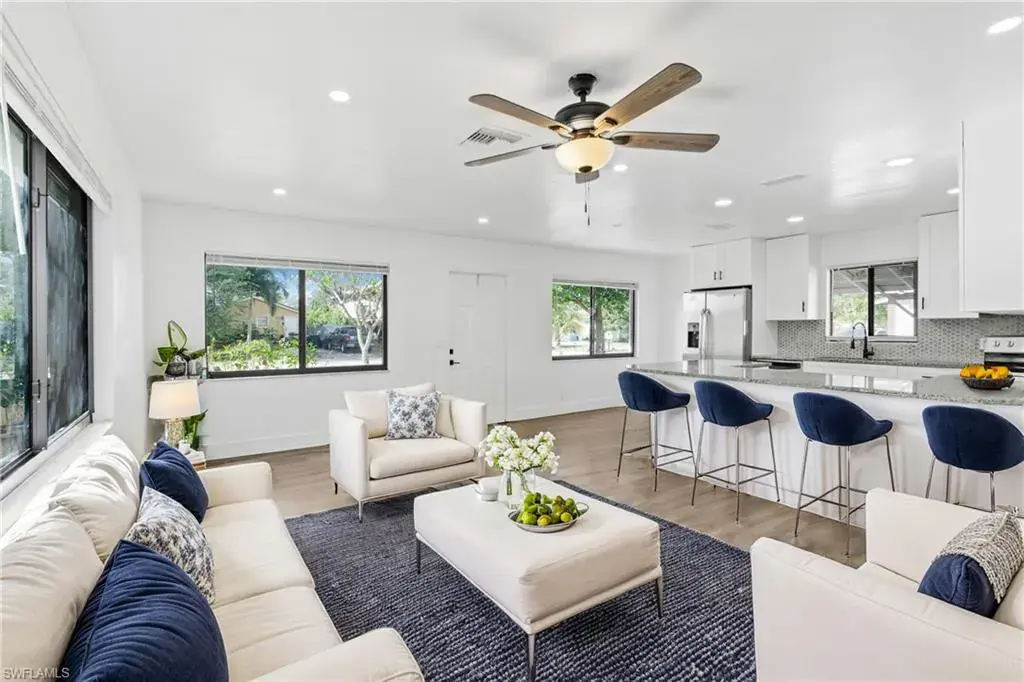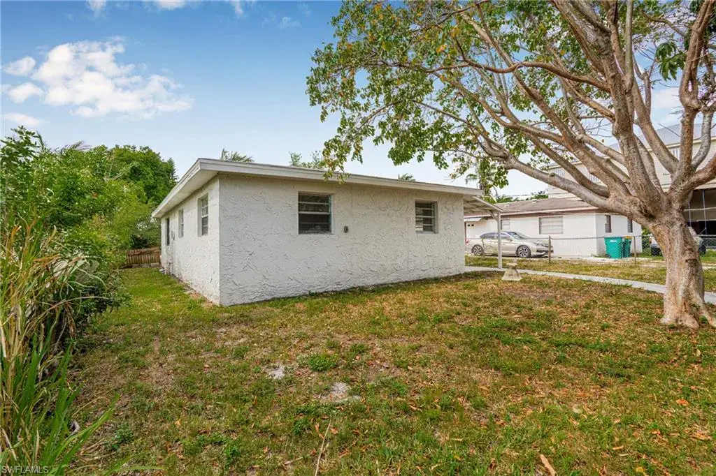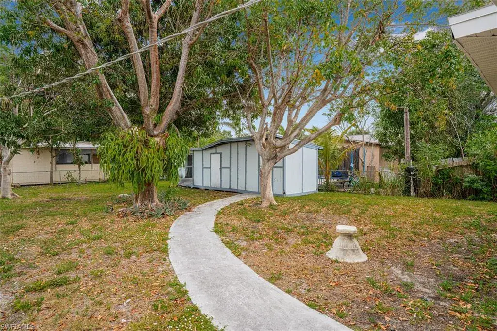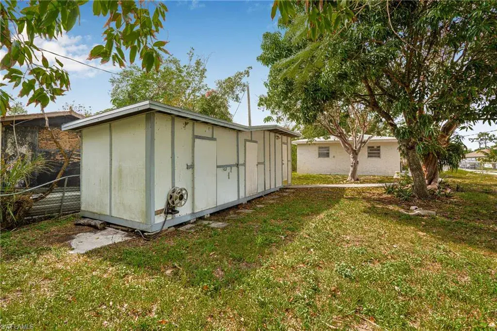 This Gem just 3 miles await from downtown Naples and the beautiful Naples Beach, this well-maintained home offers both convenience and exceptional value. Constructed with solid concrete block, the home features a nearly new roof installed in 2021, ensuring durability and peace of mind. The spacious, fenced backyard provides ample room for outdoor enjoyment, complete with three mature, fruit-producing mango trees and additional shade trees. A large side yard offers enough width to accommodate a trailer, allowing for easy boat storage without occupying driveway space. Additionally, the expansive backyard presents the opportunity to install a canopy for added boat protection or even a swimming pool—without the restrictions of an HOA. Inside, the home boasts a functional and thoughtfully designed layout with three true bedrooms and two bathrooms free of any unusual or unauthorized modifications. For added convenience, the property includes a dedicated workshop with power and two storage sheds, providing plenty of space for tools, equipment, and recreational gear. Set in a welcoming and close knit neighborhood, this home offers an excellent balance of affordability and lifestyle, making it a rare find in Naples. Please note that some photos include virtual staging for visualization purposes.