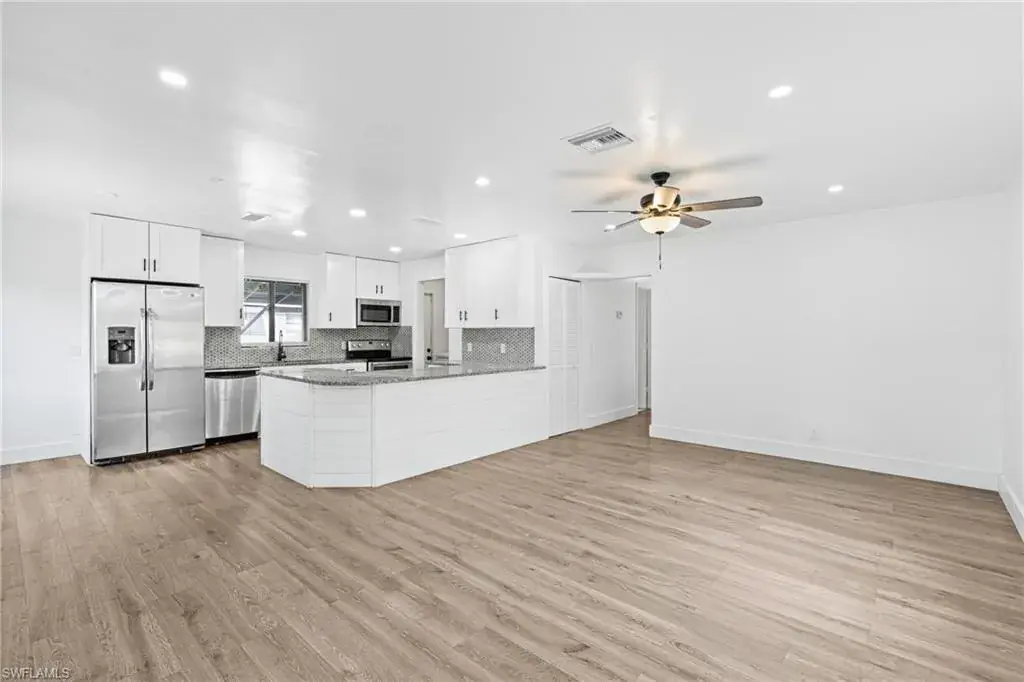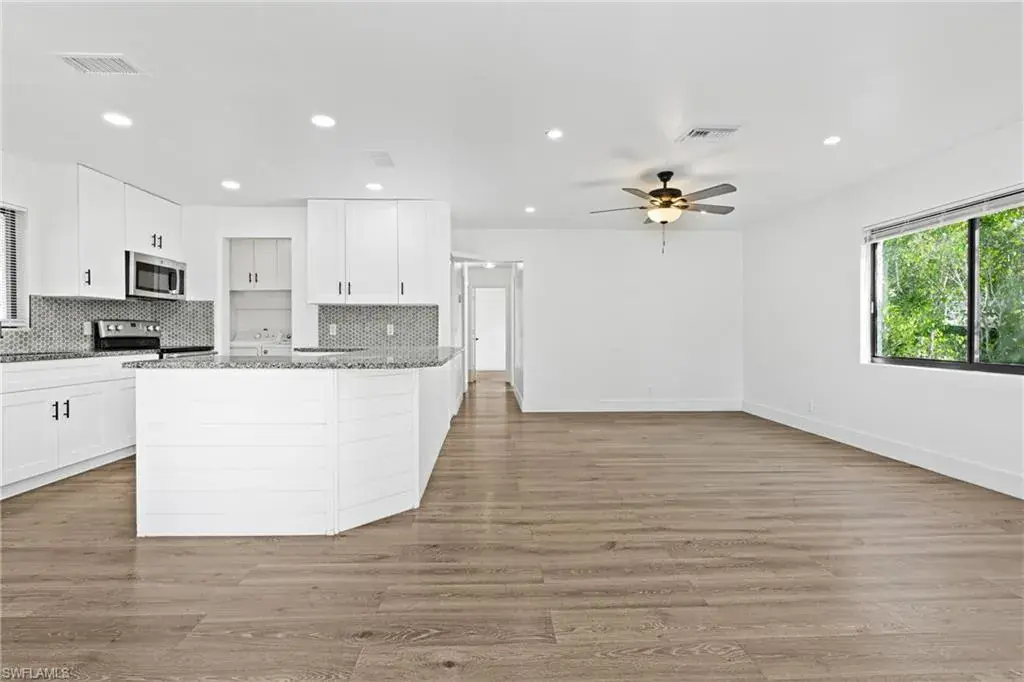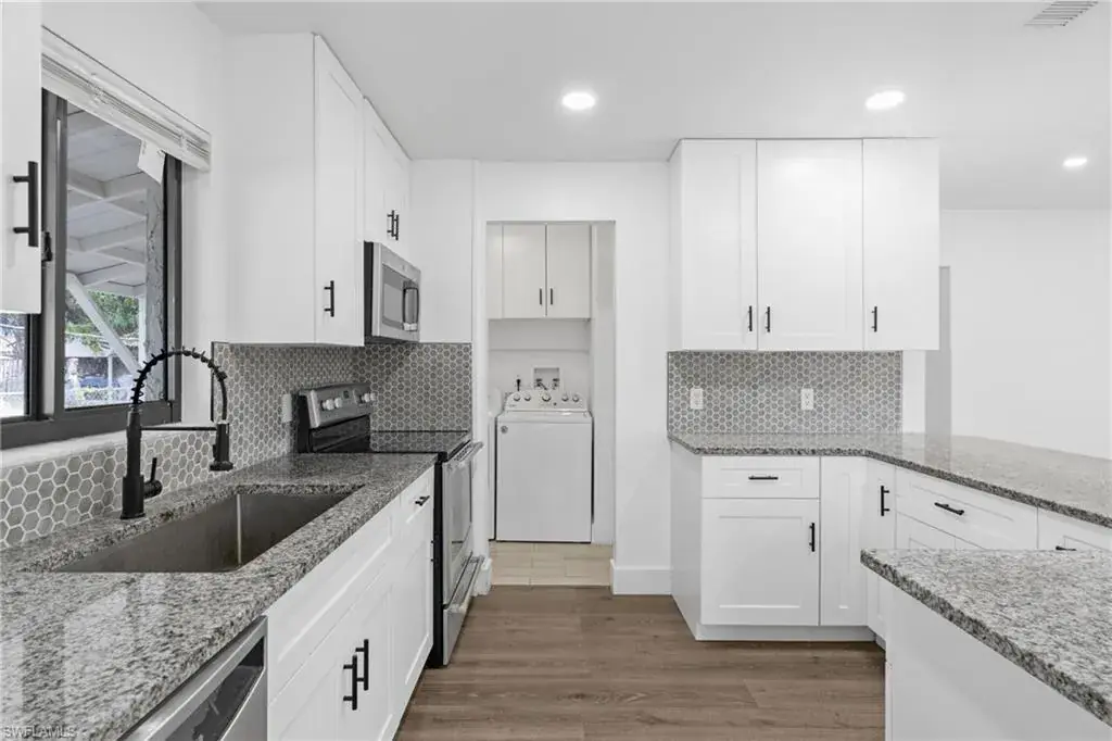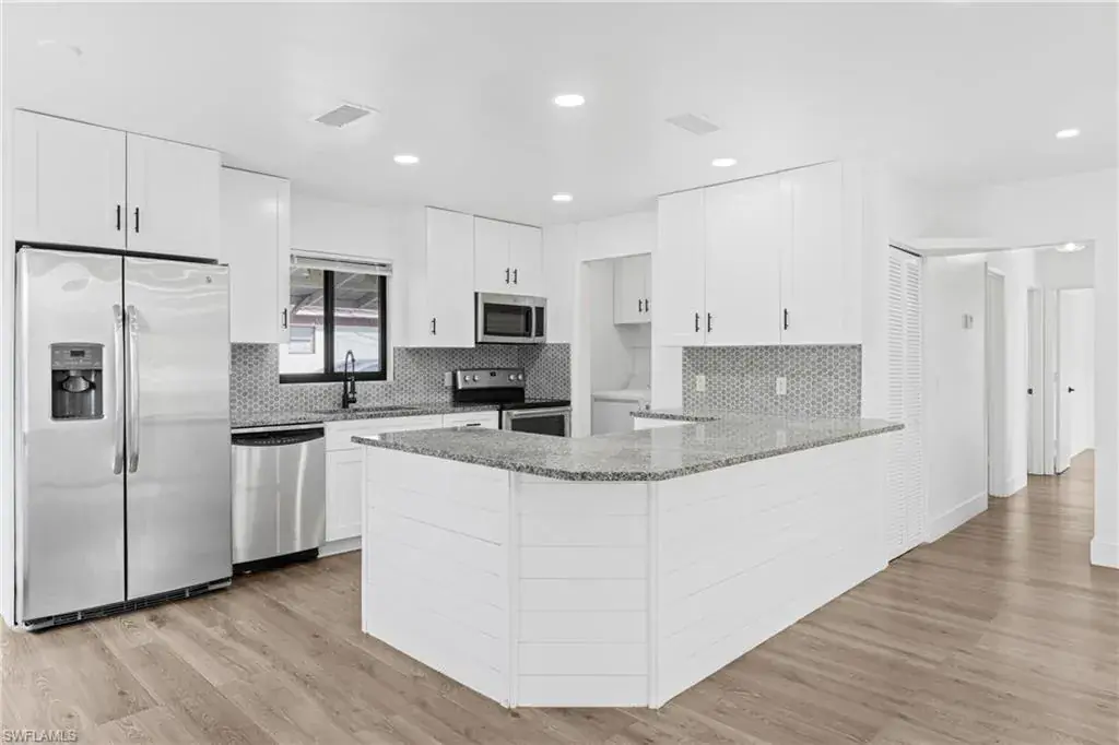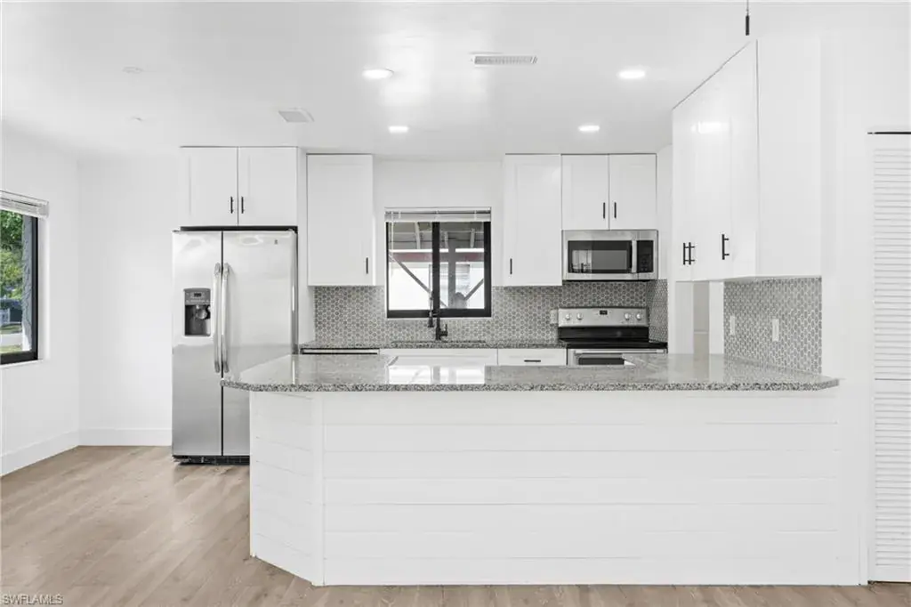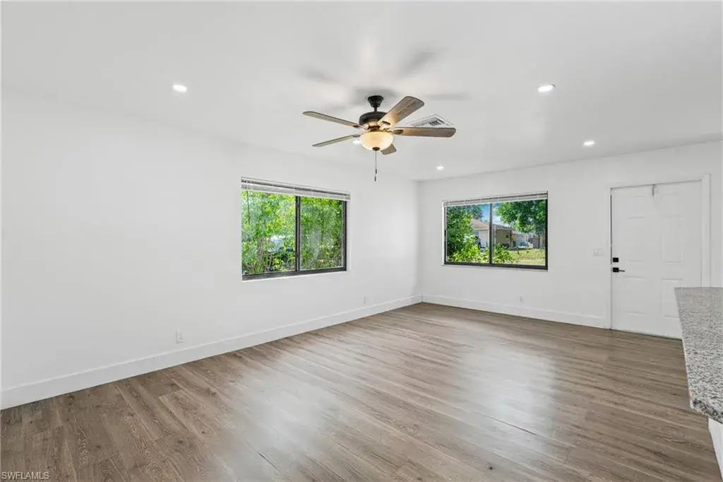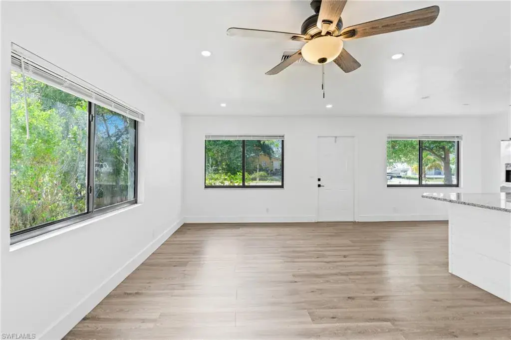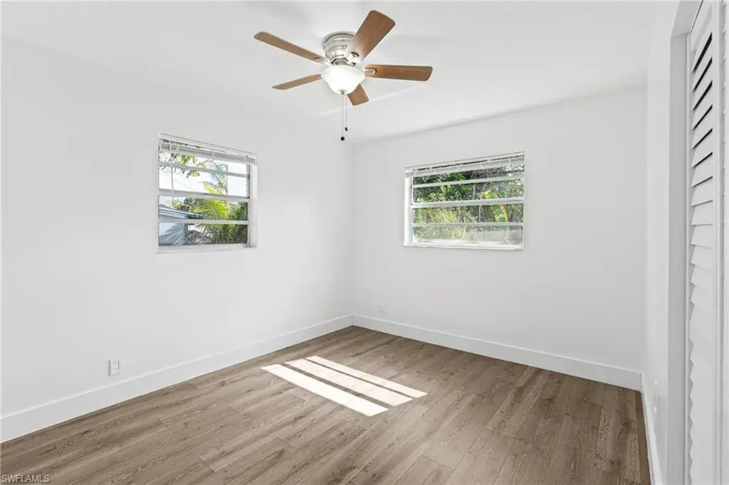 This Gem just 3 miles await from downtown Naples and the beautiful Naples Beach, this well-maintained home offers both convenience and exceptional value. Constructed with solid concrete block, the home features a nearly new roof installed in 2021, ensuring durability and peace of mind. The spacious, fenced backyard provides ample room for outdoor enjoyment, complete with three mature, fruit-producing mango trees and additional shade trees. A large side yard offers enough width to accommodate a trailer, allowing for easy boat storage without occupying driveway space. Additionally, the expansive backyard presents the opportunity to install a canopy for added boat protection or even a swimming pool—without the restrictions of an HOA. Inside, the home boasts a functional and thoughtfully designed layout with three true bedrooms and two bathrooms free of any unusual or unauthorized modifications. For added convenience, the property includes a dedicated workshop with power and two storage sheds, providing plenty of space for tools, equipment, and recreational gear. Set in a welcoming and close knit neighborhood, this home offers an excellent balance of affordability and lifestyle, making it a rare find in Naples. Please note that some photos include virtual staging for visualization purposes.