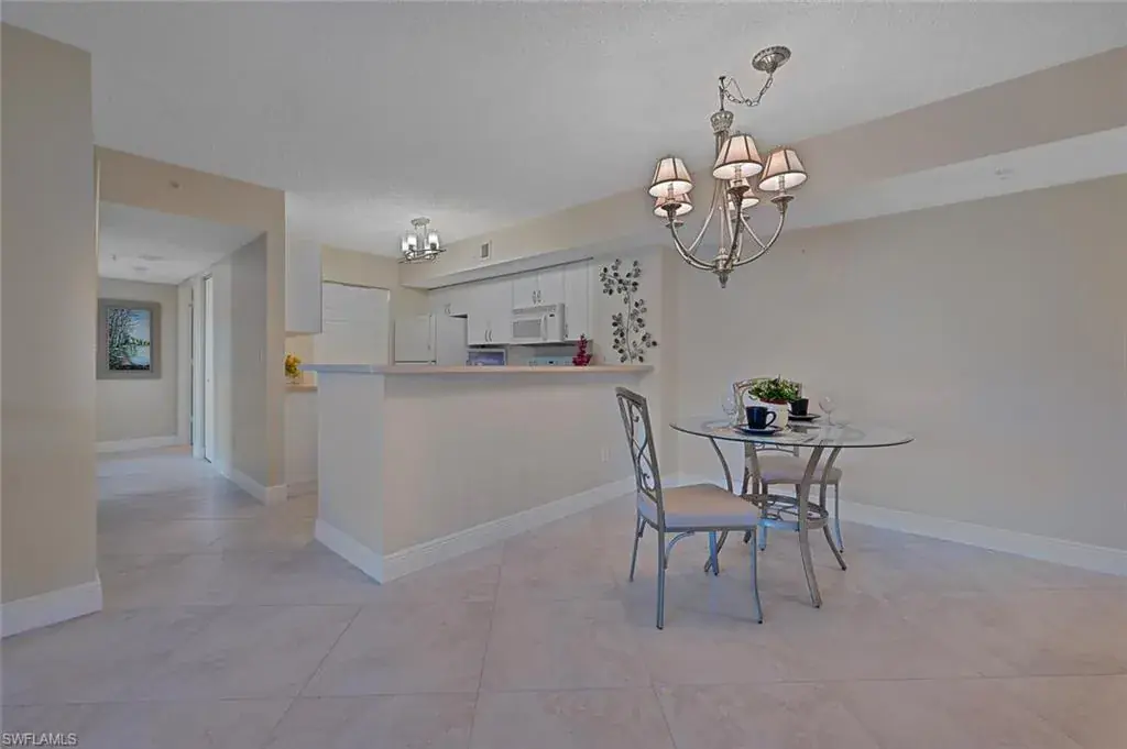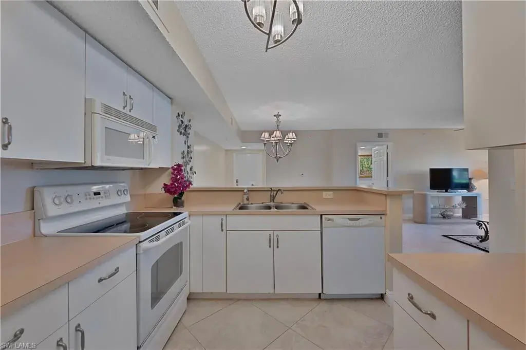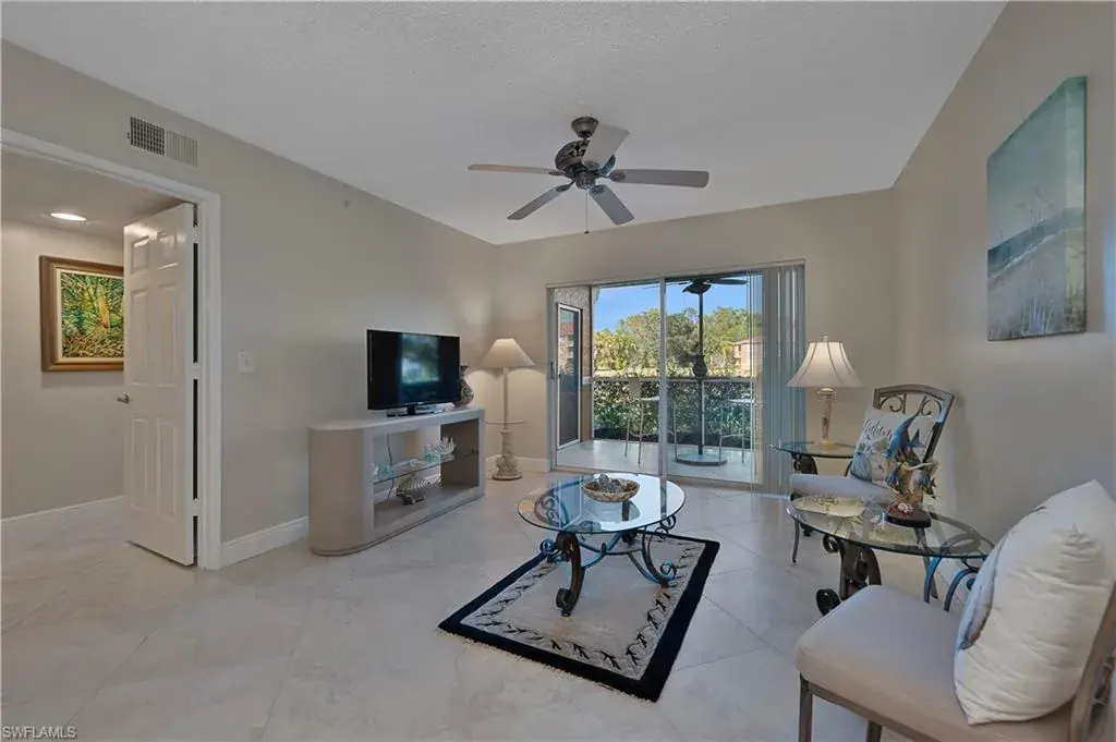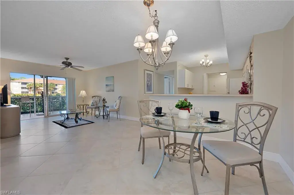 Welcome to Napoli, a resort-style gated community. This charming 3-bedroom, 2-bathroom first-floor end unit offers a peaceful, northerly view of the lake, complete with a tranquil water feature, providing both privacy and serenity. Included with this home is a detached one-car garage. As you enter, you will be welcomed by an abundance of natural light and an open, airy floor plan, enhanced by 23-inch diagonal tile flooring throughout the home. The spacious living area opens directly to a private, screened-in lanai, where you can enjoy scenic lake views and the lush, meticulously maintained surroundings. The kitchen features ample cabinet space and a convenient breakfast bar, ideal for casual dining. The primary suite boasts a beautiful lake view, generous closet space, and an en-suite bathroom with a large vanity and a tub/shower combination. The two additional bedrooms are equally spacious, each with lake views and plenty of closet space. Residents of Napoli enjoy low HOA fees and a wide range of amenities, including a sparkling community pool, fitness center, pickleball, tennis, and racquetball courts, a clubhouse, and beautifully landscaped grounds. With easy access to shopping, dining, and major highways, this location offers the perfect balance of convenience and relaxation.