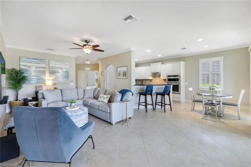 Welcome to your dream condo in The Quarry! This stunning property boasts 2 bedrooms plus a den, 2 bathrooms, and a spacious 2 car garage. The interior features luxurious granite counters, stainless steel appliances, crown molding, and plantation shutters for the ultimate in modern living. Enjoy breathtaking sunset views from the comfort of your own home with impact windows that let in the natural light while keeping you safe and secure. The freshly painted interior adds a touch of elegance and sophistication to this already impressive space. Whether you’re relaxing in the living room or entertaining guests in the gourmet kitchen, this condo is sure to impress. The Quarry has over 500 acres of navigable lakes where residents enjoy boating, skiing, fishing, and kayaking. The Newly Renovated Beach Club has quickly become the place to be. Residents enjoy a lap pool, resort pool, fitness and wellness center, tennis, pickleball and bocce. Dining at its finest is available at the Indoor/Outdoor restaurant and Tiki Bar. There are limited memberships available and are optional at the private Quarry Golf Club. Designed by world-renowned architectural team of Dr. Michael Hurdzan and Dana Fry in 2007, this Par 72 championship golf course offers an exceptional golf experience with spectacular views. Water appears on every hole and the course is a true test for golfers of all levels. With 5 sets of tees and a unique layout to every hole, you’ll never get tired of challenging this exceptional course. Live the Florida lifestyle you’ve always dreamed of in this beautiful condo with all the amenities you could ever want. Schedule a showing today and make this condo your new home sweet home.