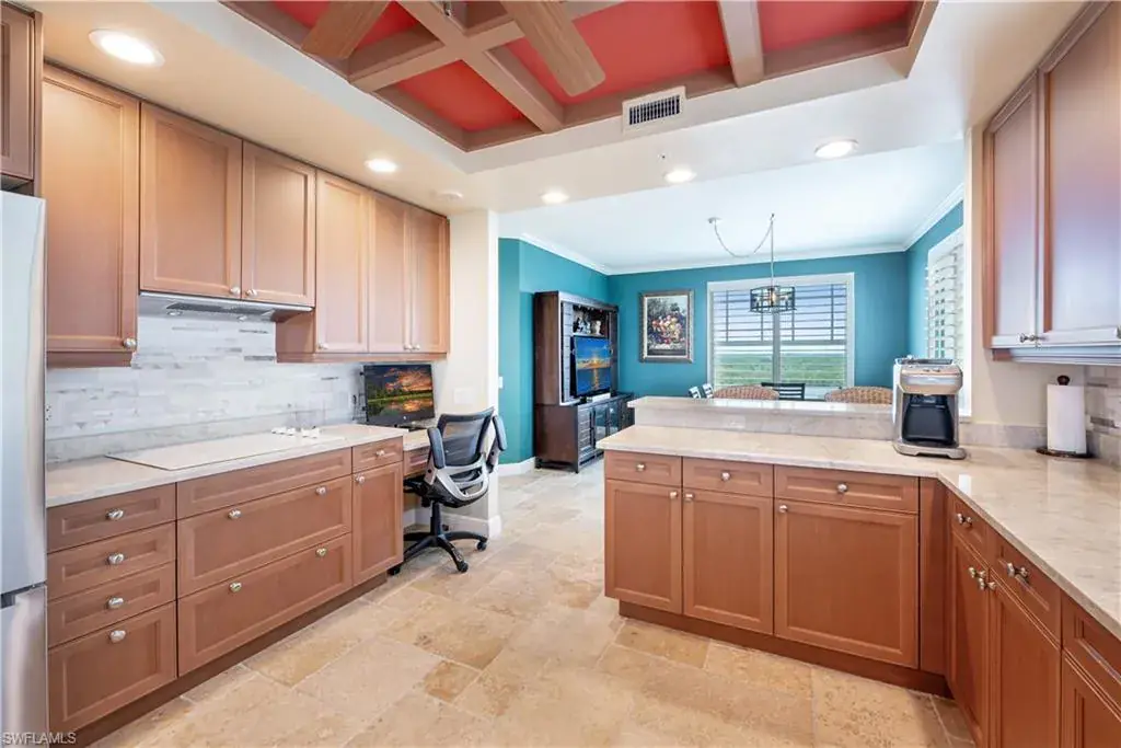 Resort style living with stunning sunset Gulf views from this newly renovated luxury 11th floor 3 bedrooms + den, 3 ½ bath condo offered turnkey furnished! Step off your private elevator into your foyer, which opens into a spacious great room/dining room with expansive Gulf and preserve views. Renovations include new kitchen quartz countertops, custom cabinets, new stainless appliances, custom stone, polished in Turkey, flooring throughout, and bamboo flooring in bedrooms, New LED lights and switches. Crown molding is throughout the condo. New HVAC with warranty. Deeded 2nd level undercover parking space The grand entrance lobby is professionally decorated in a contemporary style. Membership to the Calypso Club is included with a resort size pool, spa, fitness center, social room, wet bar & kitchen, cabana room & fireplace, & BBQ area, plus two private guest suites. Membership to the Tarpon Cove Yacht & Racquet Club is available with 6 tennis courts, bocce ball, restaurant, tiki bar & boat shuttle to Barefoot Beach Park. Boat slips can be purchased or rented. This beautiful condo is well worth seeing.