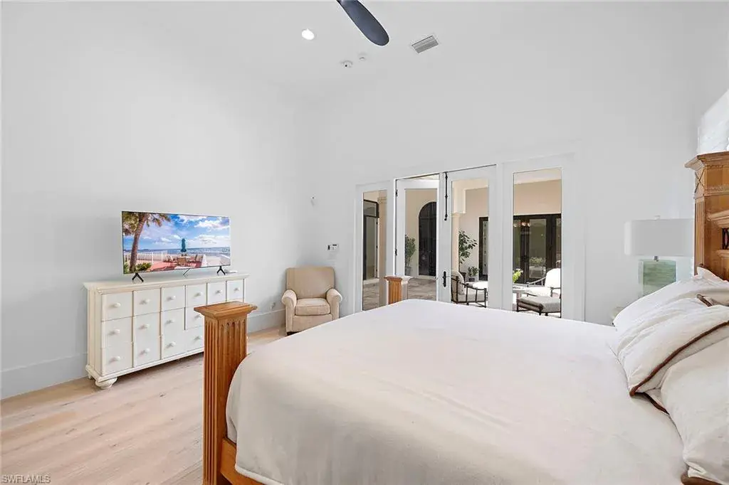 In the prestigious Tiburon community, this five-bedroom, 4.5-bath estate has been completely renovated for open-concept living, blending modern elegance with timeless sophistication. Thoughtfully curated finishes and designer details elevate every space, creating an inviting yet luxurious atmosphere. New White Oak hardwood floors flow seamlessly throughout, enhancing the open and airy feel. The custom-designed kitchen is a chef’s dream, featuring Décor cabinetry, luxury appliances and quartzite countertops, ideal for everyday living and entertaining. New Marvin impact windows and sliders not only enhance the home’s beauty but also provide superior insulation, allowing for a peaceful and quiet indoor retreat. Enter into spa-like serenity in the fully renovated primary bath, where a frameless glass walk-in shower with floor-to-ceiling natural stone, a sculptural free-standing tub, and a custom double vanity with high-end cabinetry create a tranquil retreat. Every detail is designed for beauty, function and relaxation. The outdoor living space is equally impressive, featuring a private heated pool and spa, a newly finished pool surround, and a fully equipped outdoor kitchen with a new grill, ideal for entertaining. A generous backyard retreat offers serene fountain views, providing a peaceful setting for morning coffee or evening gatherings. A private guest cabana ensures a comfortable, stylish space for family and friends. In one of Naples sought-after enclaves, this home offers access to world-class golf, resort-style amenities and the unparalleled service of The Ritz-Carlton. This is a rare opportunity to own a fully reimagined luxury home in the heart of Tiburon.