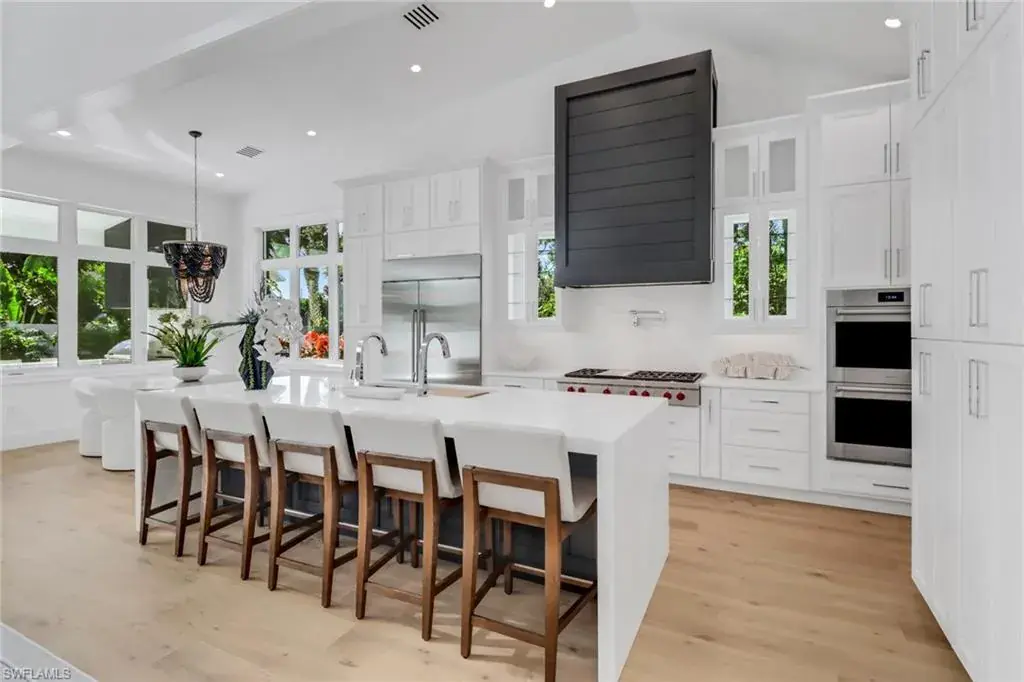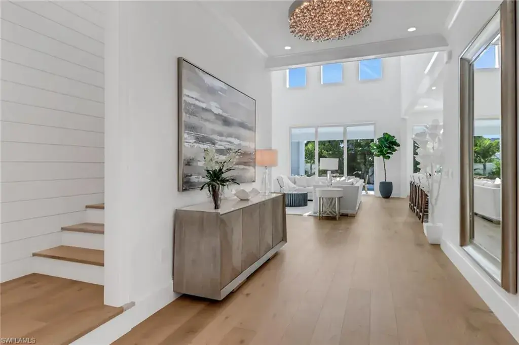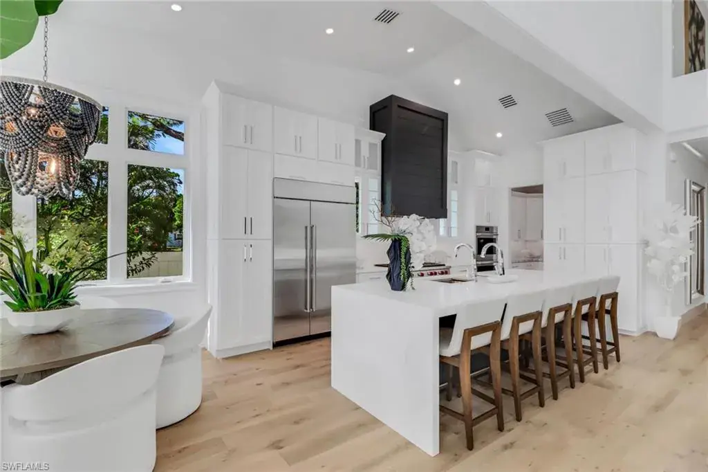 SELLER FINANCING AVAILABLE! BRAND NEW single family home with large 3 car garage, pool, spa, sundeck, Southern exposure, Artisan outdoor kitchen, and over 4,000 sq ft within 1.5 miles to Park Shore beach! This 5 bedroom plus flex/den/loft upstairs, 4.5 bath home has all of the high end finishes you would expect. 48″ Sub-zero refrigerator, 48″ Wolf Gas cooktop, 46″ sink with 2 faucets, double oven, marble tops throughout, custom commercial grade hood, European white oak engineered hardwood, buried gas tank, porcelenosa tile, Stormsmart Screens, motorized shades in living and primary suite, and gorgeous custom designed marble fireplace walls. You will have a hard time deciding where to entertain between your two story volume living area, your outdoor living area with 86″ TV wall with gas fireplace, or your upstairs living room with full wet bar. This home has been professionally staged with Caracole furniture and a package can be purchased separate from the home. Every closet in the home has been finished out so you can just bring your toothbrush and move in! The oversized primary closet has been built out and can be modified as needed for the buyer! Don’t miss out on this home close to EVERYTHING Paradise has to offer!