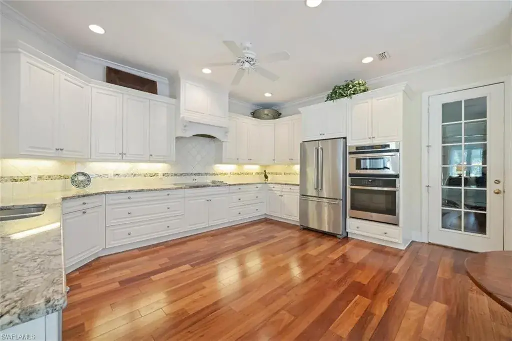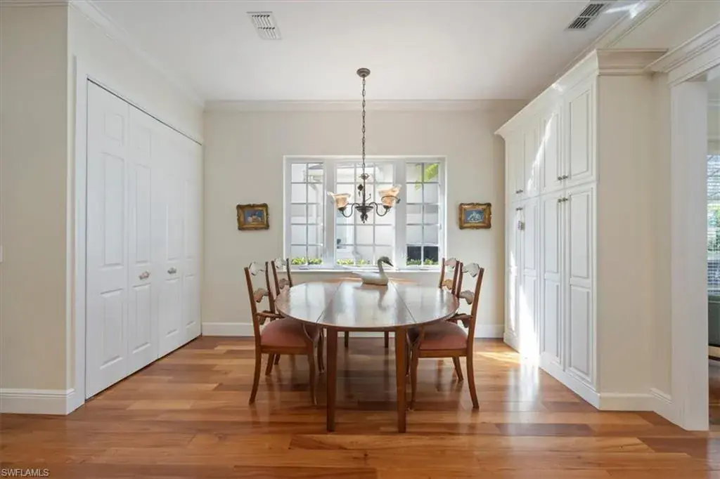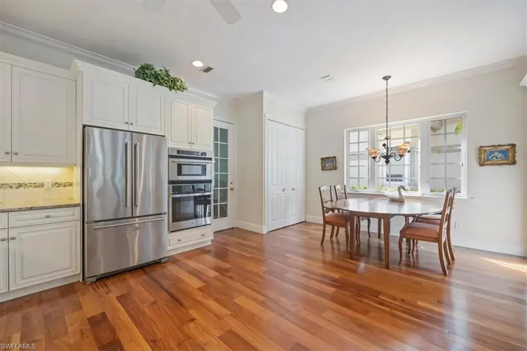 Experience over 2,400 square feet of refined living in this 3-bedroom, 3-bath residence with a 2-car garage, perfectly positioned to capture serene views of the lake and water feature. The main home showcases an open layout with a beautifully renovated kitchen flowing into the spacious living and dining areas. The primary suite provides a true retreat with walk-in closets, dual vanities, a soaking tub, and a walk-in shower, while a guest bedroom and full bath complete the main living space. A detached 1-bedroom, 1-bath cabana offers exceptional flexibility—ideal for guests, a home office, or a private studio. Outdoor living is equally impressive with a screened lanai featuring a pool and spa, multiple seating areas, and tranquil lake views. Upgrades include wood flooring, plantation shutters, impact windows and doors, and hurricane shutters for added peace of mind. Nestled within the highly sought-after Pelican Bay community, residents enjoy exclusive amenities such as two private beachfront pavilions, tennis and pickleball courts, a state-of-the-art fitness center, and a lively community center, all just moments from Naples’ premier dining, shopping, and cultural attractions.