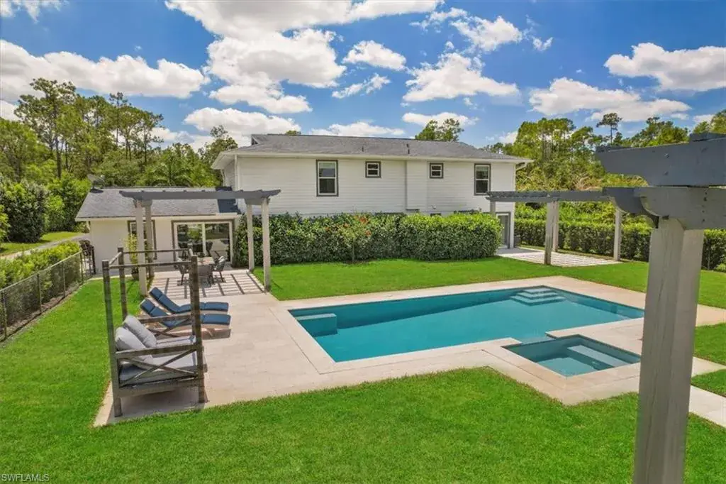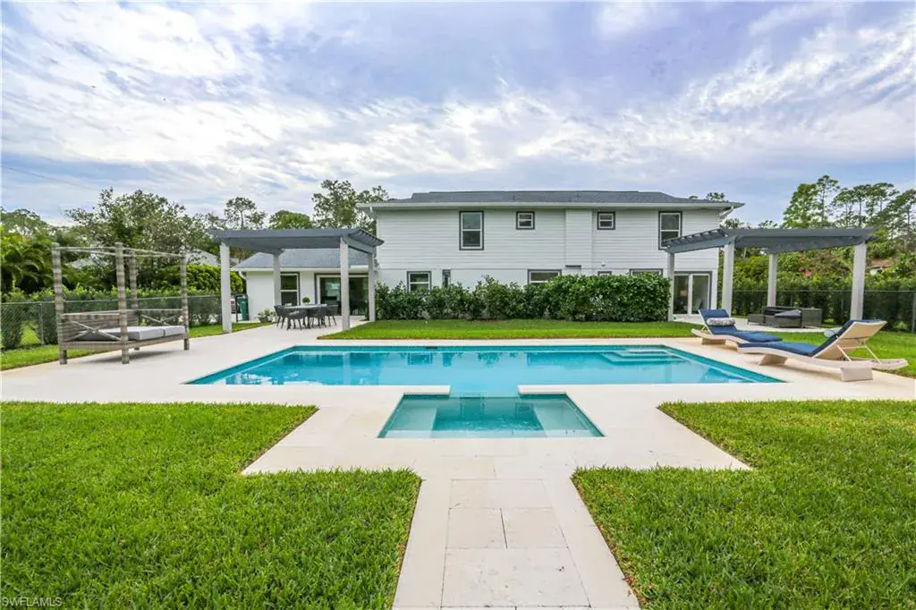 Welcome to Oakes Estates! This meticulously updated estate home offers an impressive array of luxurious upgrades. With five spacious bedrooms, including a master suite conveniently located on the first floor, the interior exudes modern elegance. Each bathroom has been thoughtfully renovated to provide a unique yet cohesive ambiance throughout the home. Additionally, the chef’s kitchen is perfect for hosting gatherings and entertaining. Stepping outside you’ll find a backyard oasis on a 2.44-acre lot, complete with two pergolas, a large pool with a spa, an exterior kitchen, and a walkway leading to a back fireplace area, perfect for entertaining. Imagine starting each day surrounded by the soothing sounds of nature, enjoying a cup of coffee on your private lanai, and taking in the tranquil views of the expansive grounds. Additional Upgrades include: Newer Windows, Reverse Osmosis, Well, Pool & Roof! Located close to SWFL’s beautiful beaches, shopping, dining and more!