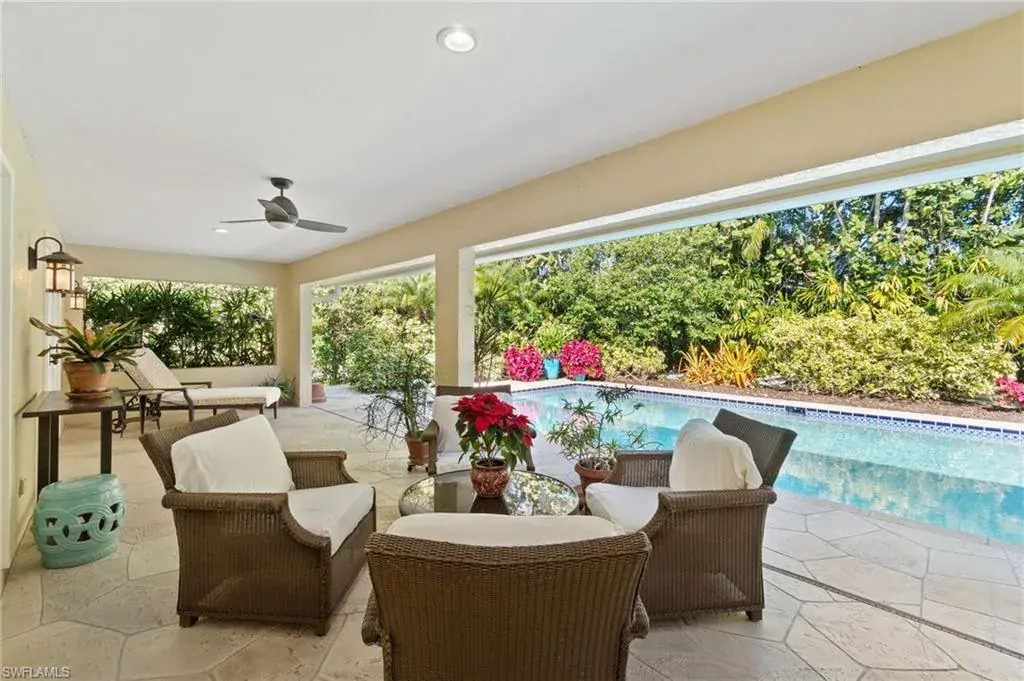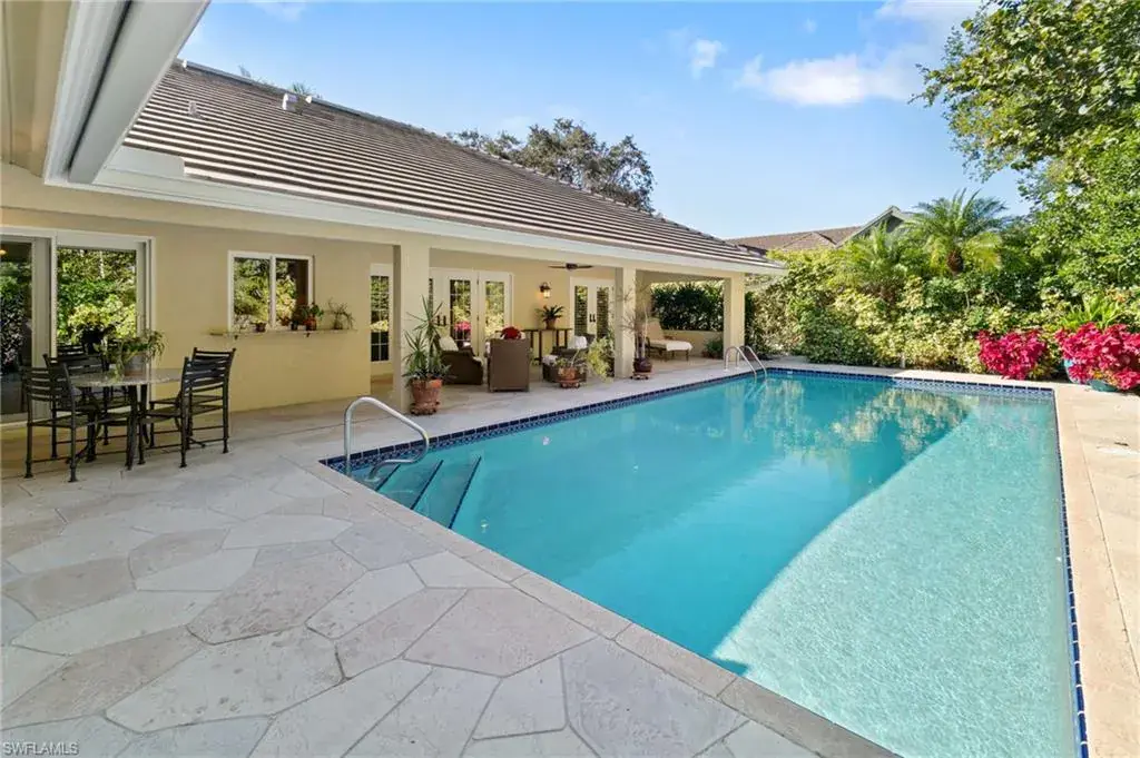 Nestled in the serene Oakmont neighborhood of the prestigious Pelican Bay community, this beautiful 4-bedroom, 3-bath single-family pool home offers the perfect blend of luxury, privacy, and coastal living. Set on a quiet cul-de-sac and situated in an X Flood Zone at an elevation of over 17 feet, this meticulously maintained residence boasts a range of high-end features, including a brand-new roof (transferable warranty) hurricane-rated windows and doors, and a private, impeccably landscaped yard with mature trees and hedges.