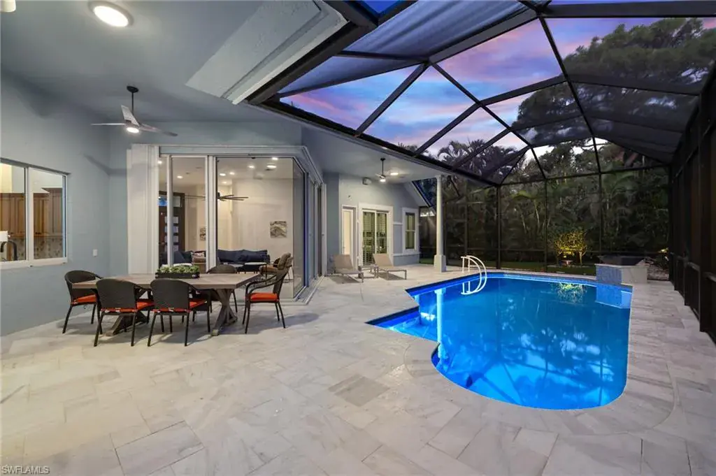 Move in ready and meticulously maintained single-family home in the heart of Pelican Bay. Nestled in a quiet cul-de-sac in an X flood zone, this property offers a serene and lush landscape that creates a one-of-a-kind tranquil retreat. Enjoy the convenience of single-story living in this spacious home, featuring three bedrooms plus den and three and a half baths. The floor plan flows seamlessly around the tranquil backyard pool area, perfect for endless entertaining and relaxation. Designed with entertaining in mind, this home boasts many upgrades, including hurricane-rated glass windows, newer appliances, updated landscaping and landscape lighting, as well as a newly refinished saltwater pool and pool paver area that adds a touch of luxury to your outdoor living space. Located in Pelican Bay, you’ll experience the unparalleled Naples lifestyle with amenities such as beach clubs, golf, tennis courts, a fitness center, and tram service to the beach. Enjoy proximity to Waterside shops, the Ritz Carlton, Mercato Center, and 5th Avenue South. Don’t miss this opportunity to make this exquisite house your home and embrace the Naples lifestyle today!